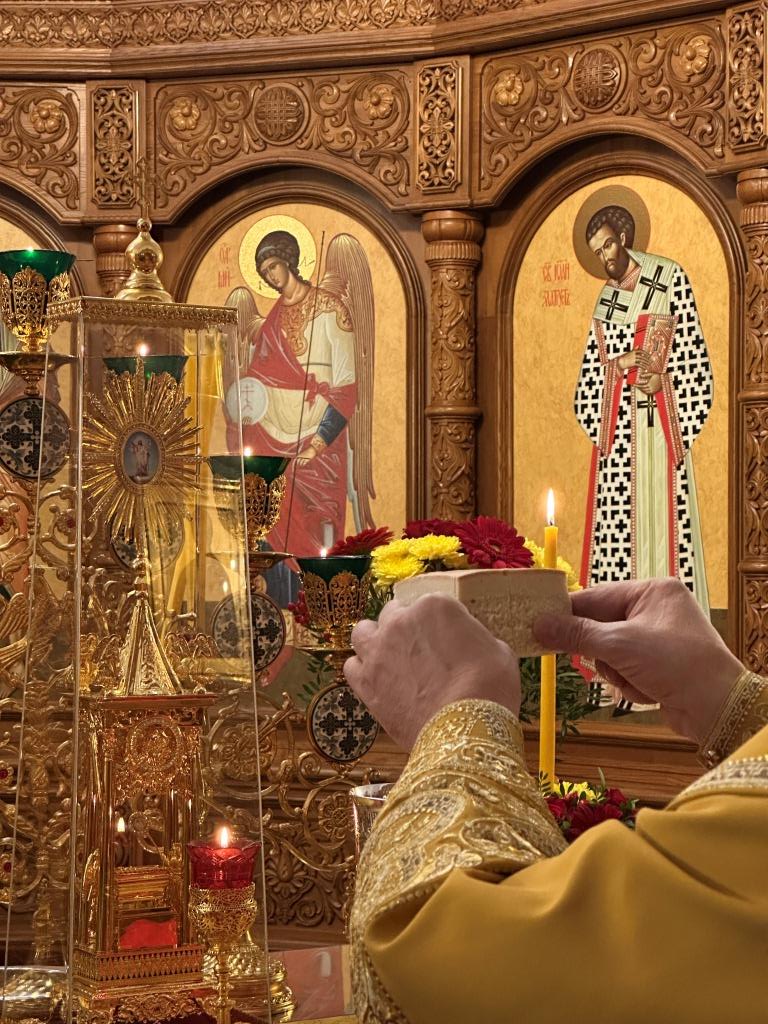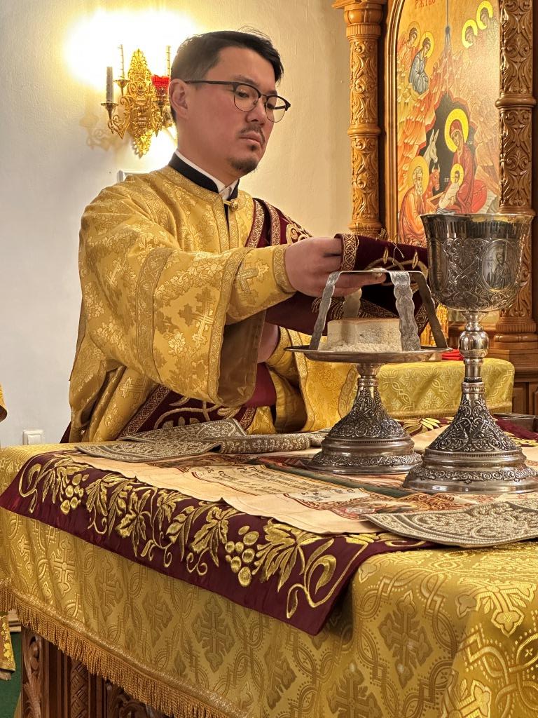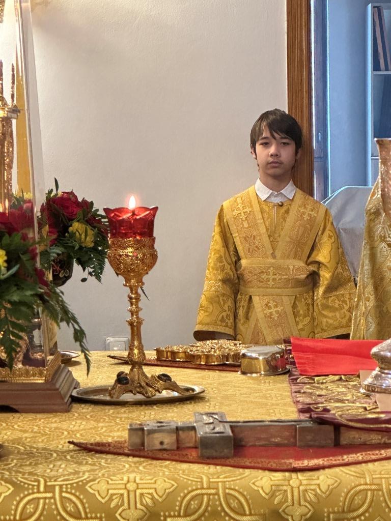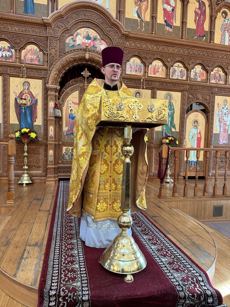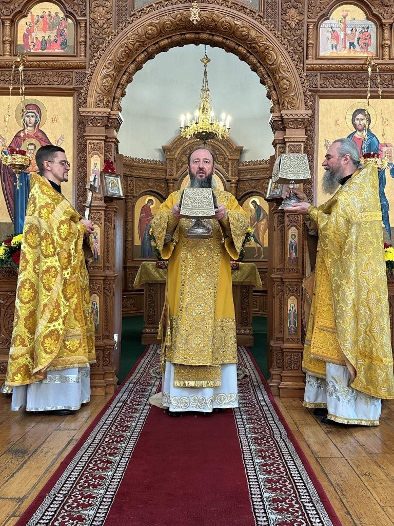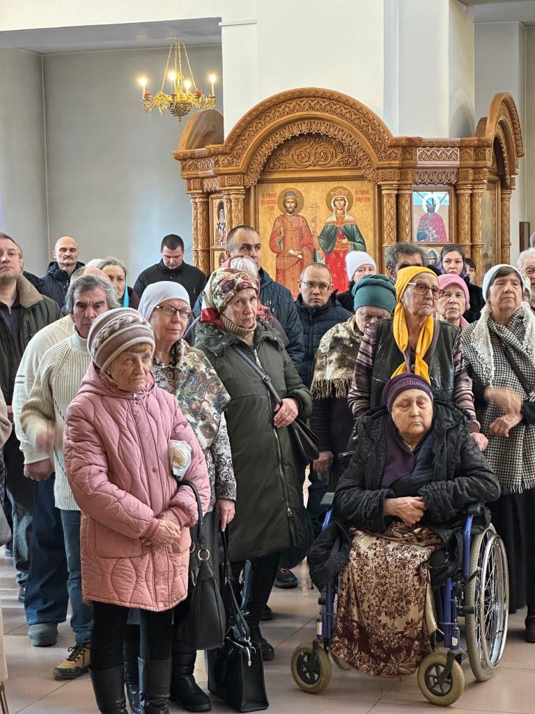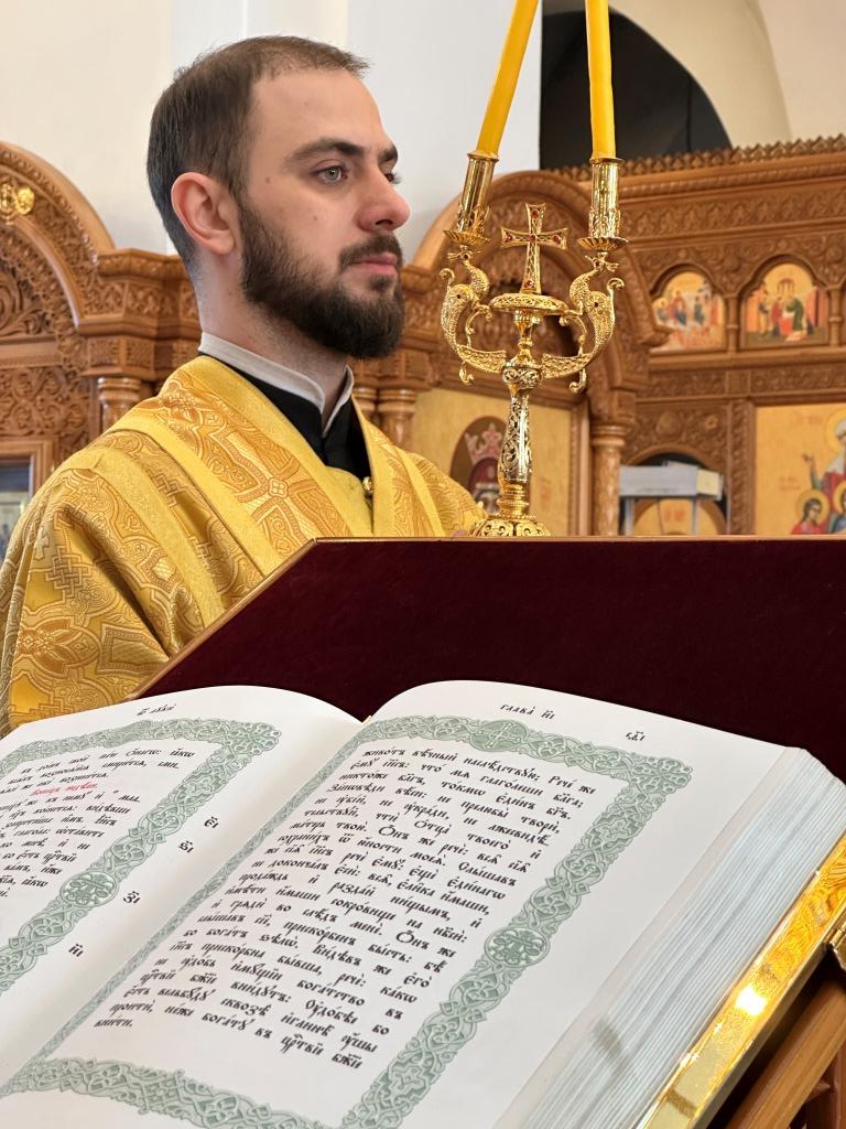 Песнопения Божественной Литургии исполнял хор Андреевского собор под управлением регента Н. Романцовой. Перед причастием мирян проповедовал священник Константин Дьяков.