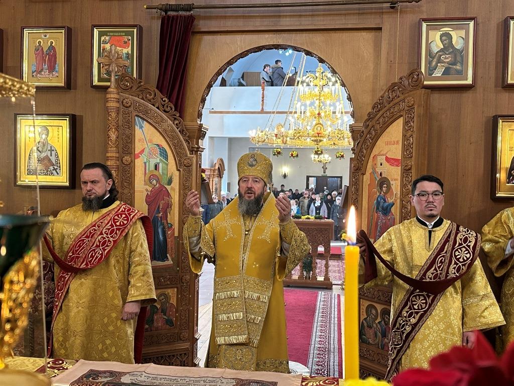 15 декабря 2024 года, воскресение. Неделя 25-я по Пятидесятнице, память пророка Авакума. Управляющий Усть-Каменогорской и Семипалатинской епархией Высокопреосвященнейший архиепископ Амфилохий совершил Божественную Литургию святителя Иоанна Златоуста в Андреевском кафедральном соборе города Усть-Каменогорска.
