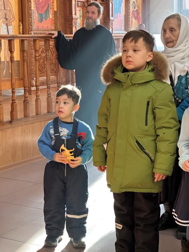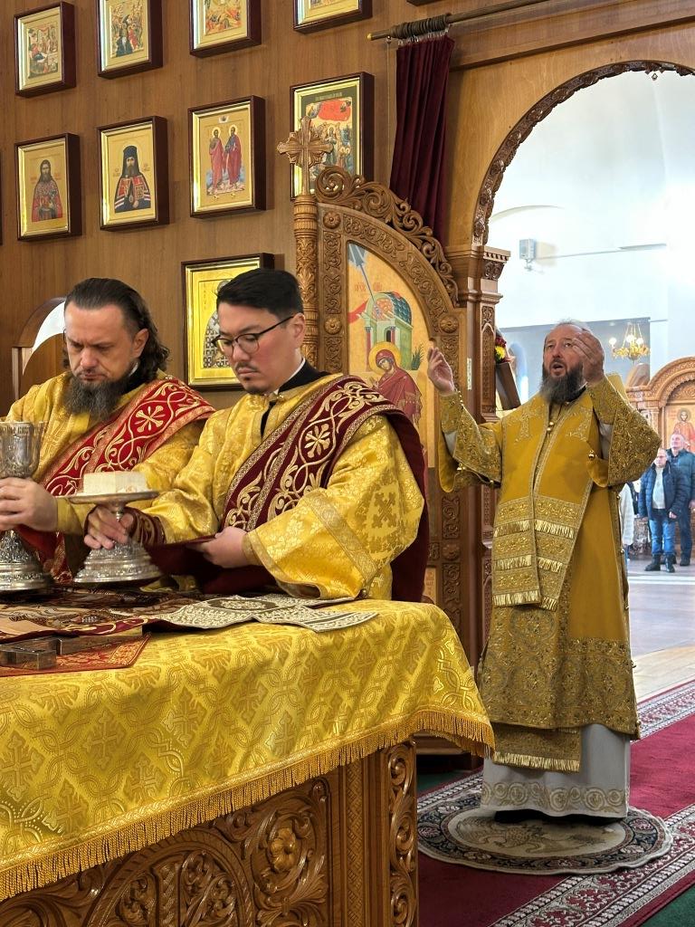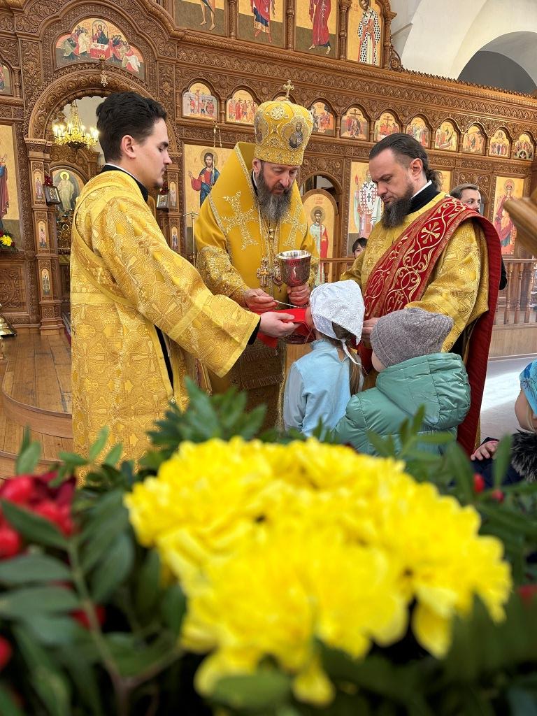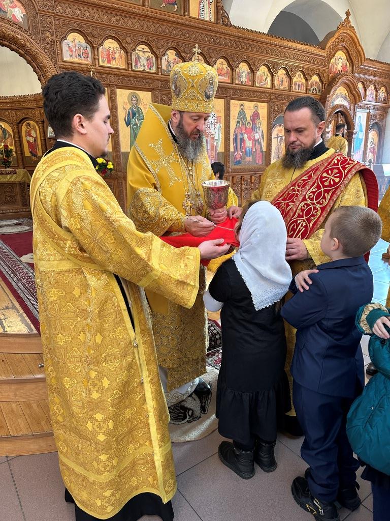 За воскресным богослужением молились и причащались Святых Христовых Таин прихожане кафедрального собора, насельники Свято- Троицкого мужского монастыря города Усть-Каменогорска, сотрудники епархиального управления и воспитанники Центральной воскресной школы.