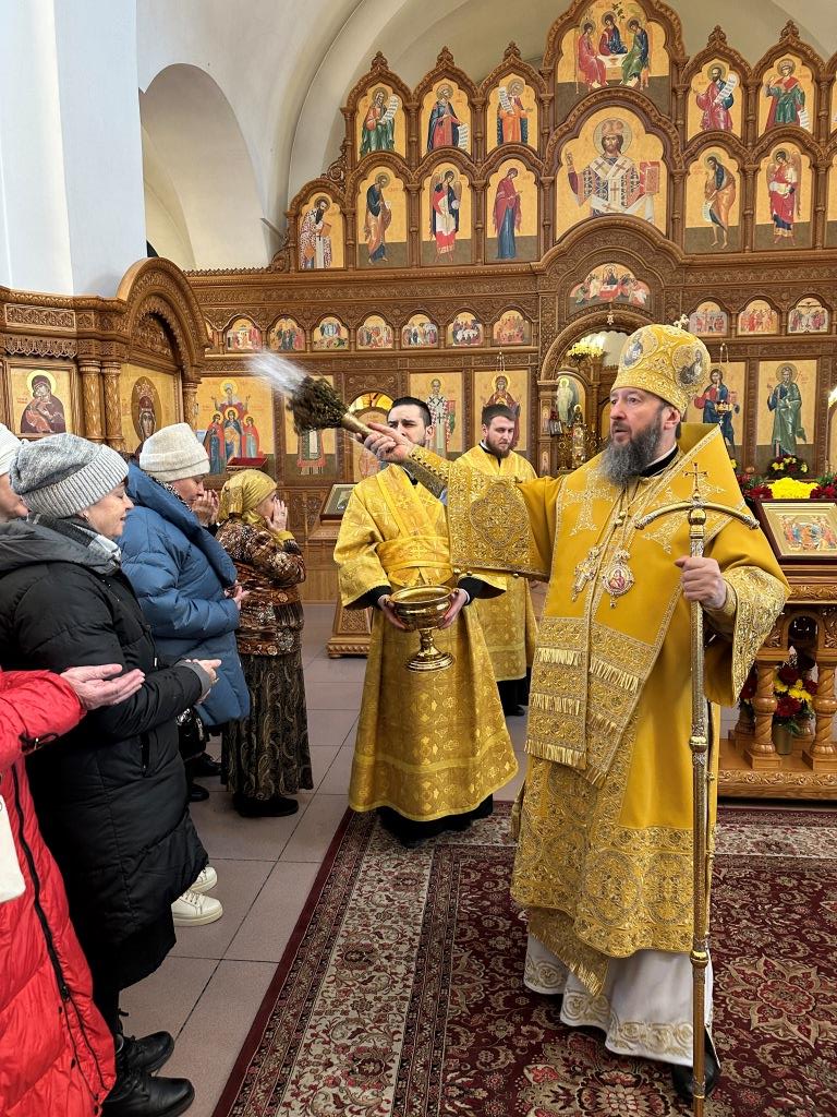 После проповеди Высокопреосвященнейший Архипастырь призвал Божие благословение на всех молящихся и окропил прихожан святой водой.