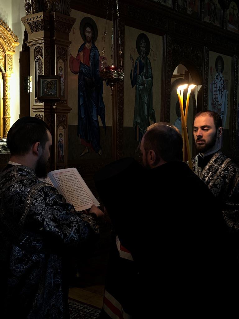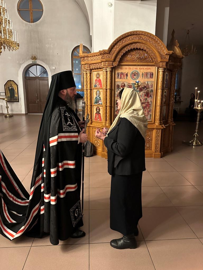 После пения великого прокимна и закрытия Царских врат духовенство переоблачилось в великопостные черные ризы. По отпусте вечерни архиепископ Амфилохий прочитал молитвы на начало Святой Четыредесятницы и затем обратился к прихожанам со словами проповеди.