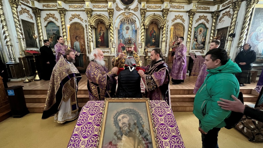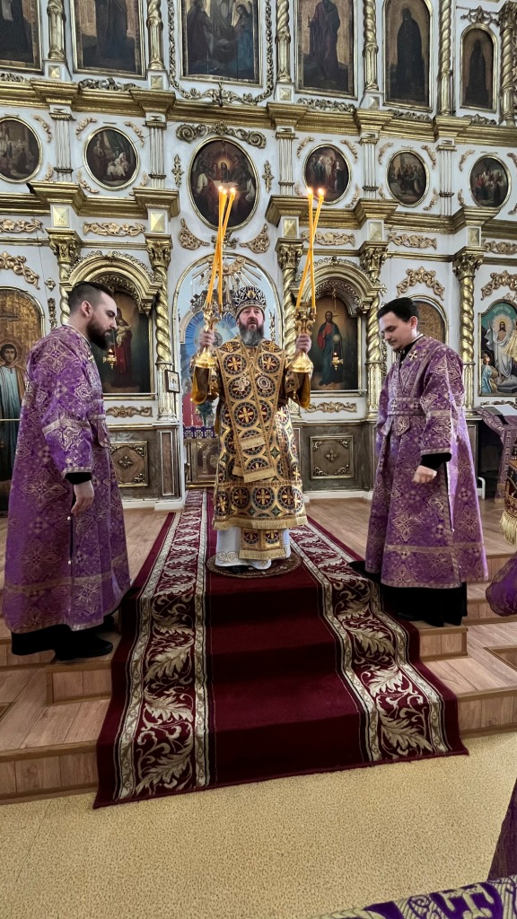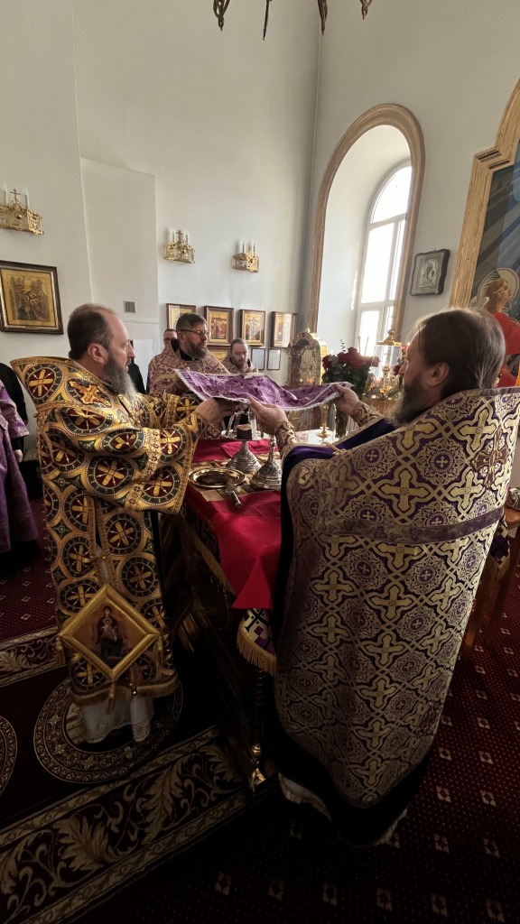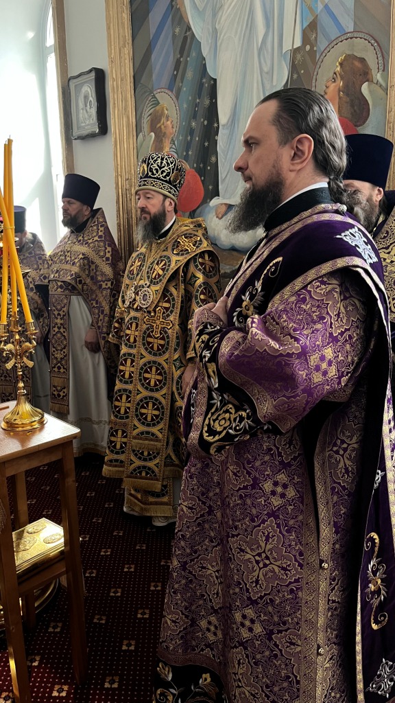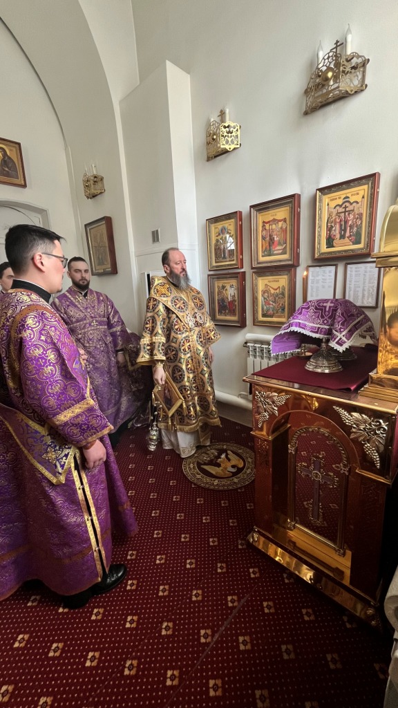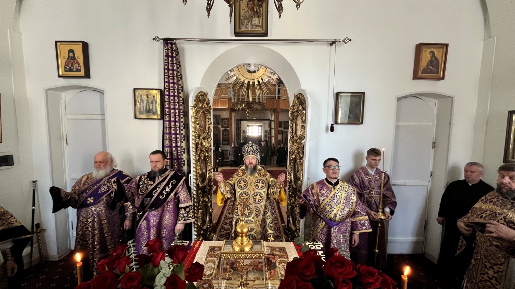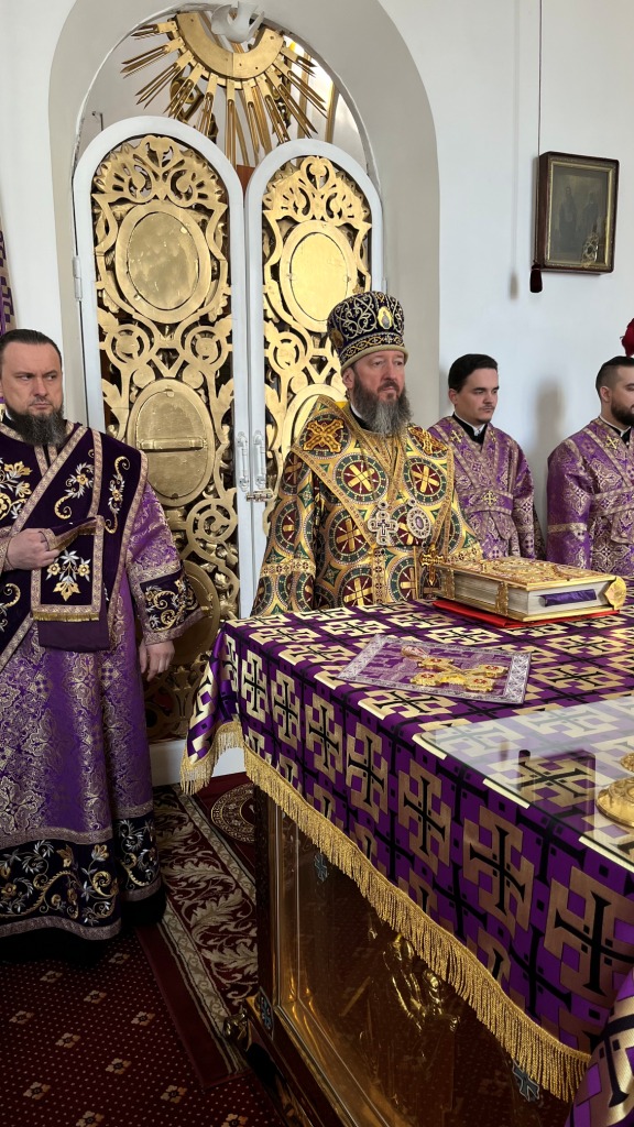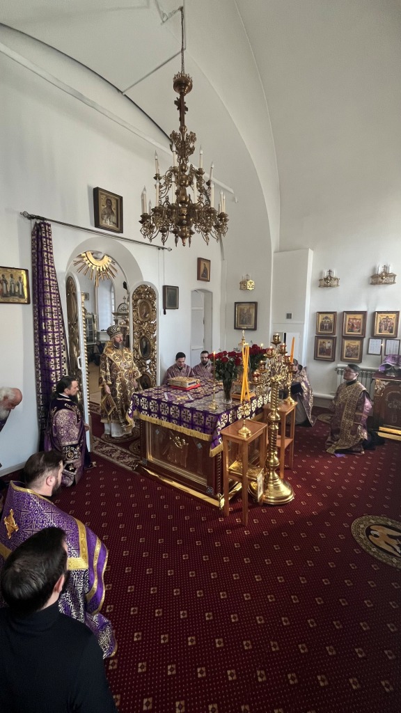 Архиепископ Амфилохий совершил Божественную Литургию Преждеосвященных Даров в Воскресенском кафедральном соборе 14 марта 2025 года, пятница второй седмицы Великого поста. Память преподобномученицы Евдокии Илиопольской.
