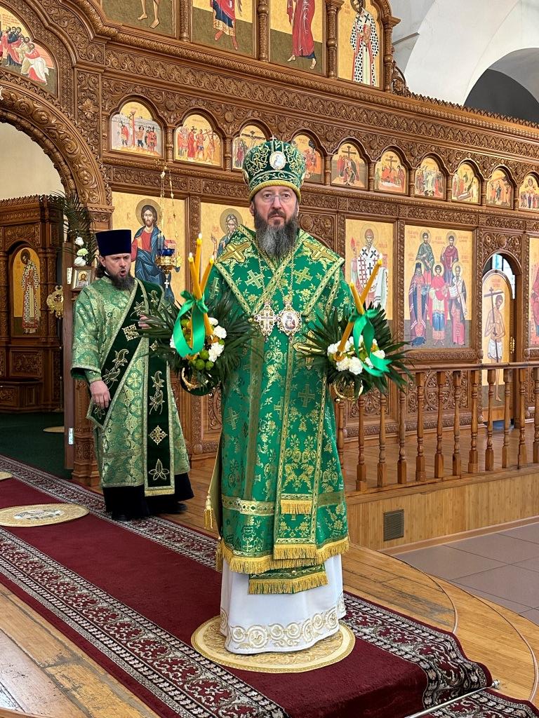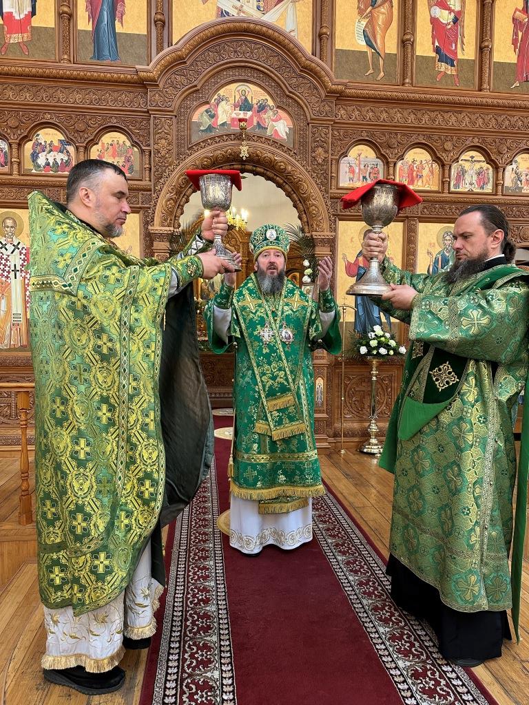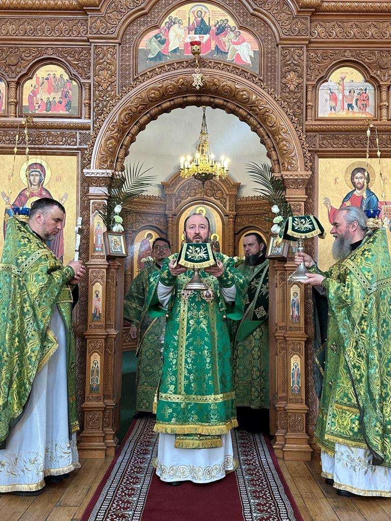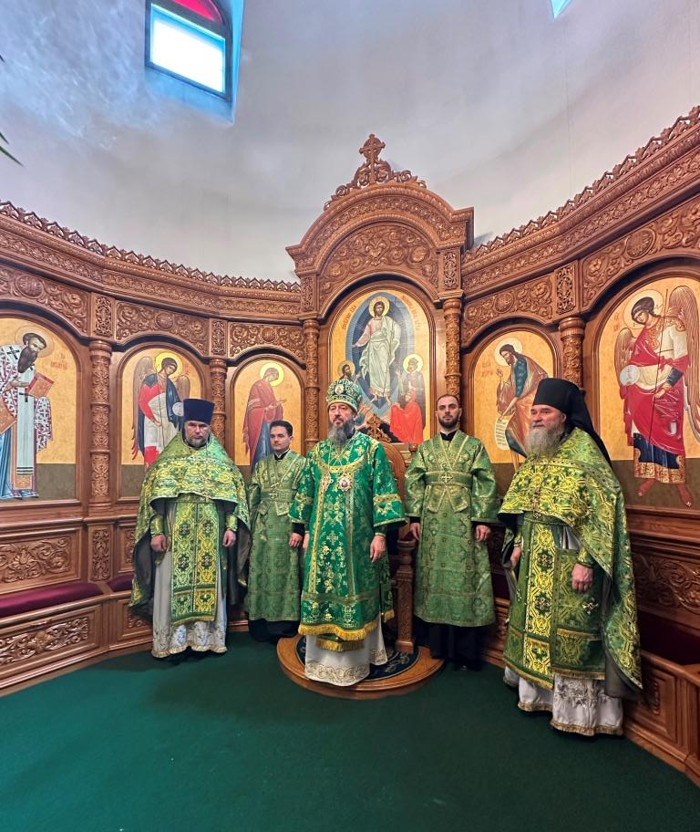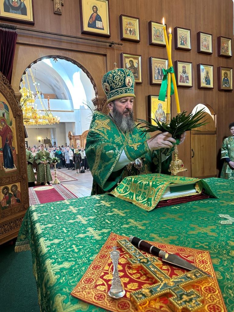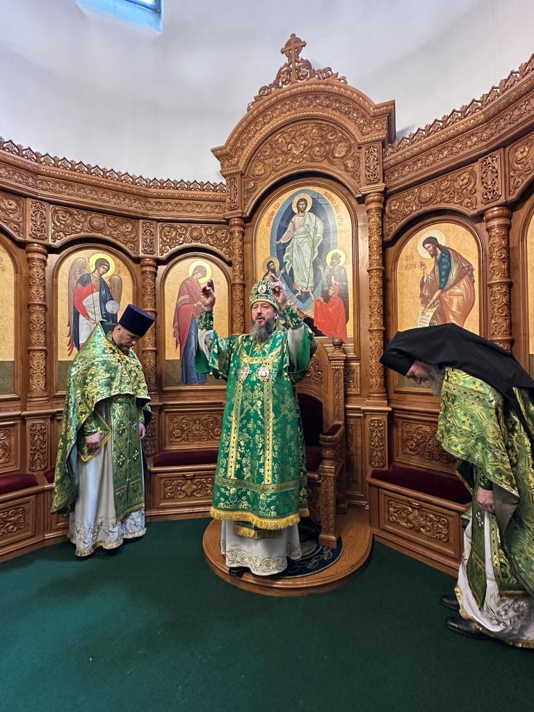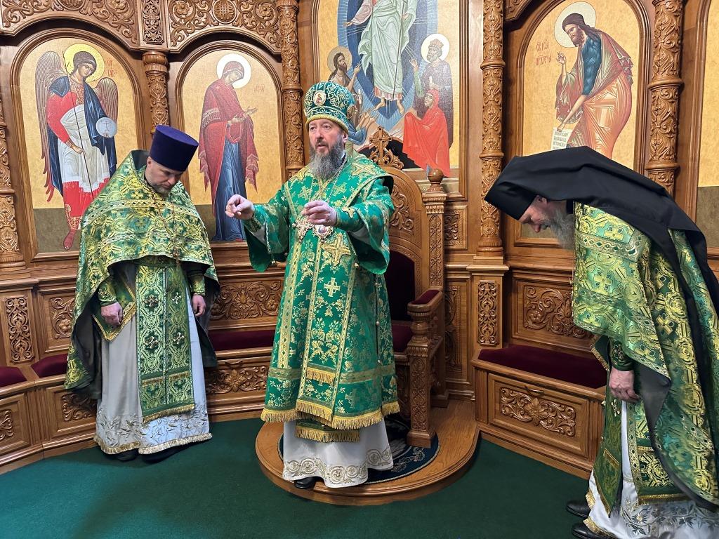 Архипастырю сослужили: ключарь кафедрального собора иеромонах Никодим (Авдеев), клирик собора иерей Виталий Адаменков, протодиакон Андрей Дудник, секретарь епархии диакон Илия Кван.