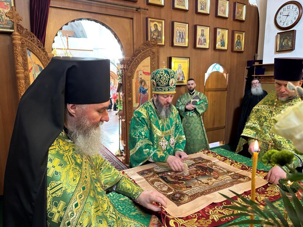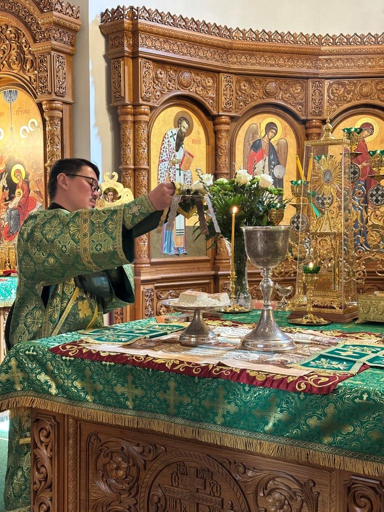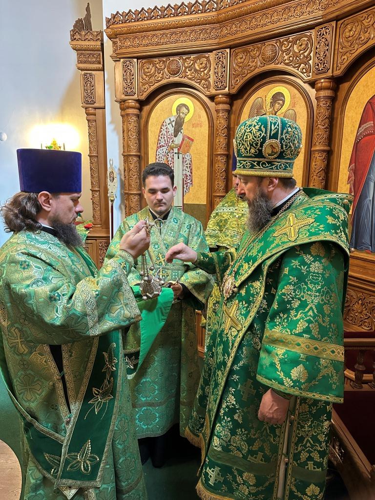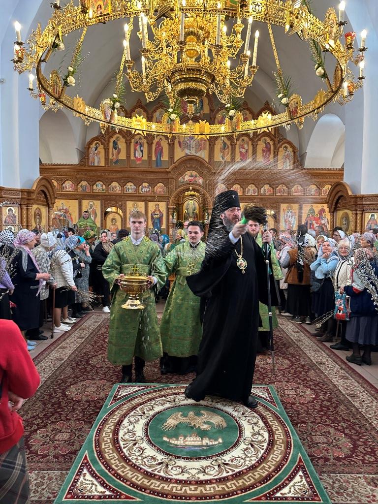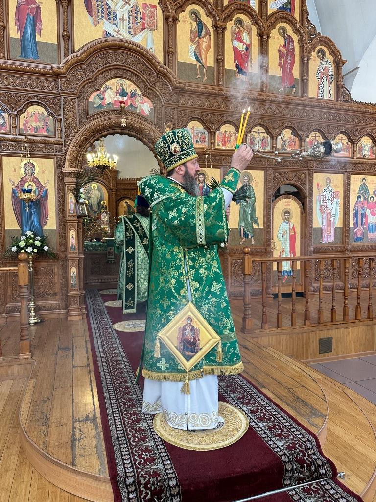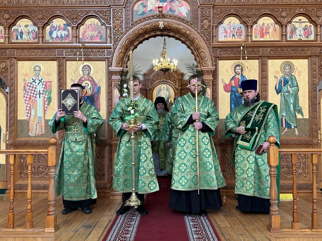 Архипастырю сослужили: ключарь кафедрального собора иеромонах Никодим (Авдеев), клирик собора иерей Виталий Адаменков, протодиакон Андрей Дудник, секретарь епархии диакон Илия Кван.
