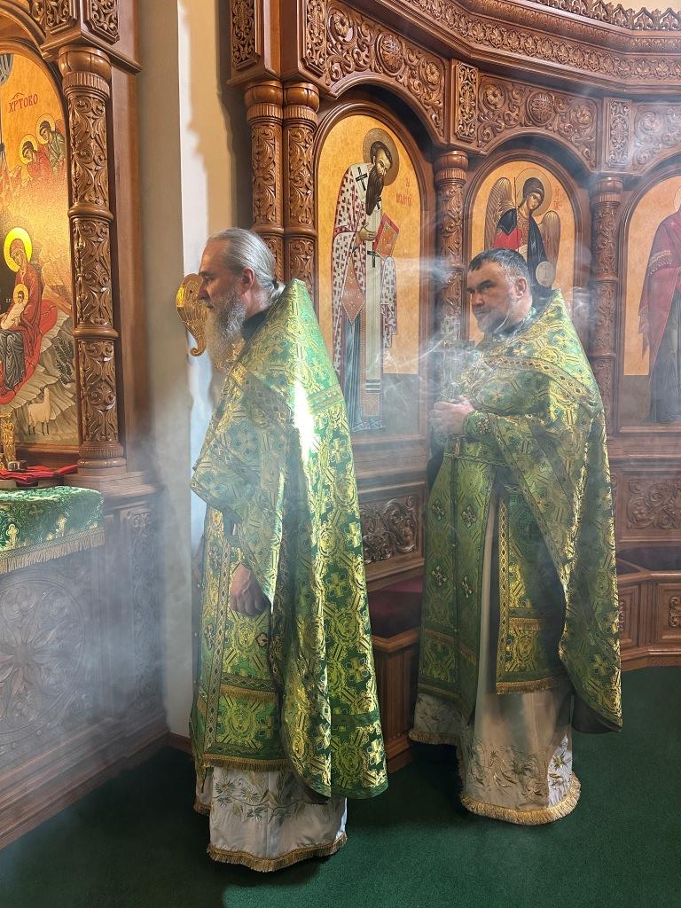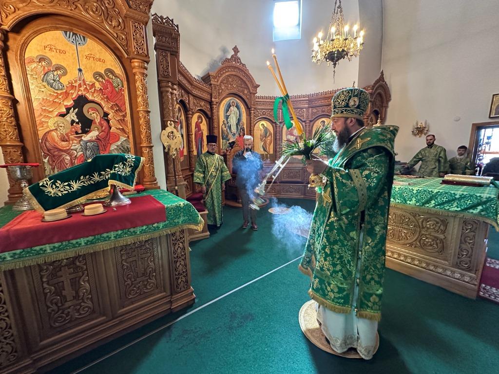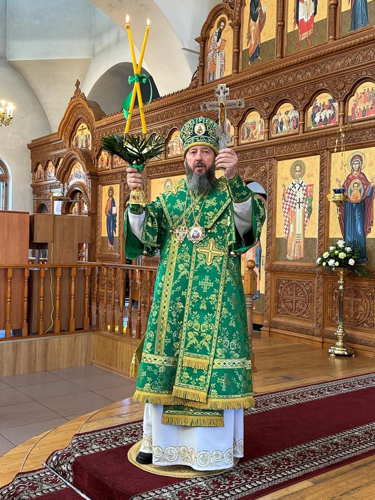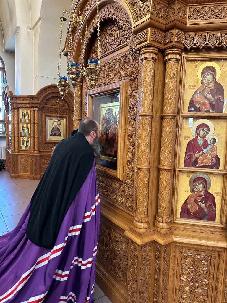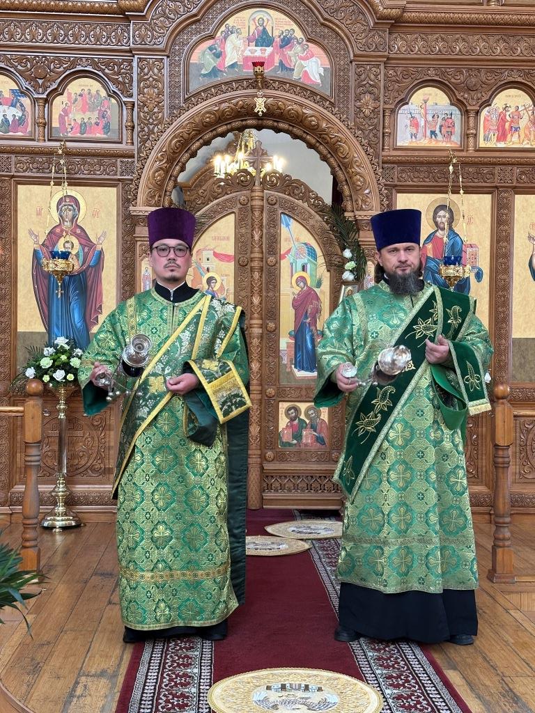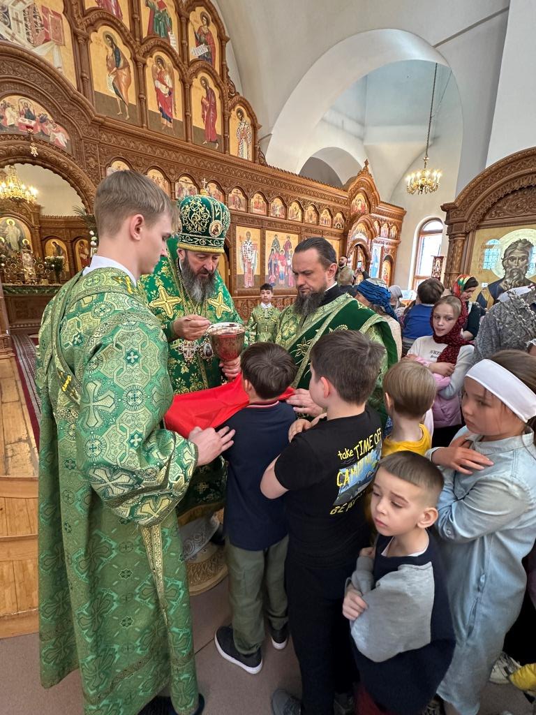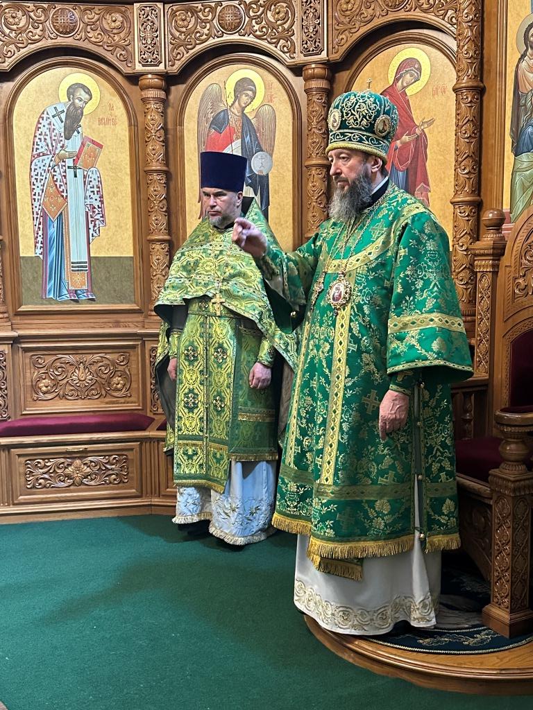 Архипастырю сослужили: ключарь кафедрального собора иеромонах Никодим (Авдеев), клирик собора иерей Виталий Адаменков, протодиакон Андрей Дудник, секретарь епархии диакон Илия Кван.