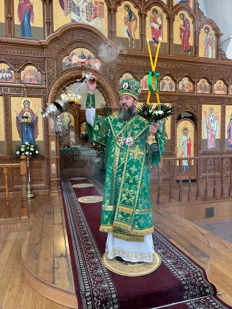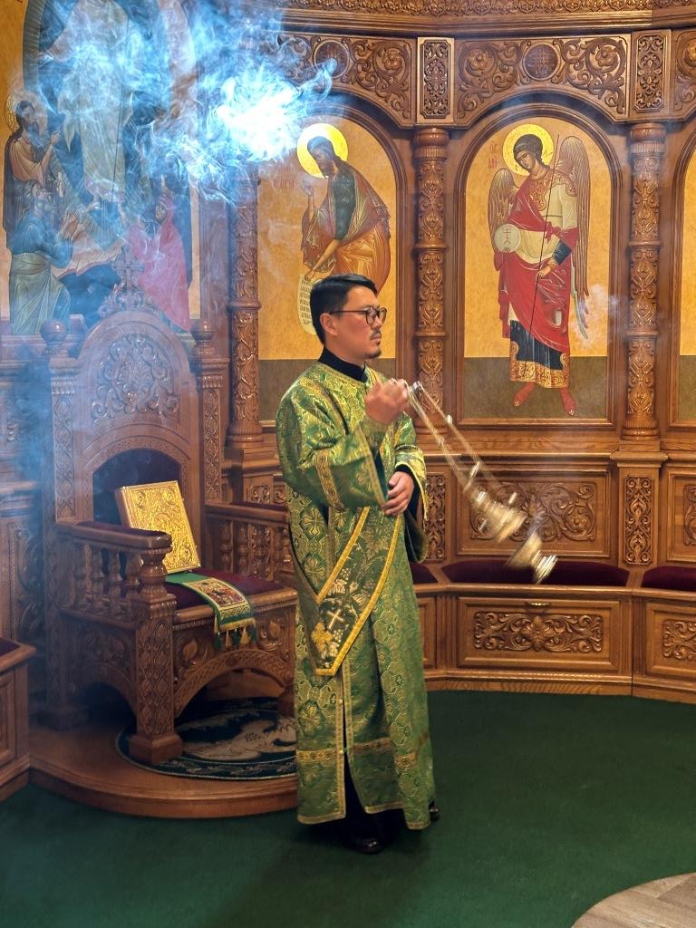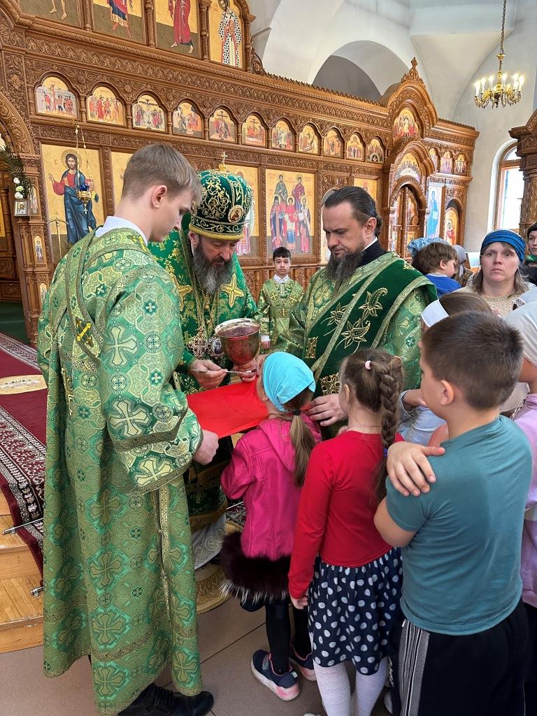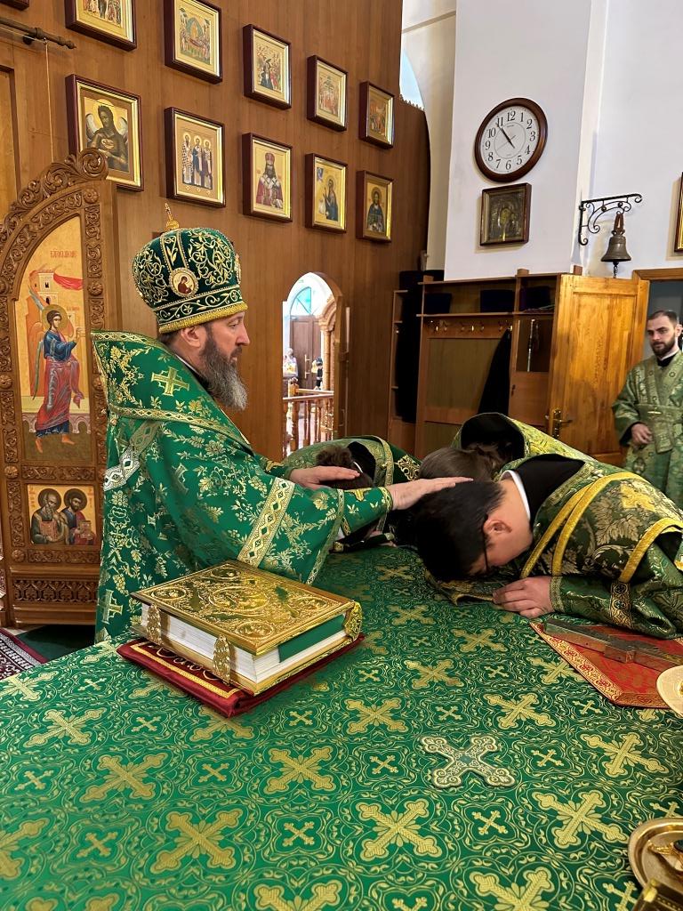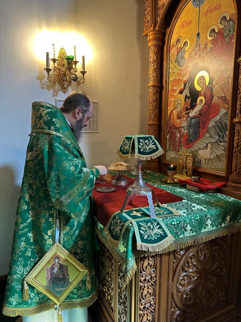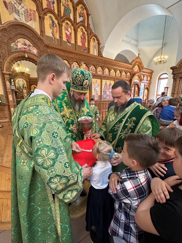 Архипастырю сослужили: ключарь кафедрального собора иеромонах Никодим (Авдеев), клирик собора иерей Виталий Адаменков, протодиакон Андрей Дудник, секретарь епархии диакон Илия Кван.
