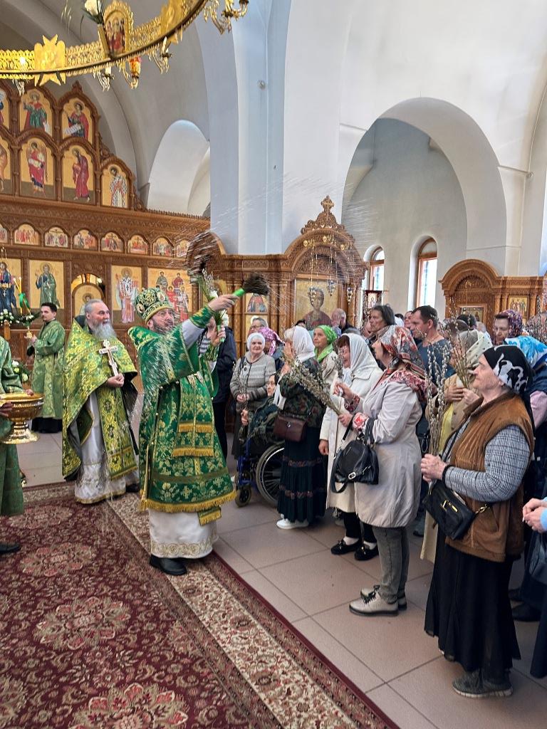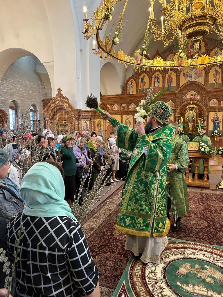 В праздничный день Вербного воскресения Управляющий Усть-Каменогорской и Семипалатинской епархией Высокопреосвященнейший архиепископ Амфилохий возглавил служение Божественной Литургии святителя Иоанна Златоуста в главном храме Рудного Алтая – кафедральном соборе во имя святого апостола Андрея Первозванного.