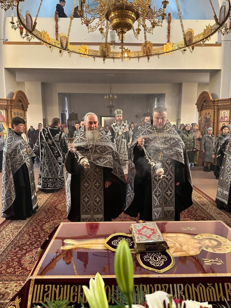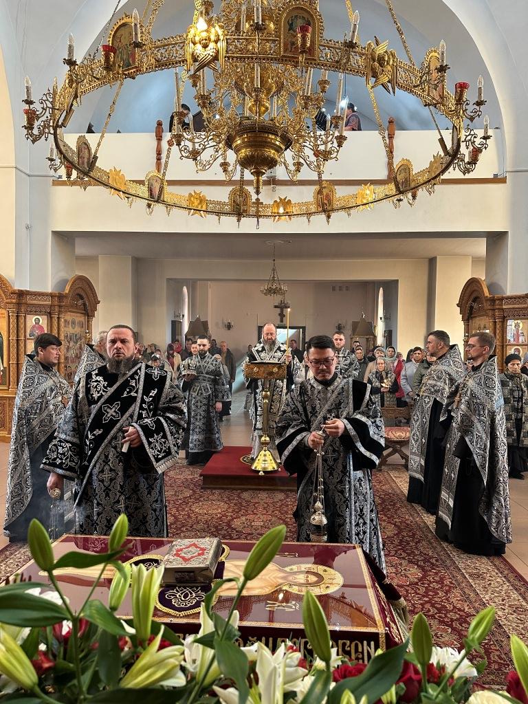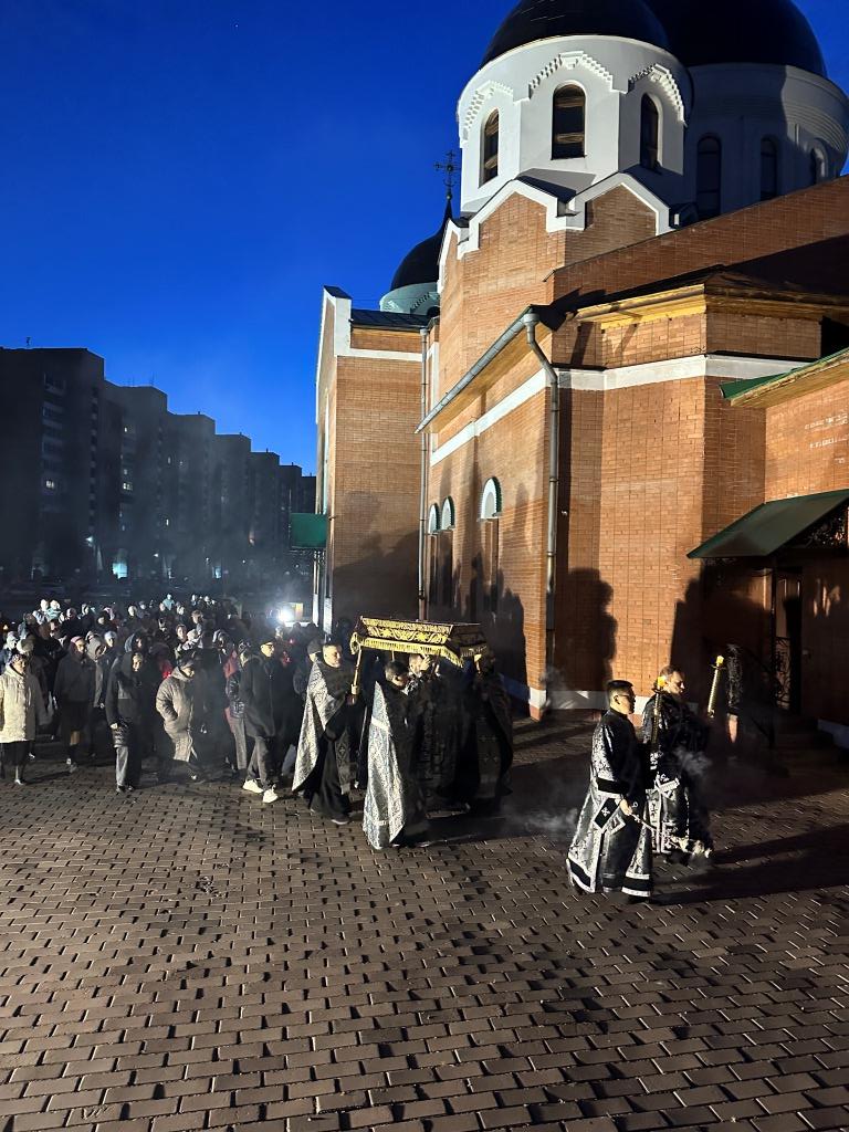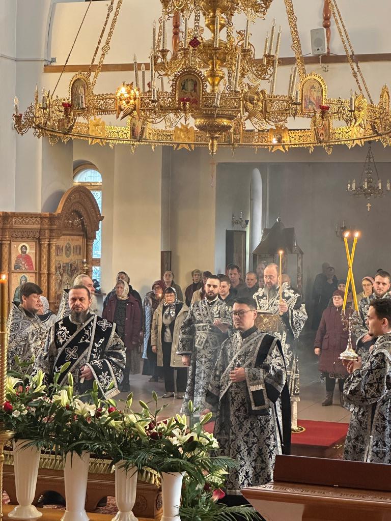 Высокопреосвященнейший архиепископ Усть-Каменогорский и Семипалатинский Амфилохий возглавил служение утрени чином погребения Плащаницы Господа нашего Иисуса Христа в Андреевском кафедральном соборе Усть-Каменогорска. Иерарху сослужили: ключарь кафедрального собора иеромонах Никодим (Авдеев); клирики кафедрального собора: иерей Виталий Адаменков, иерей Роман Подрезов, иерей Константин Дьяков; протодиакон Андрей Дудник, секретарь епархии диакон Илия Кван. Песнопения Великой Пятницы исполнял хор под управлением регента Н. Романцовой.