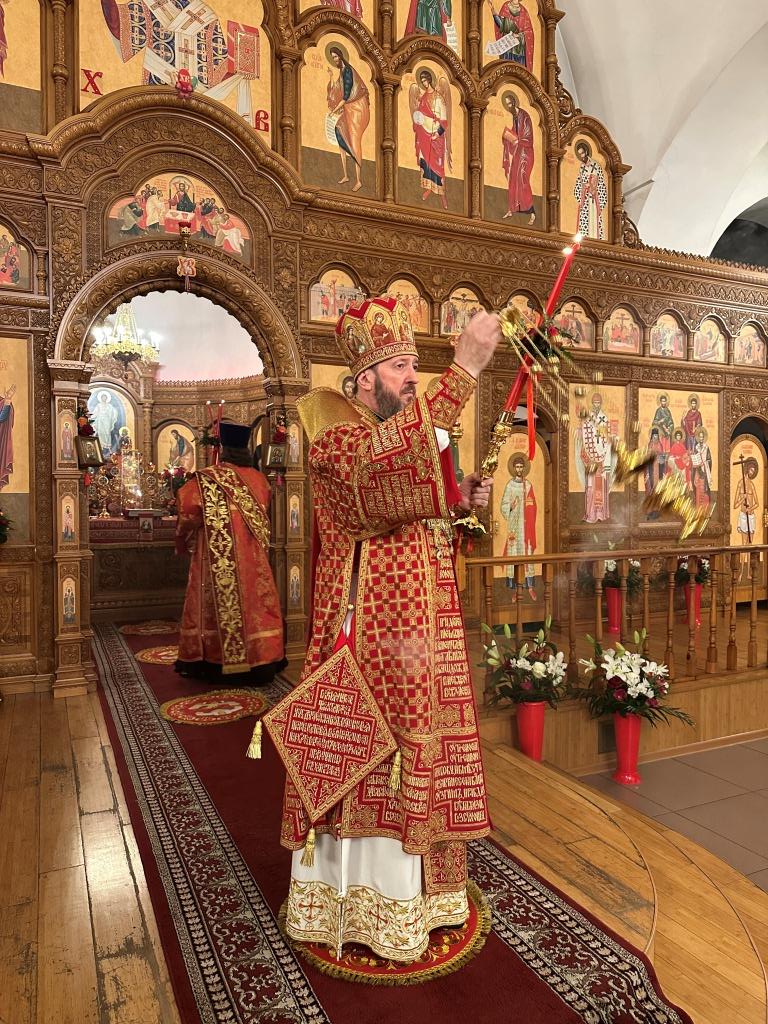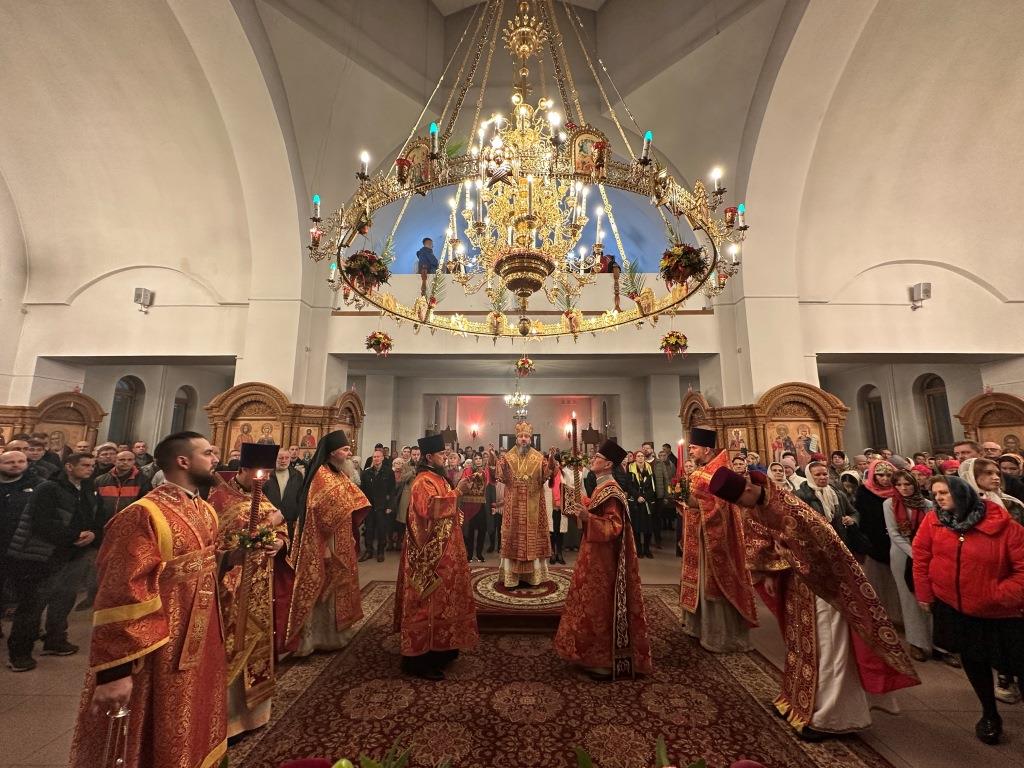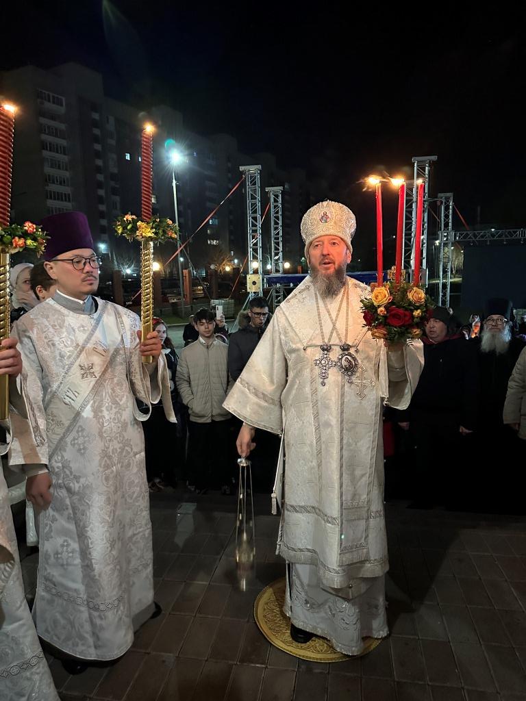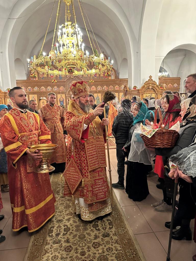 После пения канона и стихир Пасхи читалось «Слово огласительное святителя Иоанна Златоуста», в котором все христиане призываются в святую пасхальную ночь насладиться светлым торжеством и войти в радость тридневно Воскресшего Господа. Утреня завершилась пением пасхальных часов, после которых началась праздничная Божественная Литургия. За Божественной Литургией священник Константин Дьяков огласил собравшимся Пасхальное послание Святейшего Патриарха Московского и всея Руси Кирилла. После заамвонной молитвы архиепископ Амфилохий освятил артосы, и обратился к народу Божию со словами пасхального приветствия, в котором поздравил всех с великим торжеством Воскресения Господа Бога и Спаса нашего Иисуса Христа.