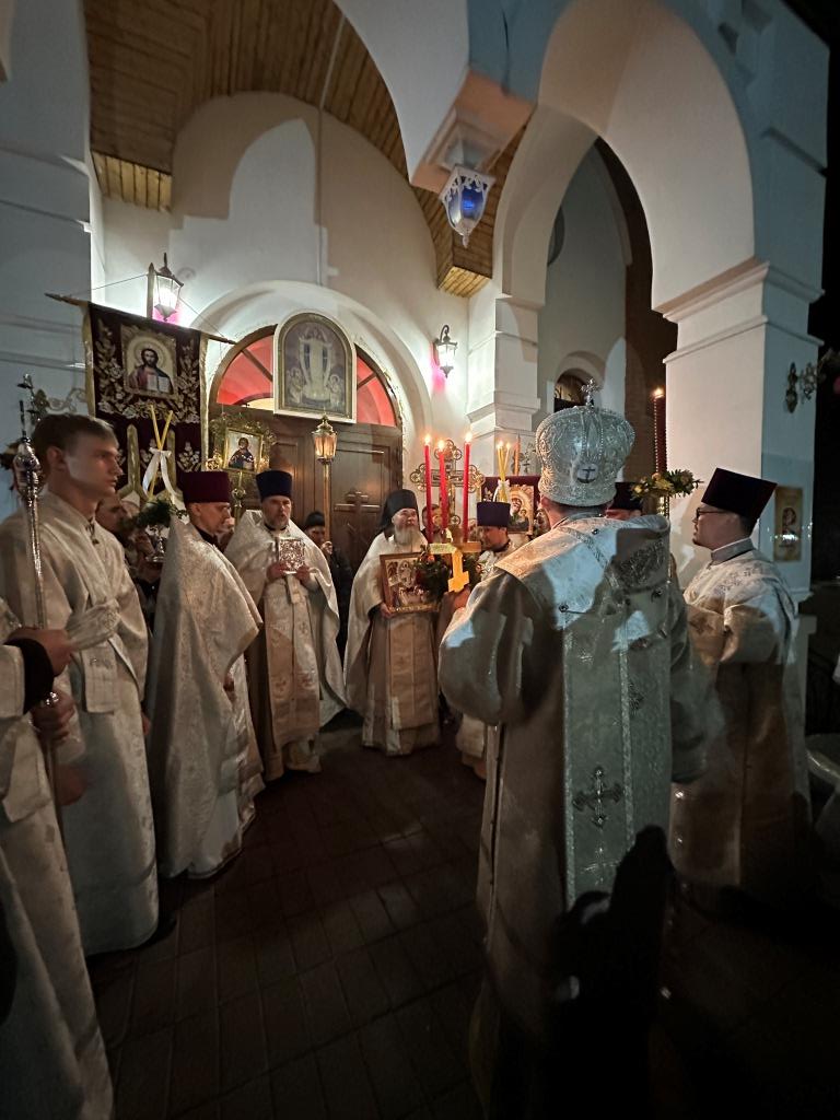 Перед началом Пасхального богослужения была совершена общая исповедь для желающих причаститься Святых Христовых Таин в святую ночь и полунощница с каноном Великой Субботы, в котором повествуется о погребении Распятого на Кресте Сына Божия. На девятой песне канона Святая Плащаница была внесена в алтарь и положена на Престол, где она будет пребывать до праздника Вознесения.