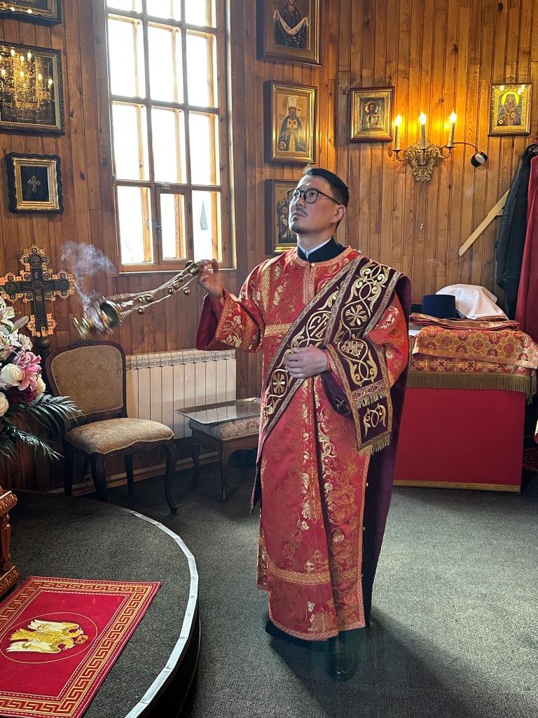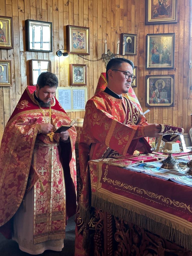 Владыке Амфилохию сослужили: благочинный Усть-Каменогорского церковного округа, настоятель Покровского храма иеромонах Силуан (Магилев), ключарь Андереевского собора иеромонах Никодим (Авдеев), клирик Андреевского собора иерей Константин Дьяков, ключарь Покровского храма иерей Иоанн Толмачев; протодиакон Александр Якушев, протодиакон Андрей Дудник, секретарь епархии диакон Илия Кван, диакон Кирилл Нарушин.