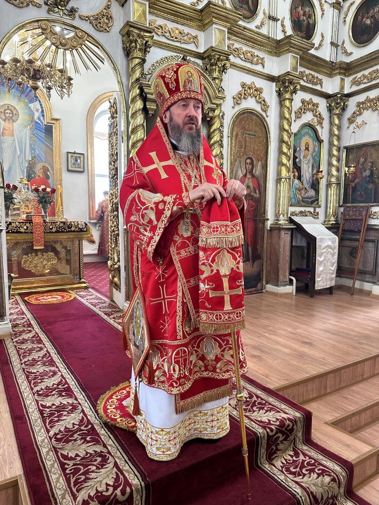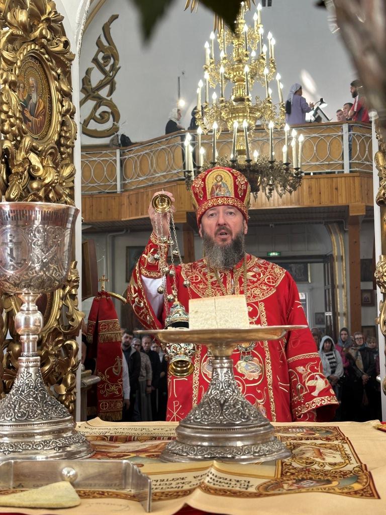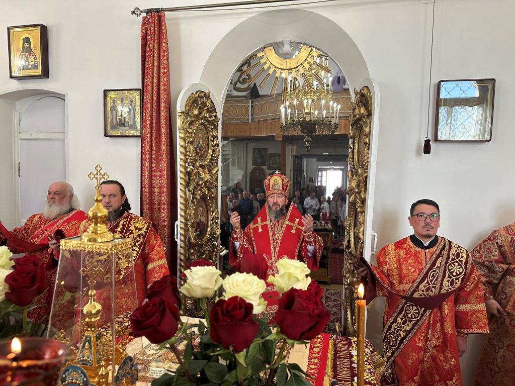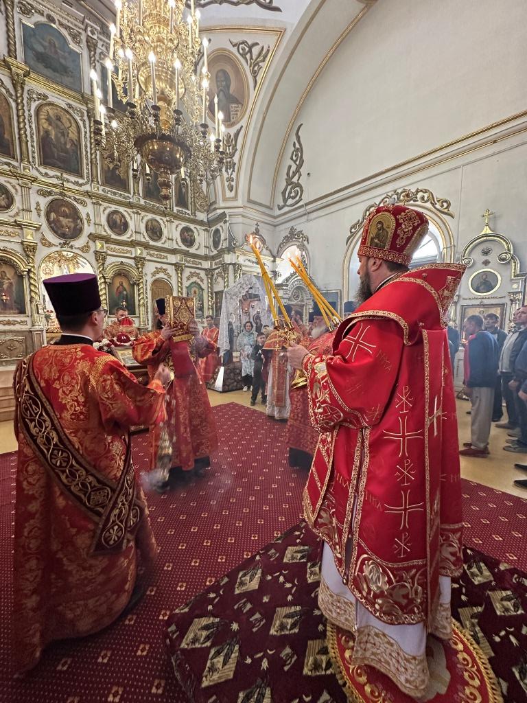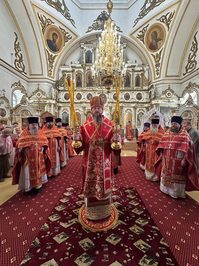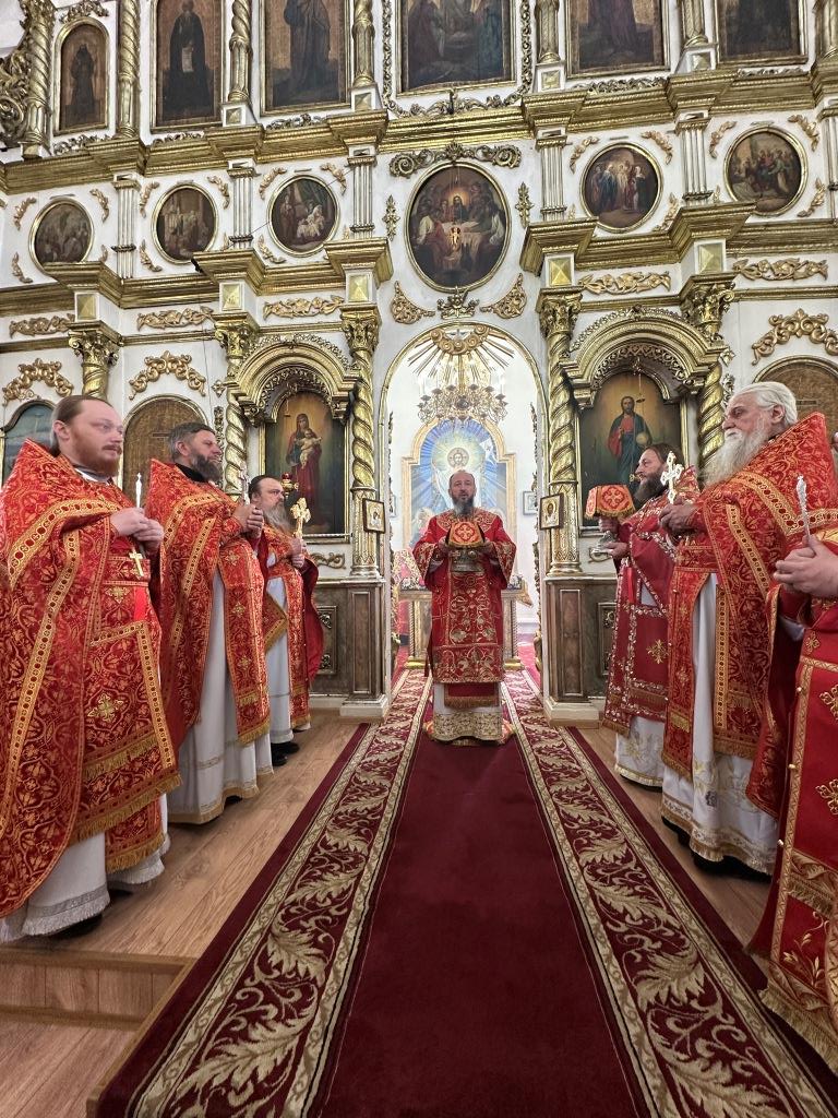 За праздничным богослужением архиепископу Амфилохию сослужили: благочинный Семипалатинского церковного округа протоиерей Евгений Яганов; клирики Воскресенского кафедрального собора протоиерей Александр Юркин, протоиерей Петр Хонин, протоиерей Сергий Жарич, иерей Евгений Хохряков; клирик Никольского храма города Риддера иерей Димитрий Нектеров, настоятель Никольского храма посёлка Бородулиха иерей Виталий Екидин; протодиакон Андрей Дудник и протодиакон Николай Белоконь, секретарь епархии диакон Илия Кван. Песнопения Божественной Литургии и престольного праздника исполнял хор Воскресенского кафедрального собора под управлением Ю. Хохряковой.
