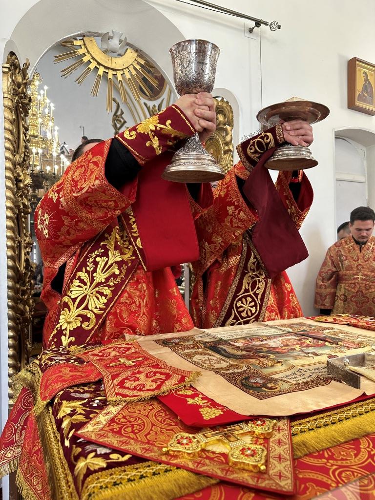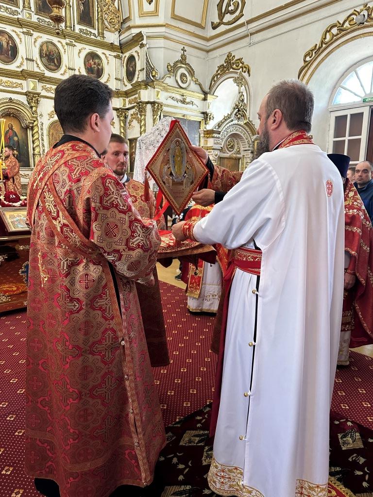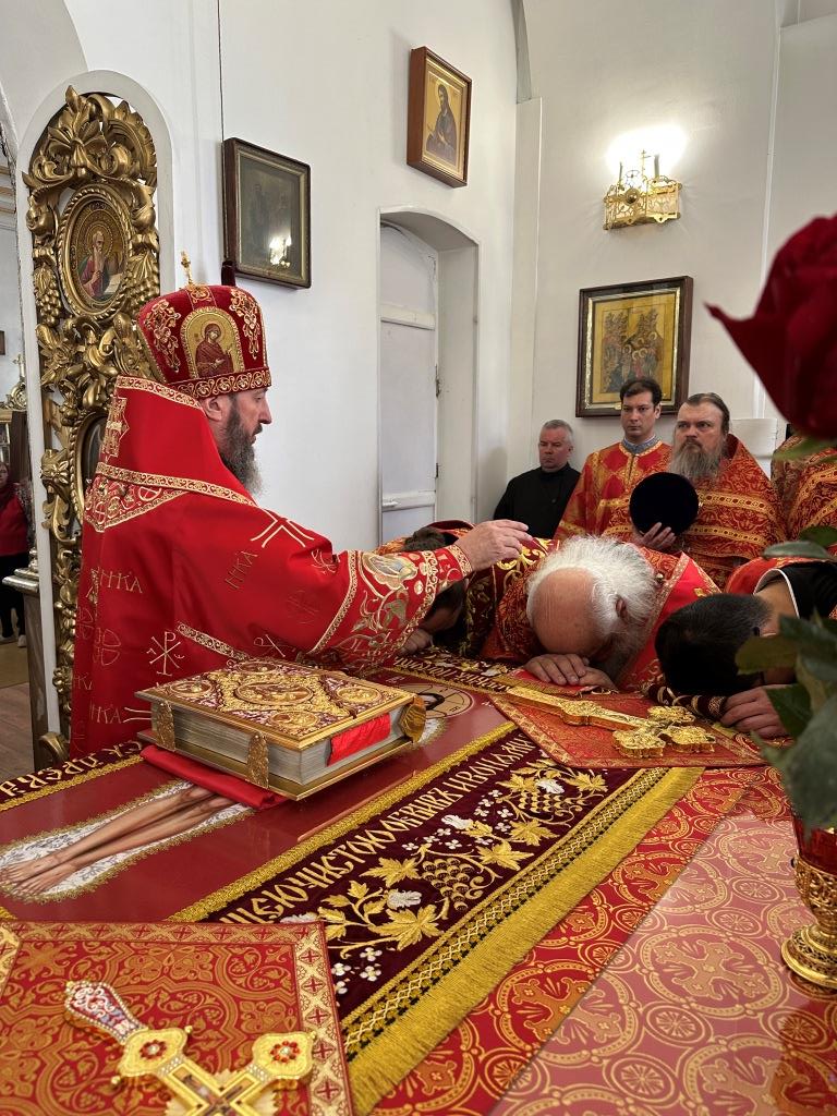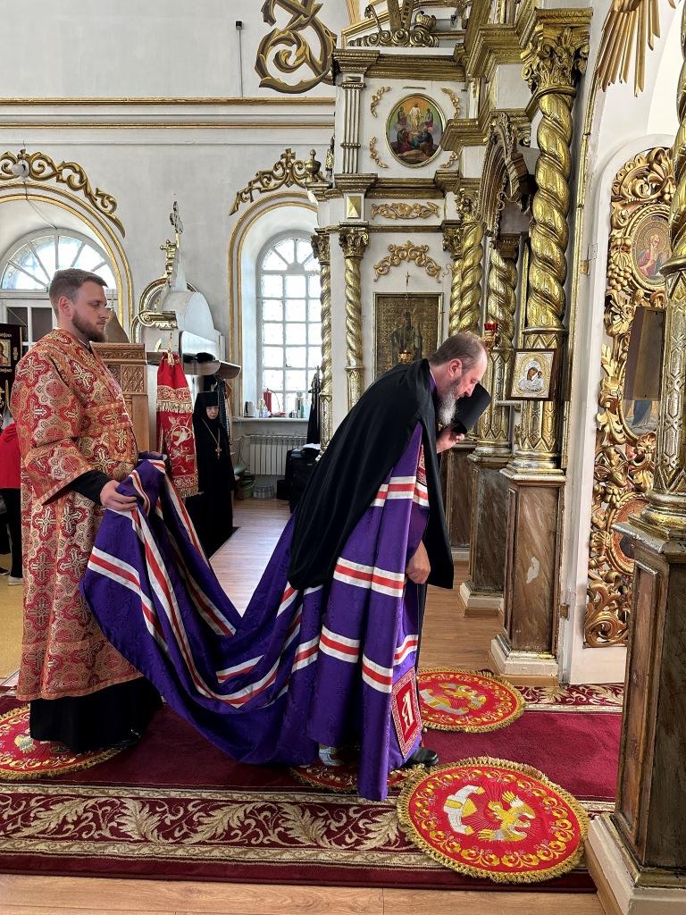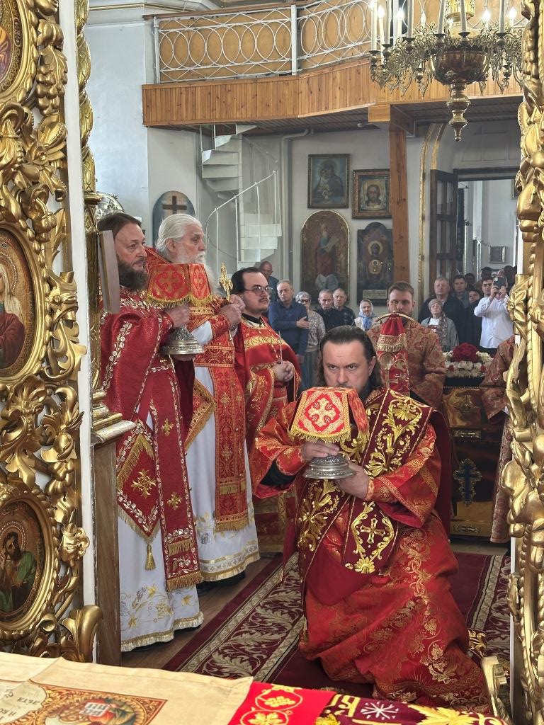 За праздничным богослужением архиепископу Амфилохию сослужили: благочинный Семипалатинского церковного округа протоиерей Евгений Яганов; клирики Воскресенского кафедрального собора протоиерей Александр Юркин, протоиерей Петр Хонин, протоиерей Сергий Жарич, иерей Евгений Хохряков; клирик Никольского храма города Риддера иерей Димитрий Нектеров, настоятель Никольского храма посёлка Бородулиха иерей Виталий Екидин; протодиакон Андрей Дудник и протодиакон Николай Белоконь, секретарь епархии диакон Илия Кван. Песнопения Божественной Литургии и престольного праздника исполнял хор Воскресенского кафедрального собора под управлением Ю. Хохряковой.