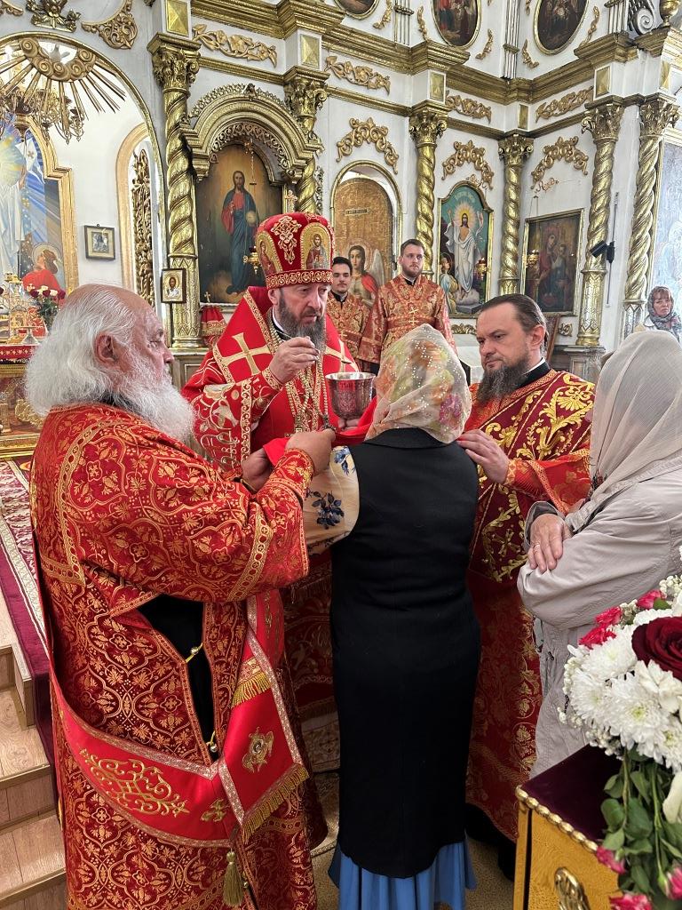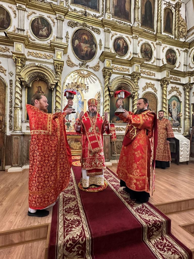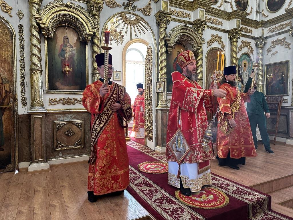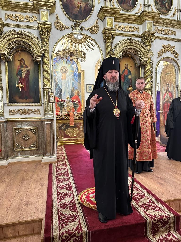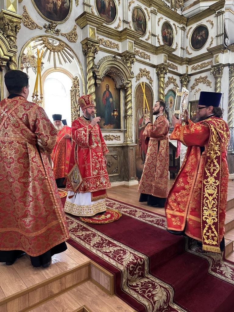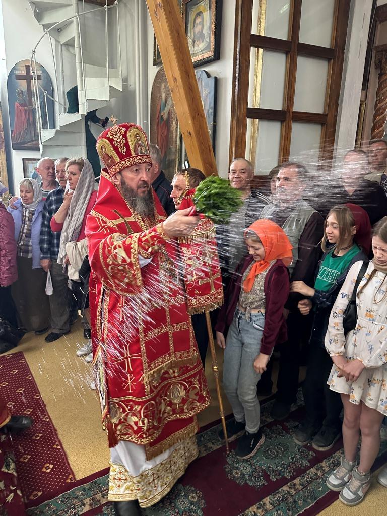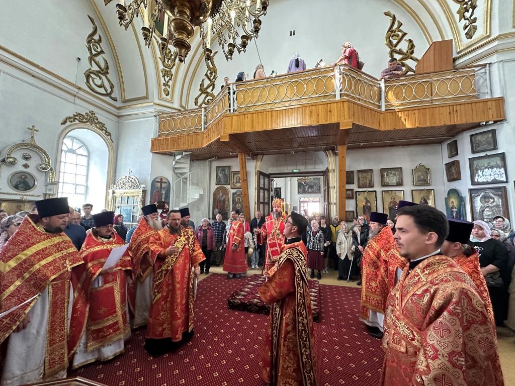 В храме молились и причащались Святых Христовых Таин прихожане Воскресенского собора, преподаватели и воспитанники приходской воскресной школы, паломники с городских приходов и окрестных населённых пунктов. После заамвонной молитвы Архипастырь с клириками и народом Божиим совершил крестный ход вокруг храма и славление Воскресшему Христу. Завершая престольное торжество, Владыка архиепископ поздравил собравшихся с великим праздником Пасхи Христовой и произнёс слова наставления.