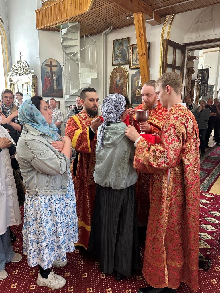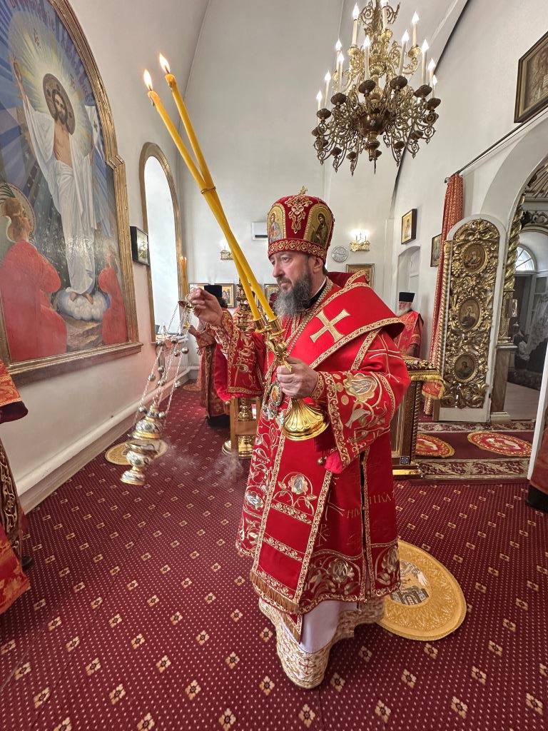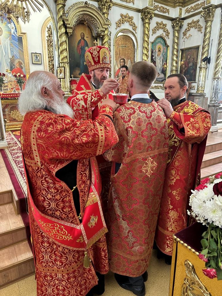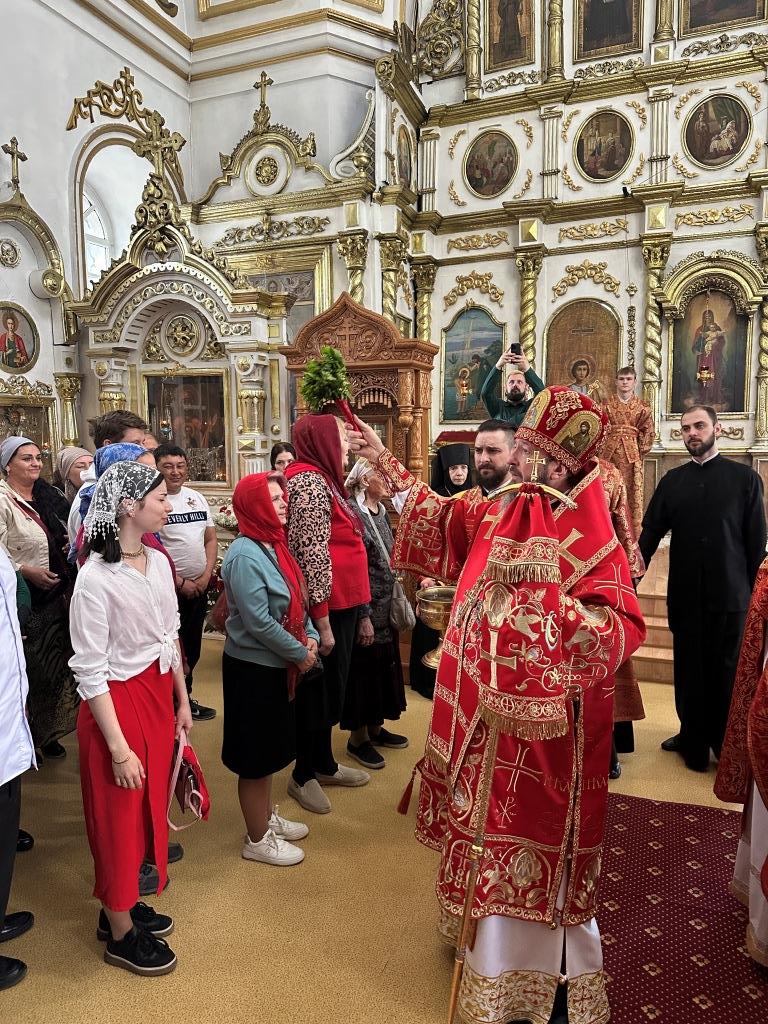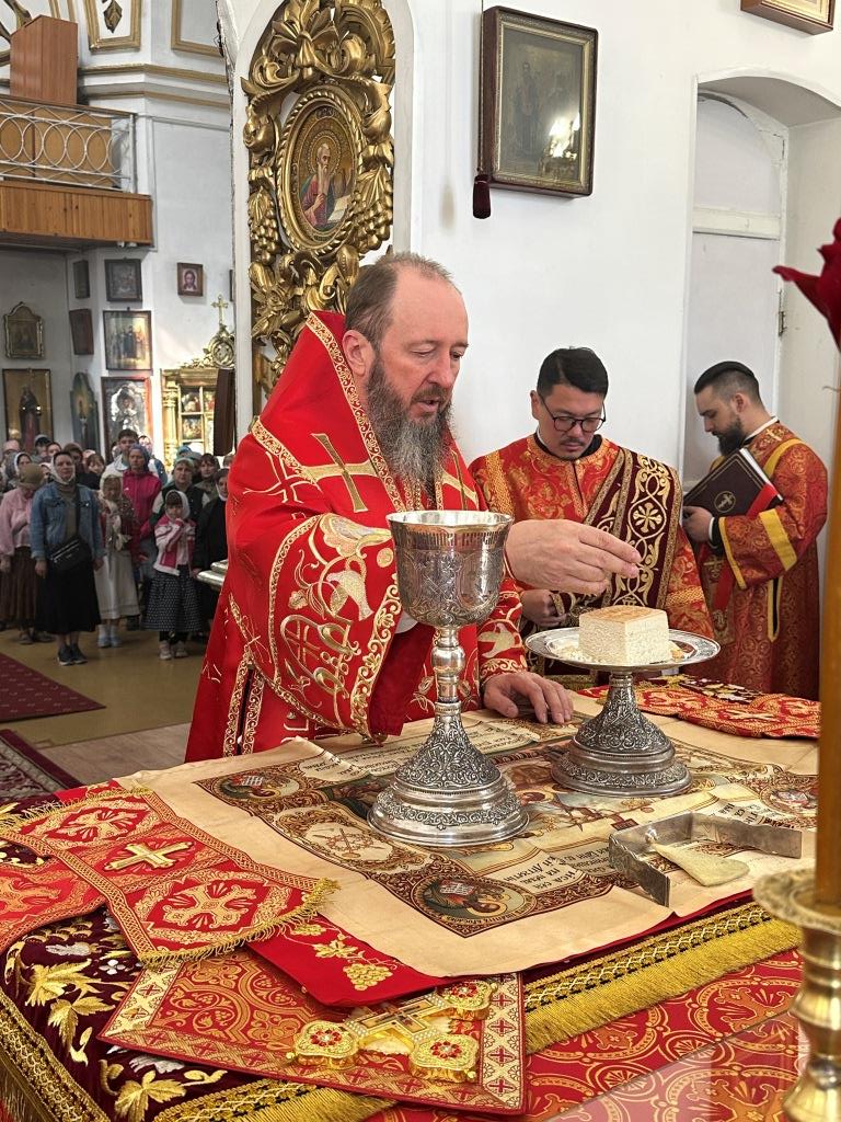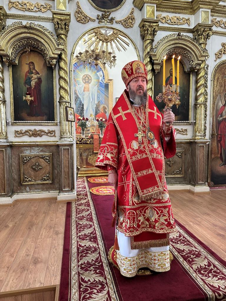 В храме молились и причащались Святых Христовых Таин прихожане Воскресенского собора, преподаватели и воспитанники приходской воскресной школы, паломники с городских приходов и окрестных населённых пунктов. После заамвонной молитвы Архипастырь с клириками и народом Божиим совершил крестный ход вокруг храма и славление Воскресшему Христу. Завершая престольное торжество, Владыка архиепископ поздравил собравшихся с великим праздником Пасхи Христовой и произнёс слова наставления.