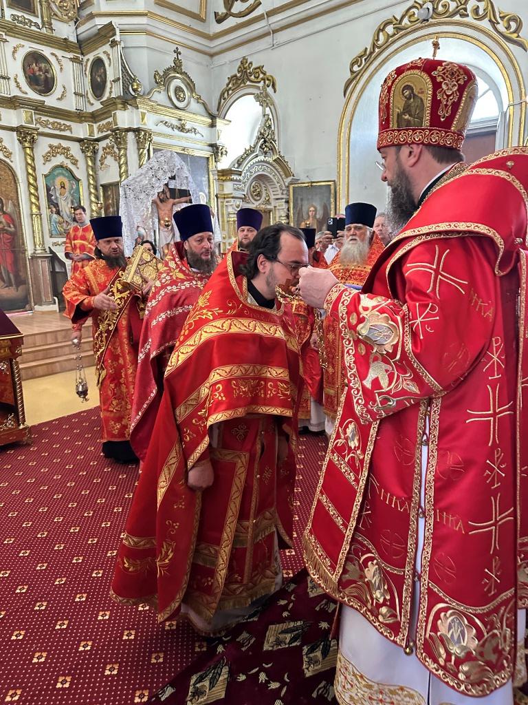 К празднику Святой Пасхи на малом входе Архипастырь наградил иереев Димитрия Нектерова и Виталия Екидина правом ношения наперсного золотого креста.