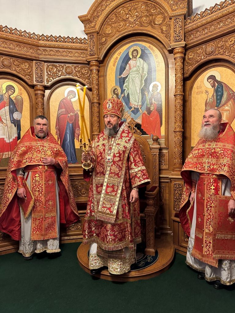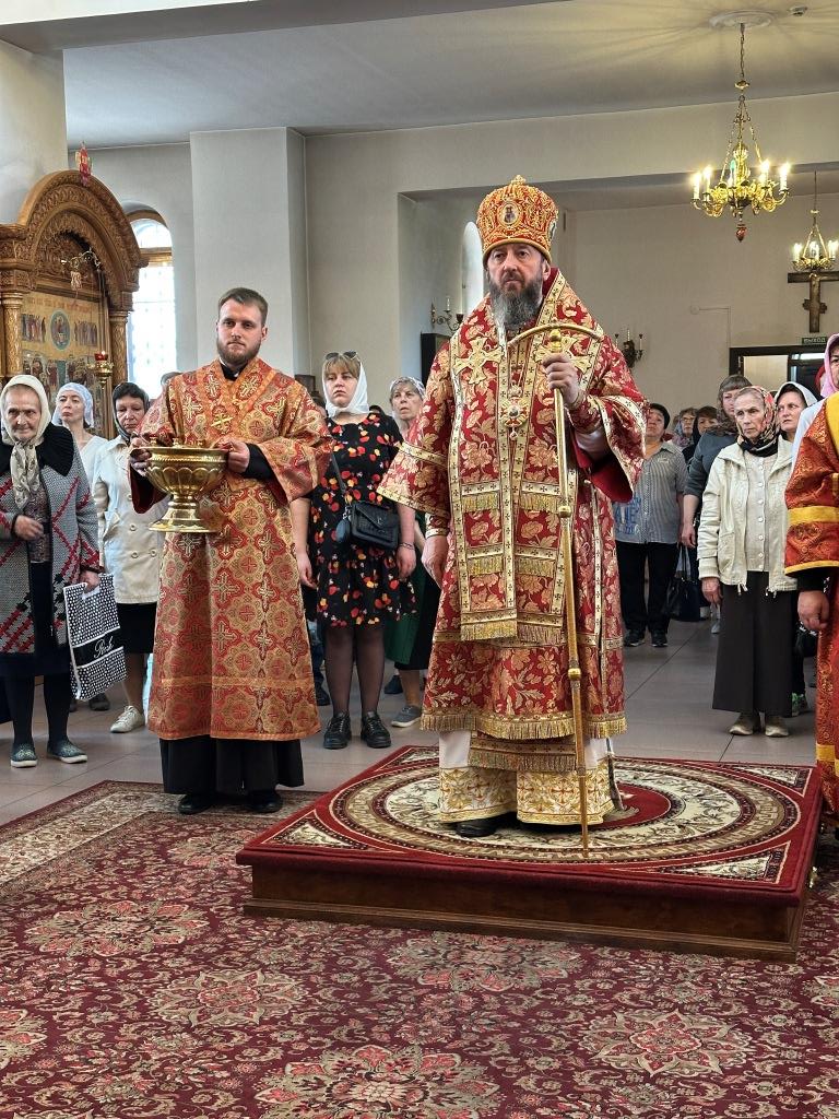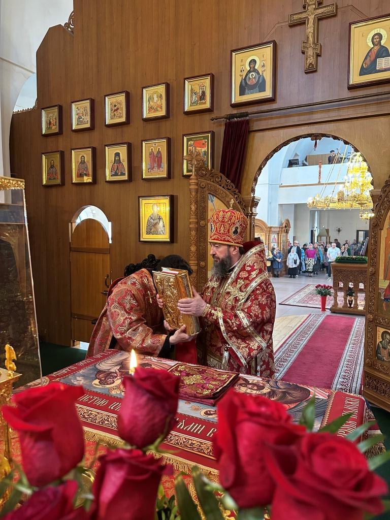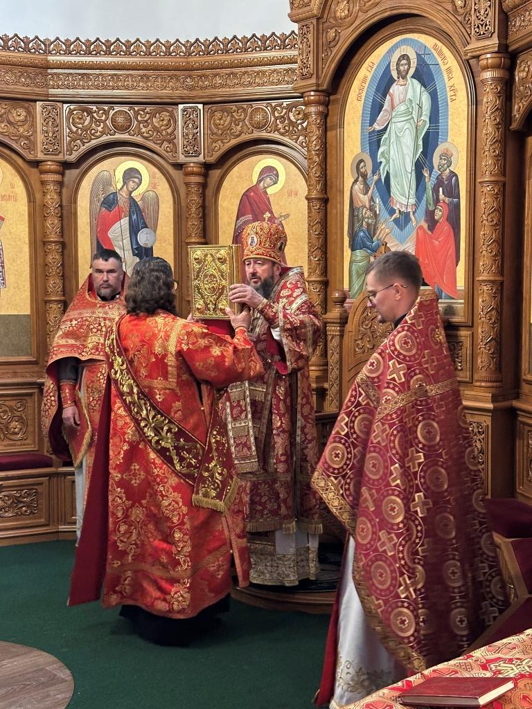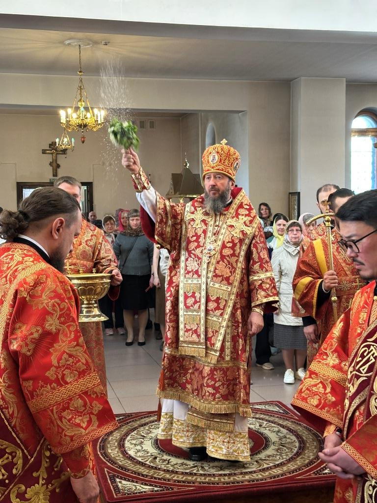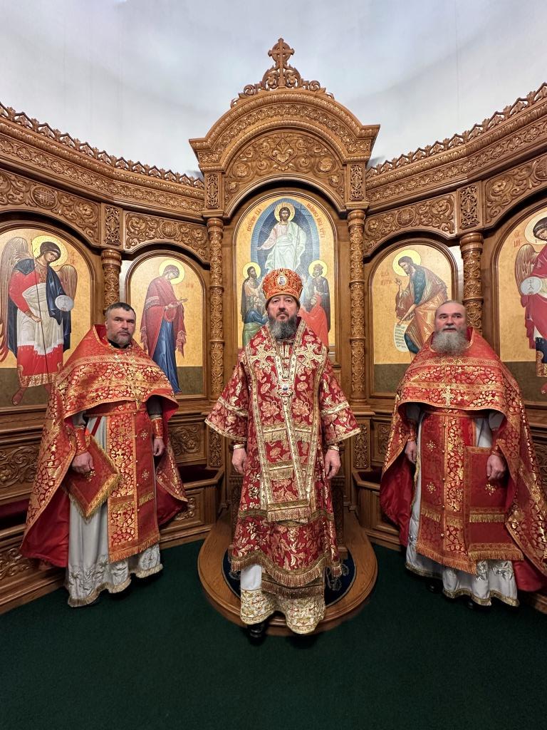 Архипастырю сослужили: ключарь кафедрального собора иеромонах Никодим (Авдеев), клирики кафедрального собора иерей Виталий Адаменков и иерей Константин Дьяков, протодиакон Андрей Дудник, секретарь епархии диакон Илия Кван.