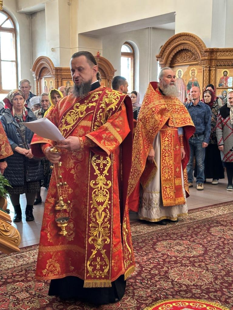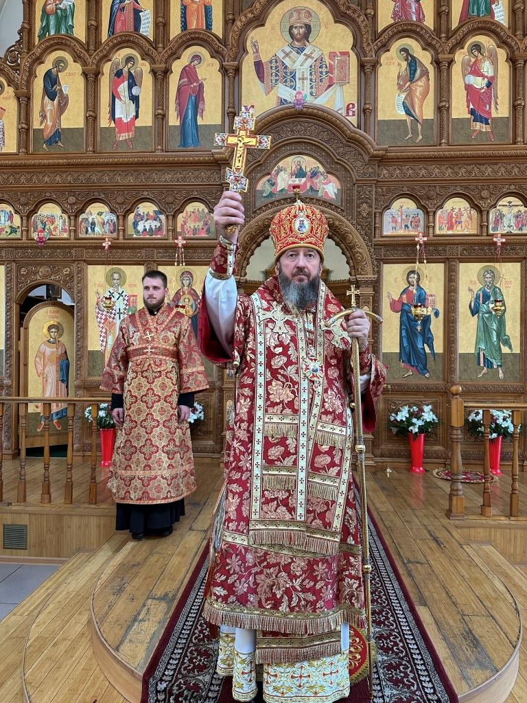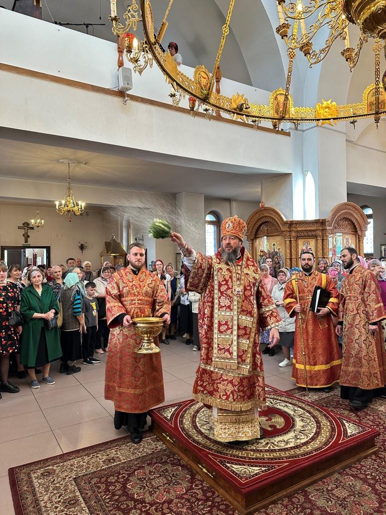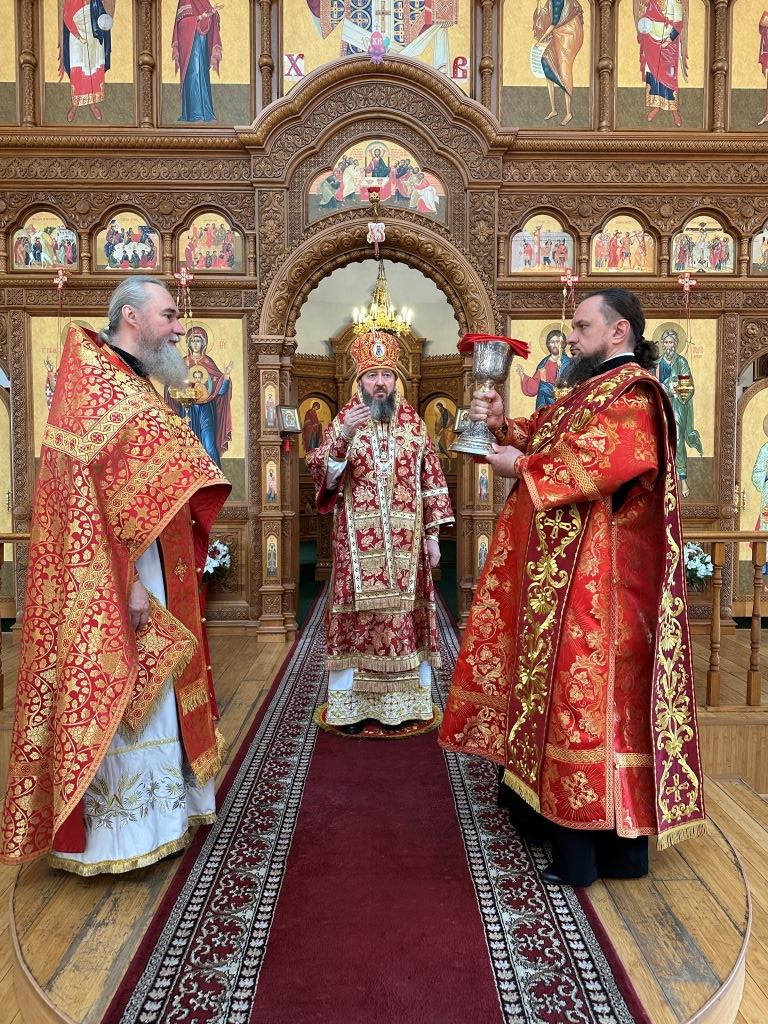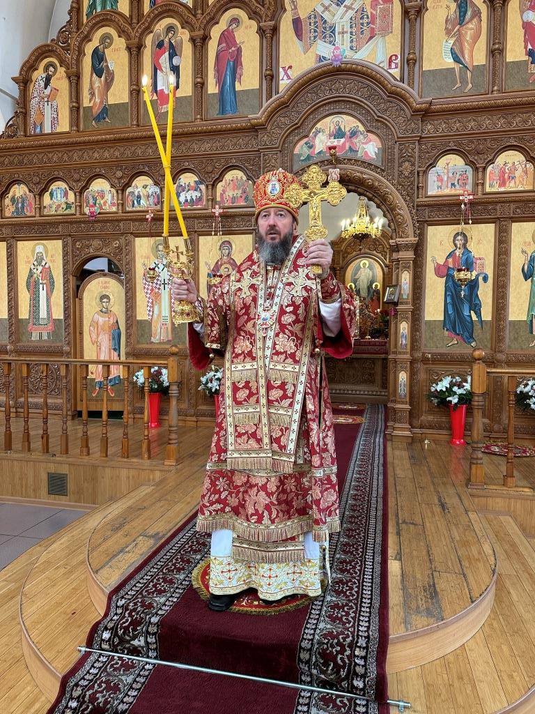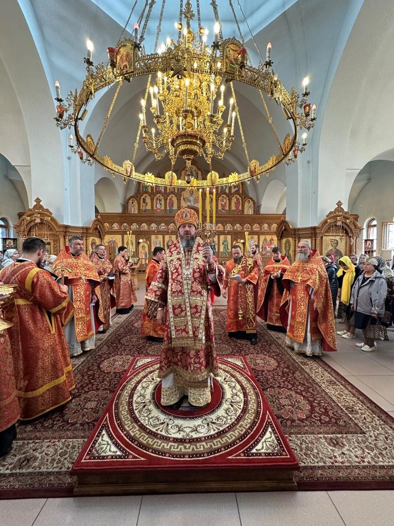 Архипастырю сослужили: ключарь кафедрального собора иеромонах Никодим (Авдеев), клирики кафедрального собора иерей Виталий Адаменков и иерей Константин Дьяков, протодиакон Андрей Дудник, секретарь епархии диакон Илия Кван.