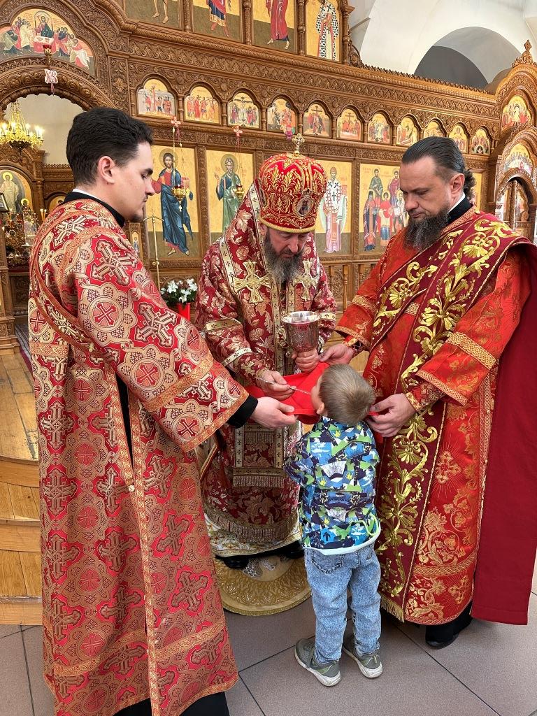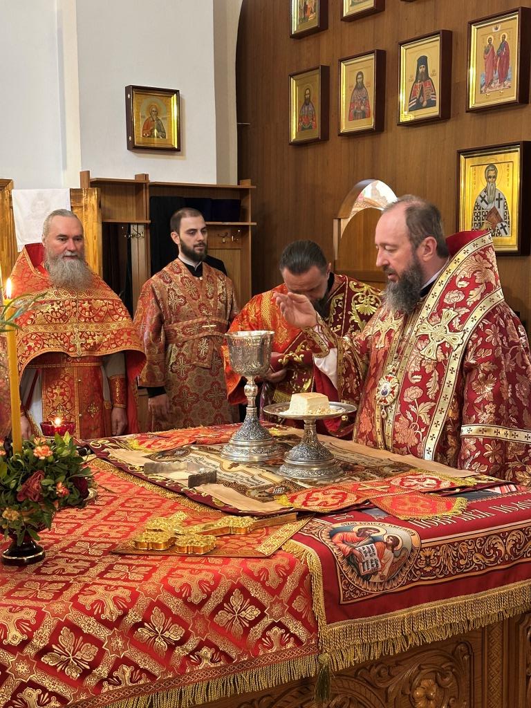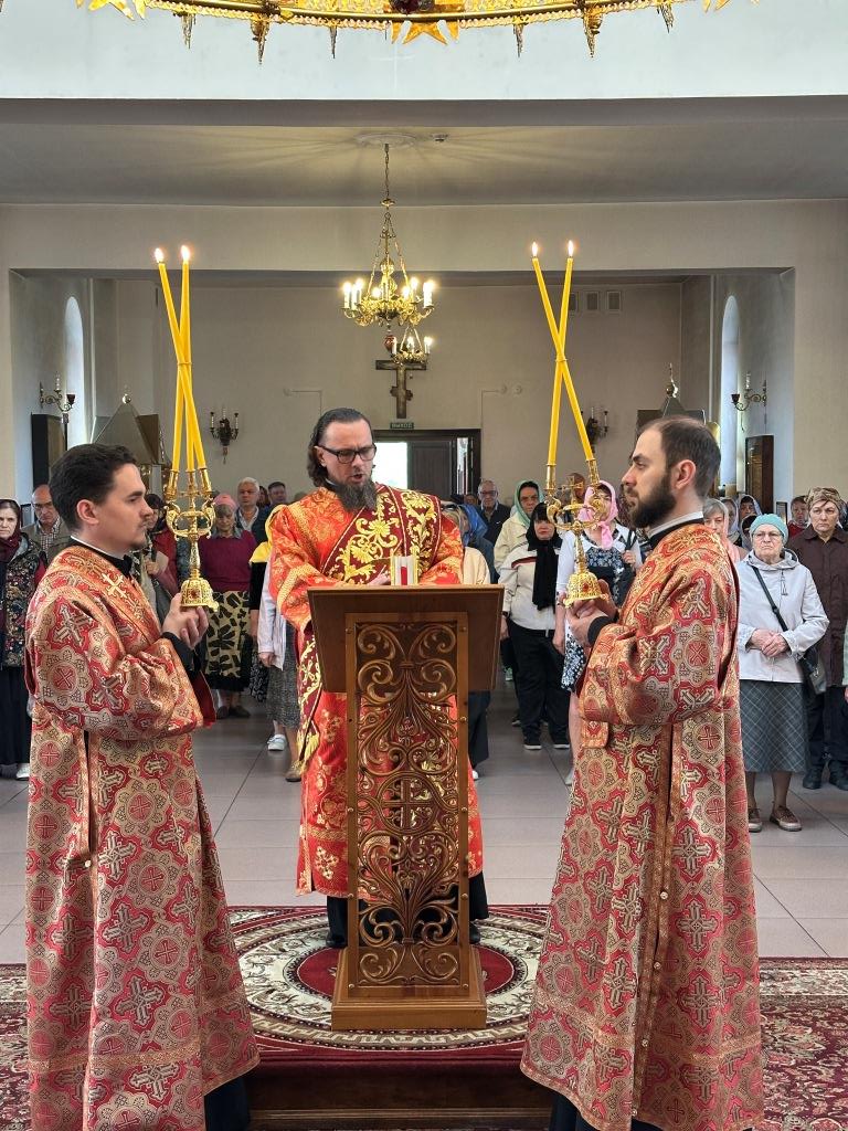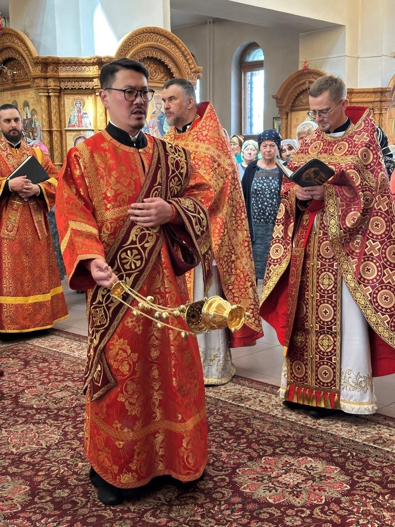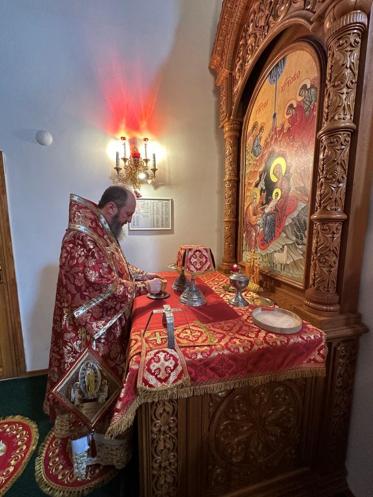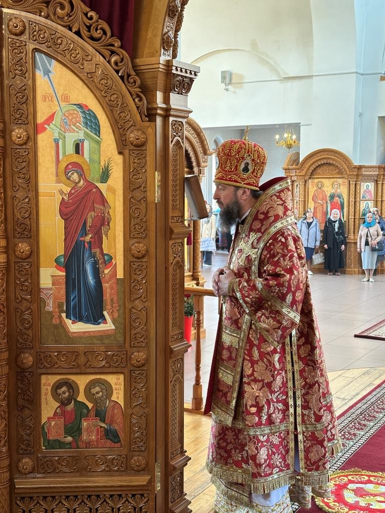 Архипастырю сослужили: ключарь кафедрального собора иеромонах Никодим (Авдеев), клирики кафедрального собора иерей Виталий Адаменков и иерей Константин Дьяков, протодиакон Андрей Дудник, секретарь епархии диакон Илия Кван.