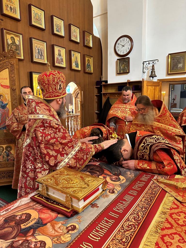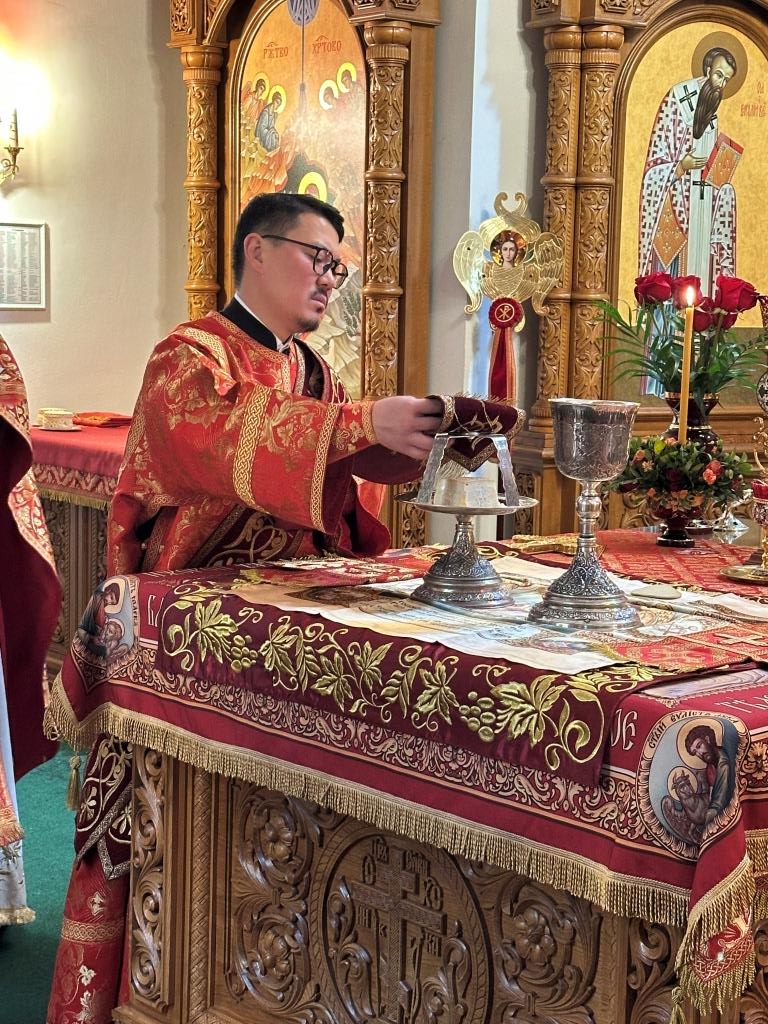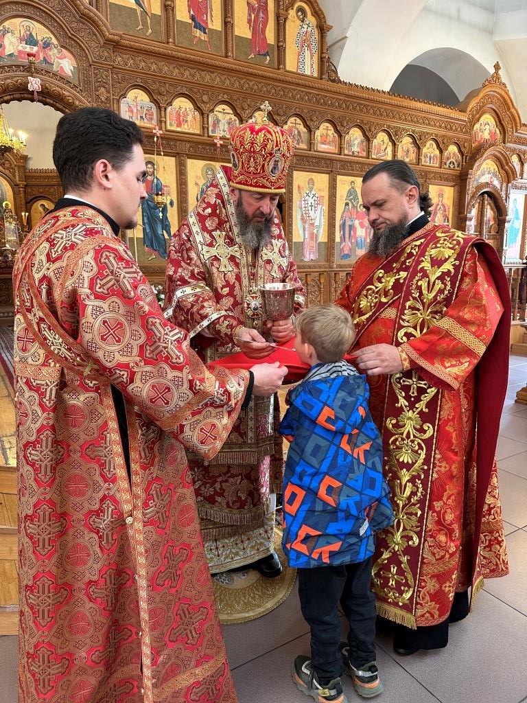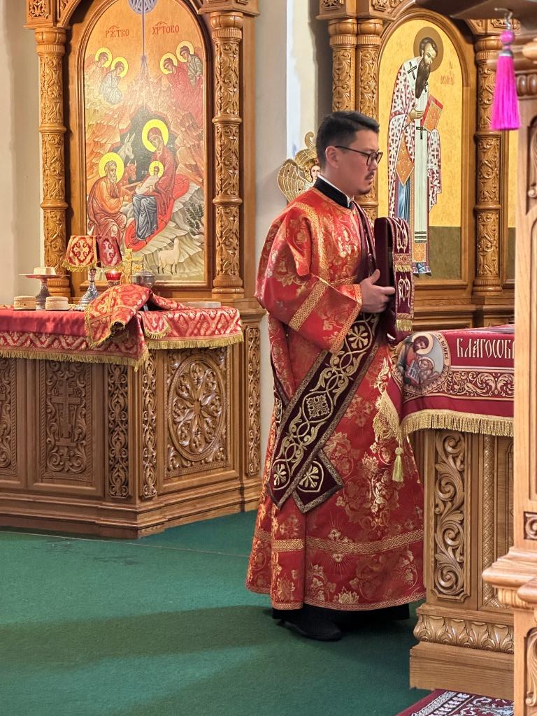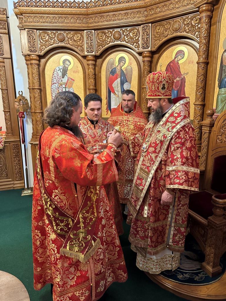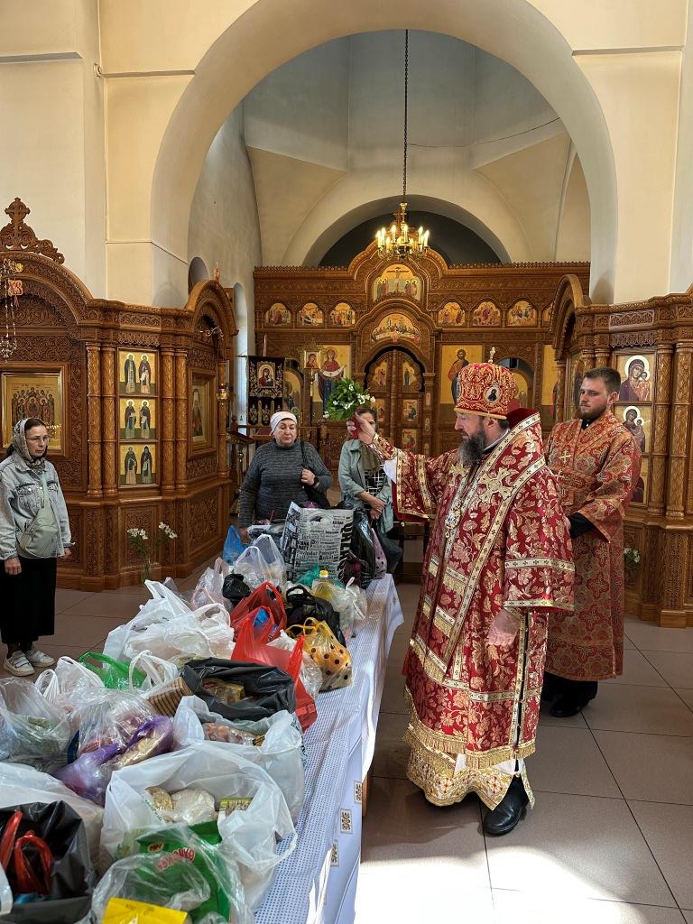 Архипастырю сослужили: ключарь кафедрального собора иеромонах Никодим (Авдеев), клирики кафедрального собора иерей Виталий Адаменков и иерей Константин Дьяков, протодиакон Андрей Дудник, секретарь епархии диакон Илия Кван.