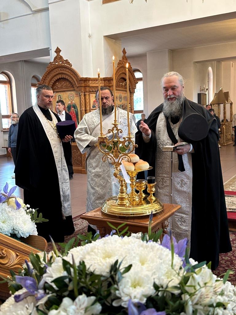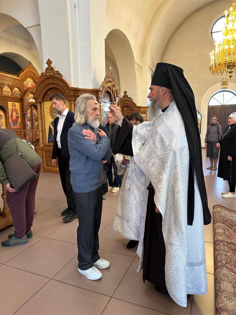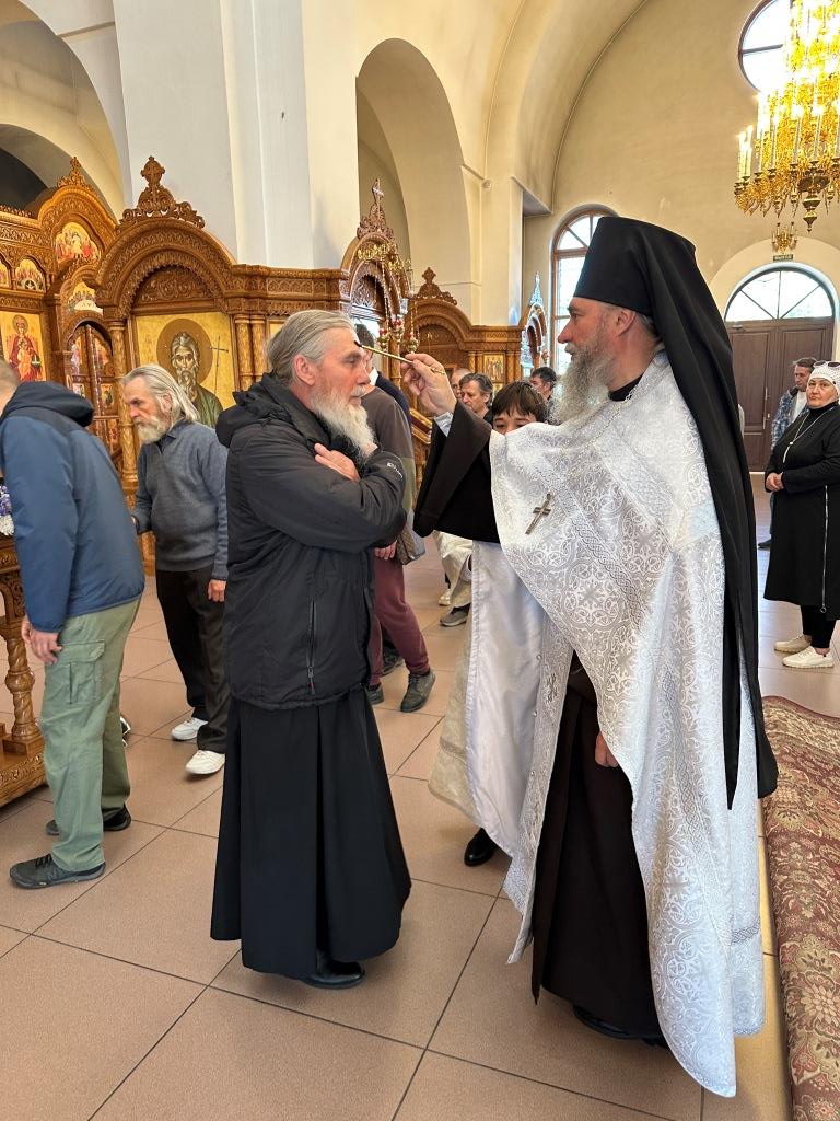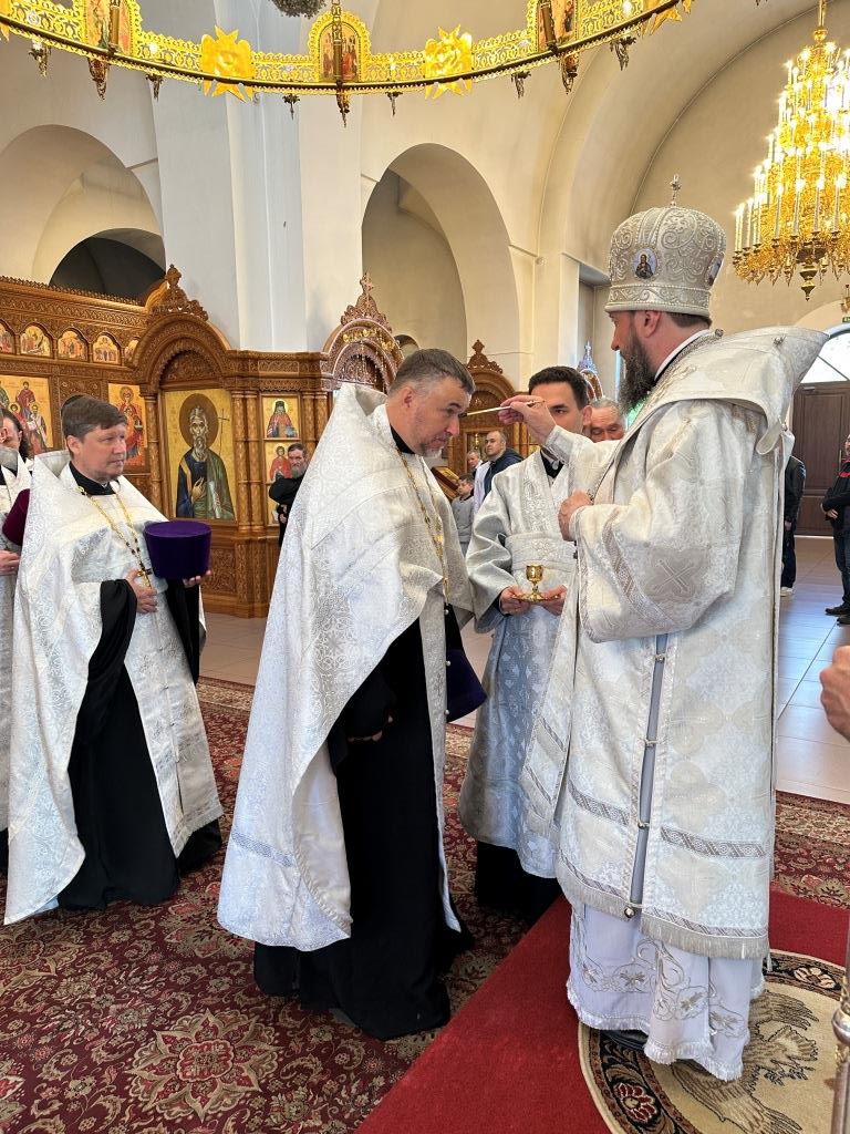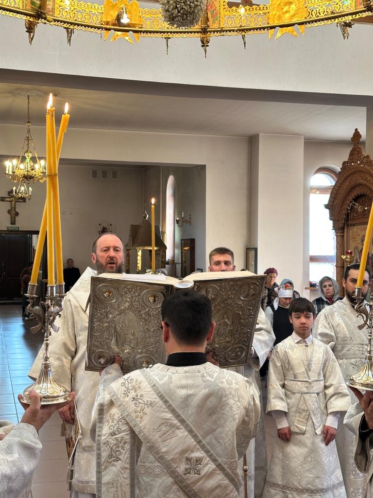 На полиелее возглашалось славление Господу Иисусу Христу; после чтения праздничного евангельского зачала архиепископ Амфилохий помазал клир и паству освященным елеем.