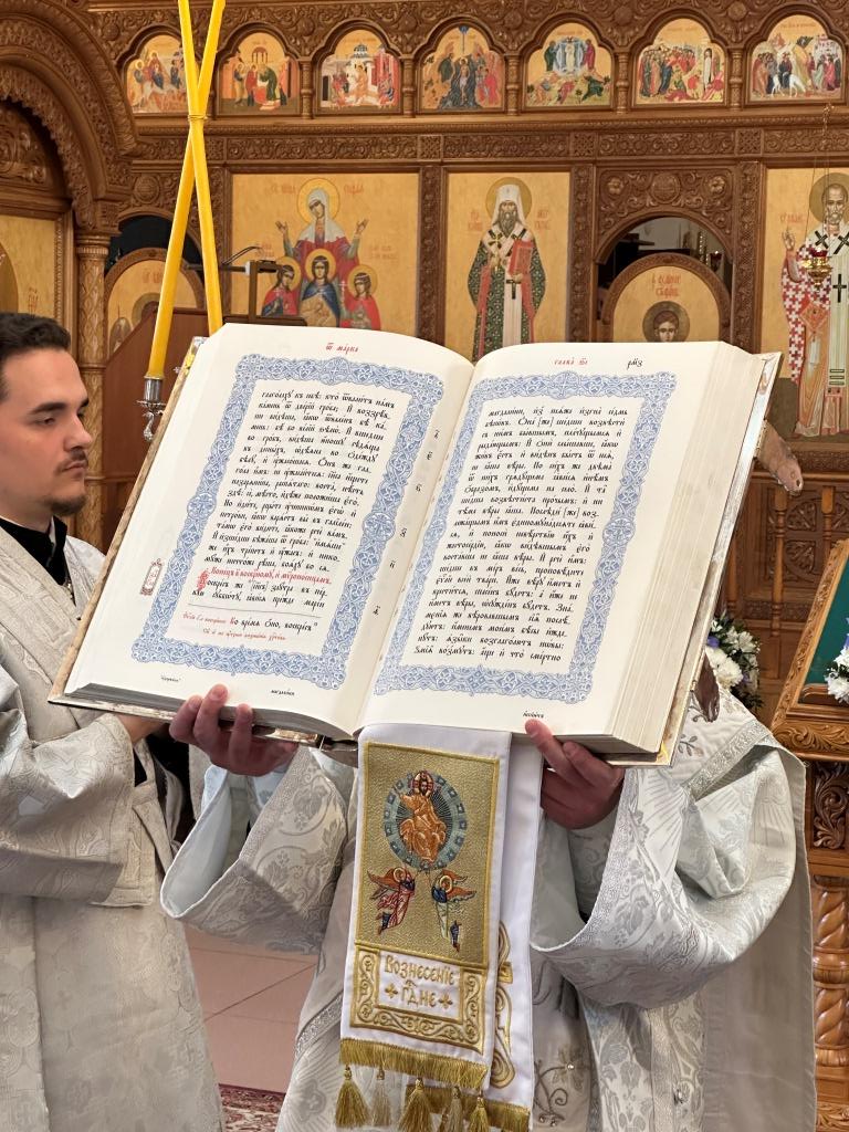 Песнопения праздника Вознесения Господня исполнял хор Андреевского собора, регент Н. Романцова. На Всенощном бдении совершалась лития – особое молитвенное последование с освящением хлеба, пшеницы, вина и елея. В храме молились прихожане кафедрального собора, сотрудники епархиального управления и насельники Свято-Троицкого мужского монастыря города Усть-Каменогорска.