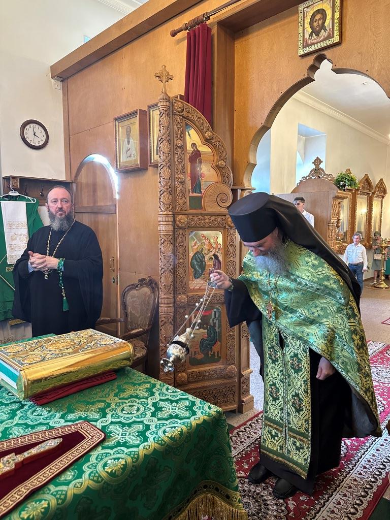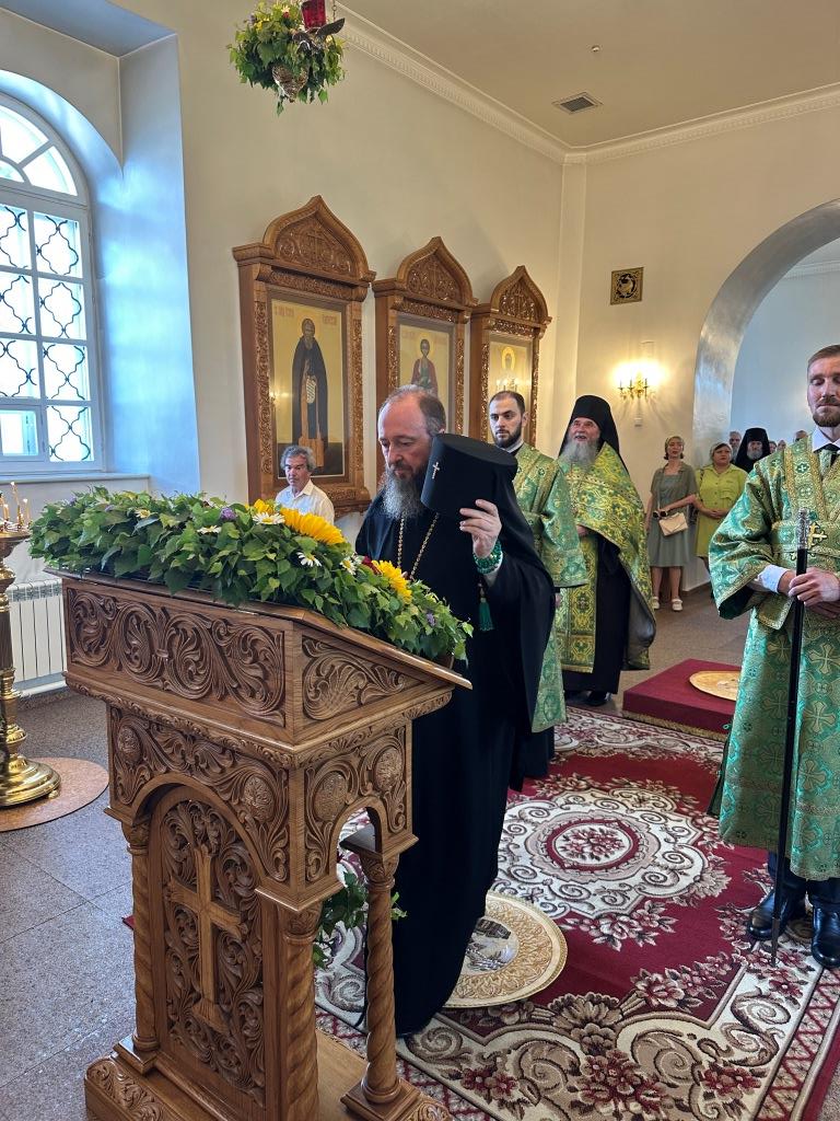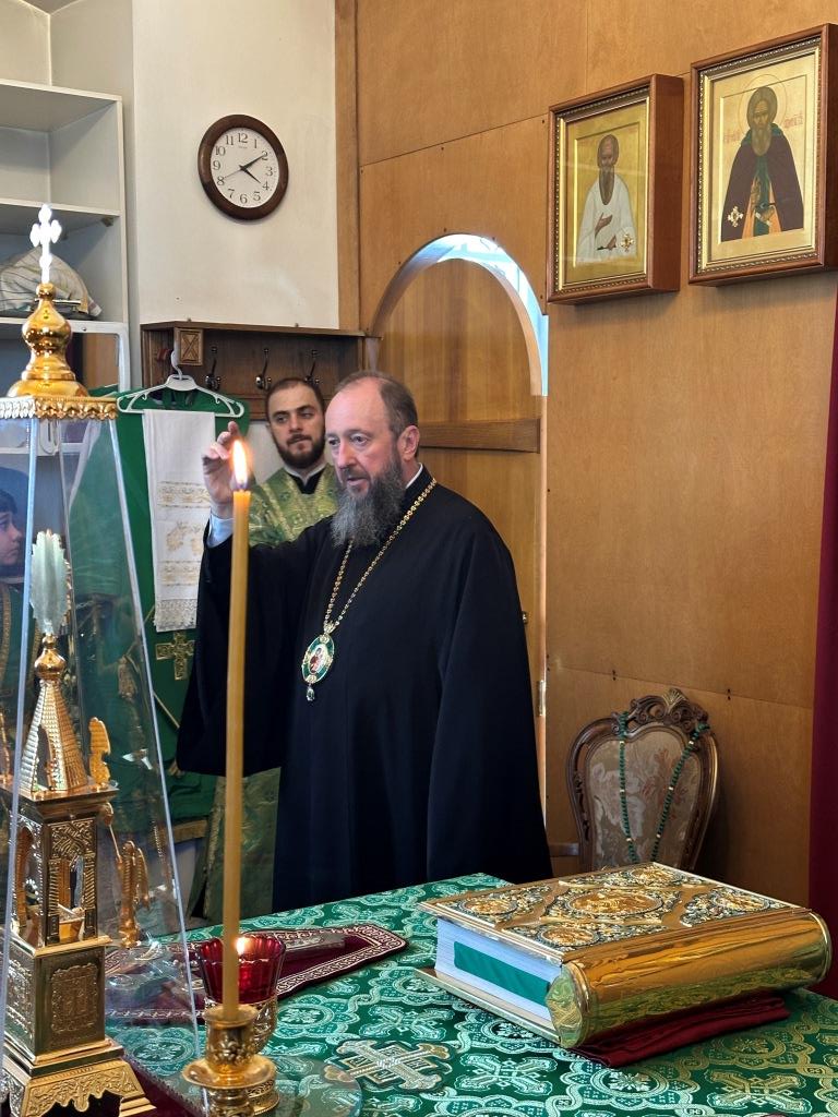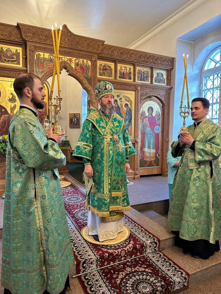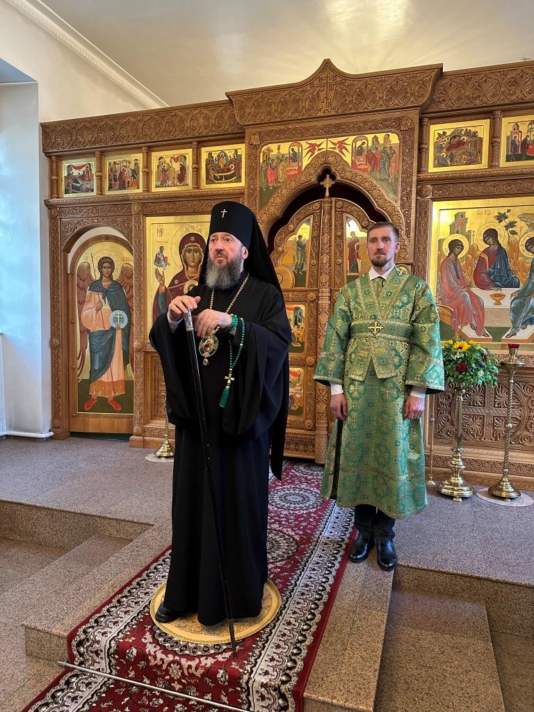 Владыке епископу сослужили: ключарь Андреевского кафедрального собора иеромонах Никодим (Авдеев), клирики собора иерей Виталий Адаменков, иерей Роман Подрезов, иерей Константин Дьяков, протодиакон Андрей Дудник, секретарь епархии диакон Илия Кван.