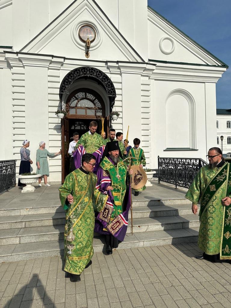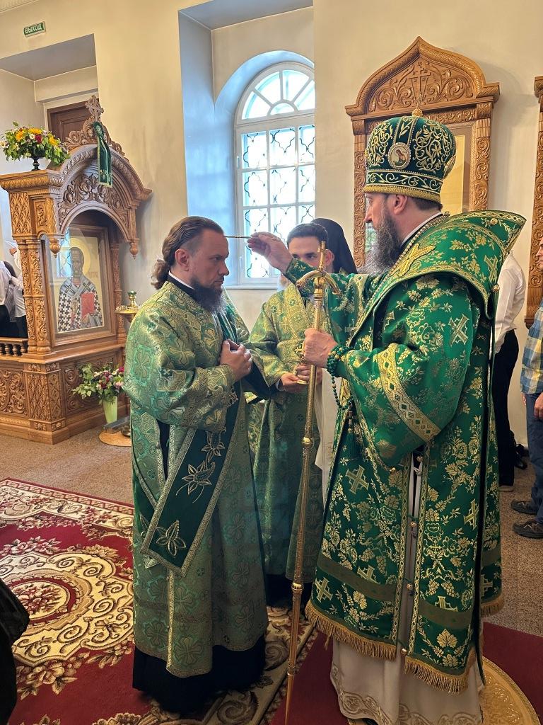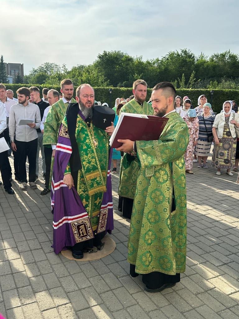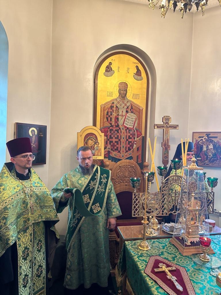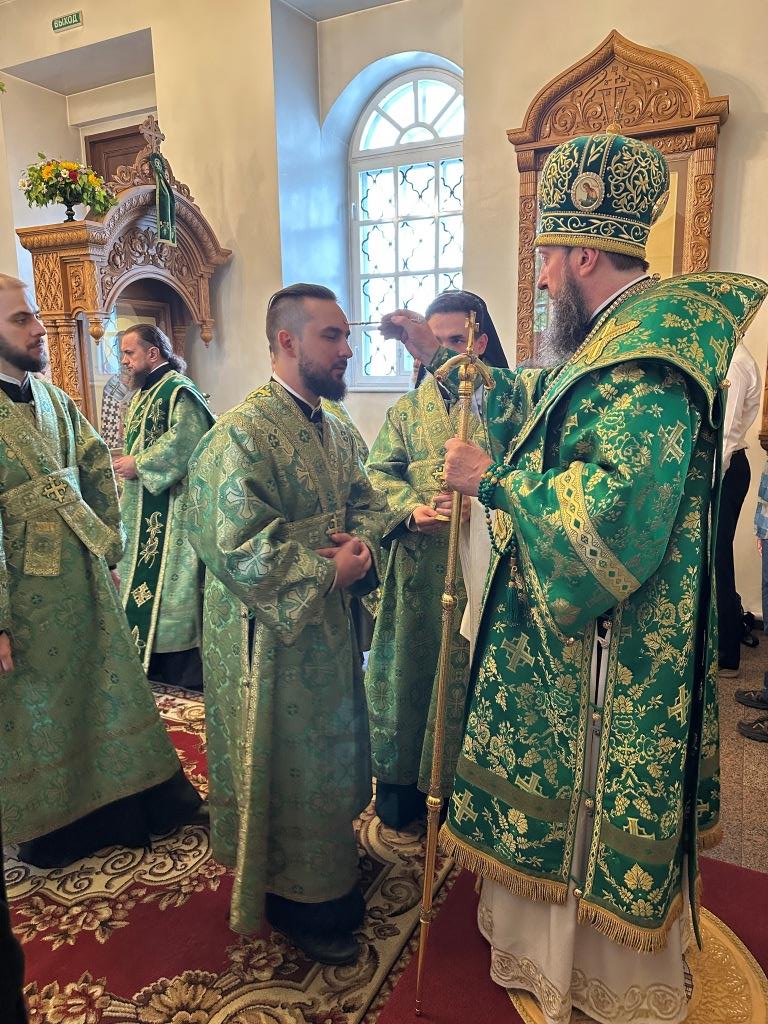 Владыке епископу сослужили: ключарь Андреевского кафедрального собора иеромонах Никодим (Авдеев), клирики собора иерей Виталий Адаменков, иерей Роман Подрезов, иерей Константин Дьяков, протодиакон Андрей Дудник, секретарь епархии диакон Илия Кван.