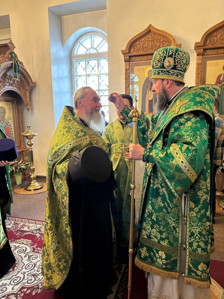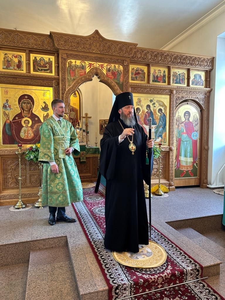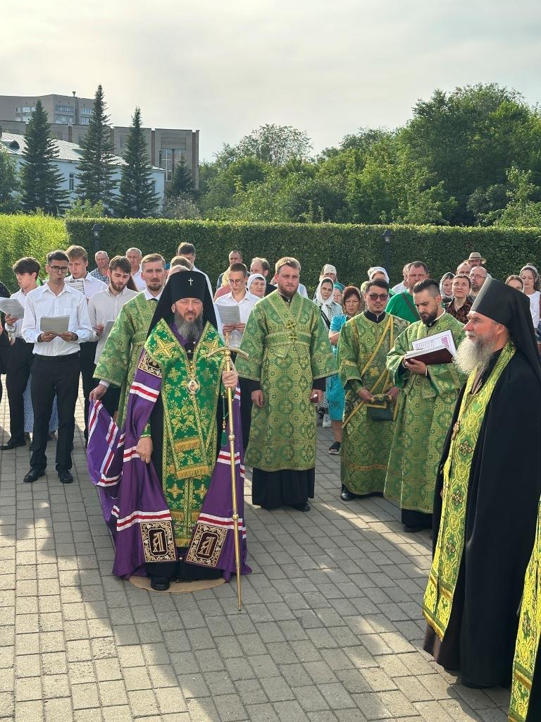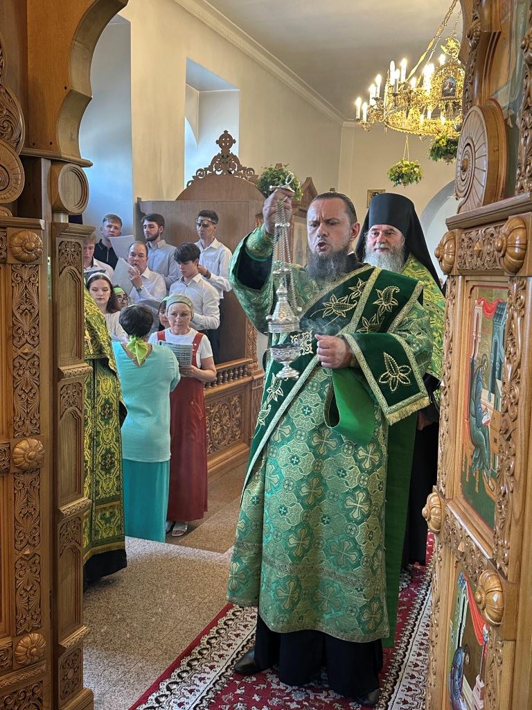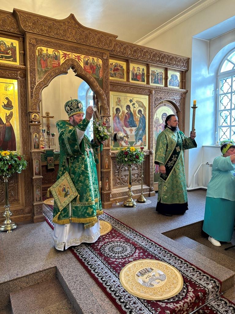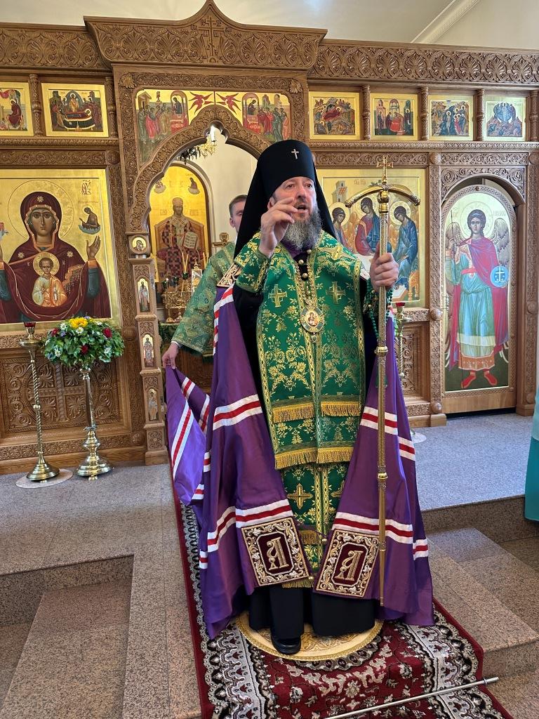 07 июня 2025 года, суббота. Седмица 7-я по Пасхе. Накануне двунадесятого праздника Святой Пятидесятницы Управляющий Усть-Каменогорской и Семипалатинской епархией Высокопреосвященнейший архиепископ Амфилохий возглавил служение Всенощного бдения в храме во имя Святой Троицы города Усть-Каменогорска.
