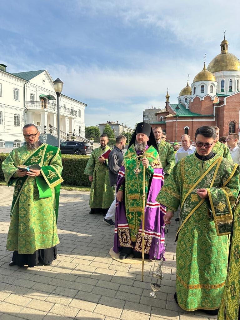 08 июня, в день праздника Святой Троицы, архиепископ Амфилохий совершит Божественную Литургию святителя Иоанна Златоуста и праздничную великую вечерню с чтением коленопреклоненных молитв в Андреевском кафедральном соборе, начало богослужения – в 09:00. Служение Божественной Литургии будет предварено совершением в Троицком храме молебного пения с чином освящения воды, начало молебна в 07:30.