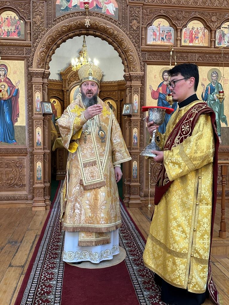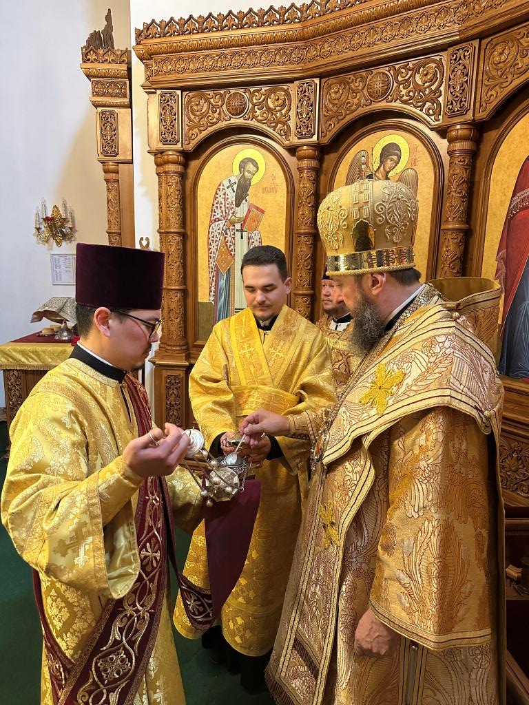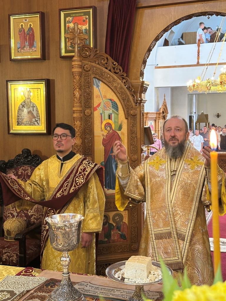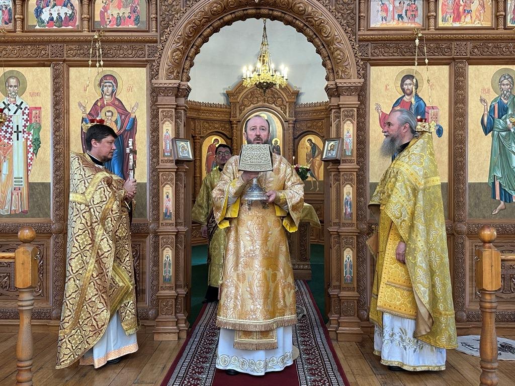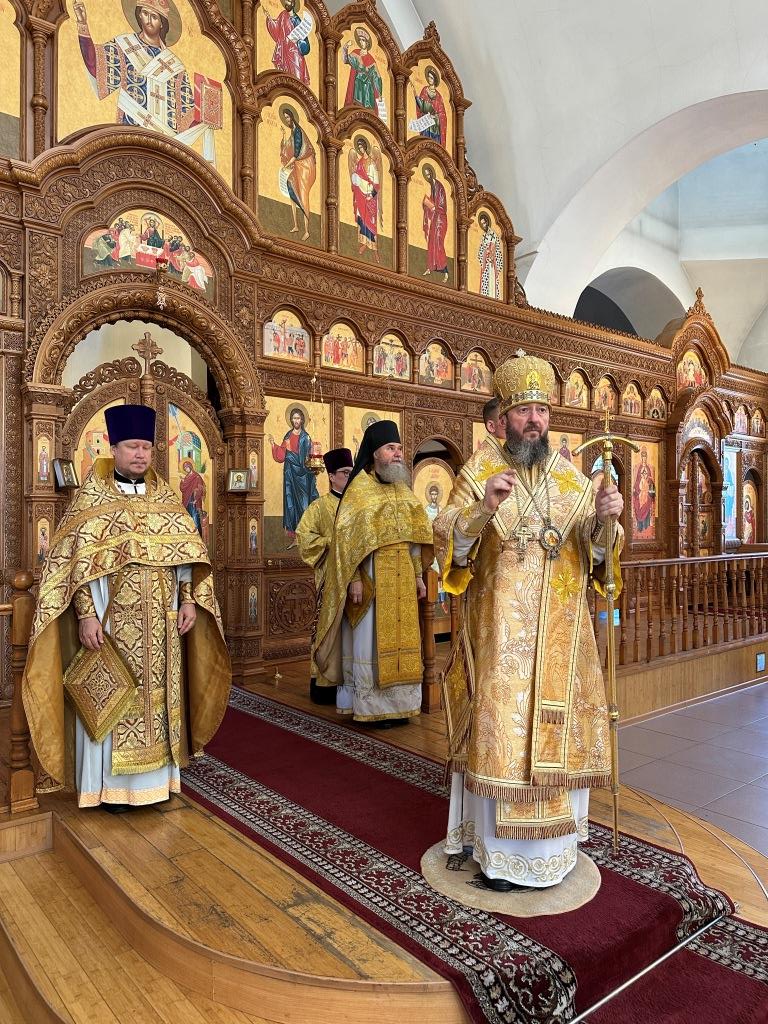 Архиепископ Усть-Каменогорский и Семипалатинский Амфилохий совершил Божественную Литургию святителя Иоанна Златоуста в Андреевском кафедральном соборе Усть-Каменогорска. Владыке сослужили: ключарь Андреевского собора иеромонах Никодим (Авдеев), клирик кафедрального собора иерей Роман Подрезов, секретарь епархии диакон Илия Кван.