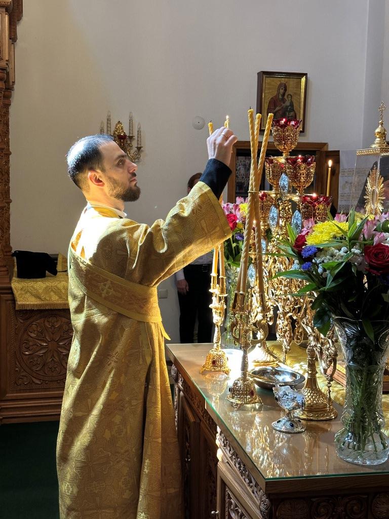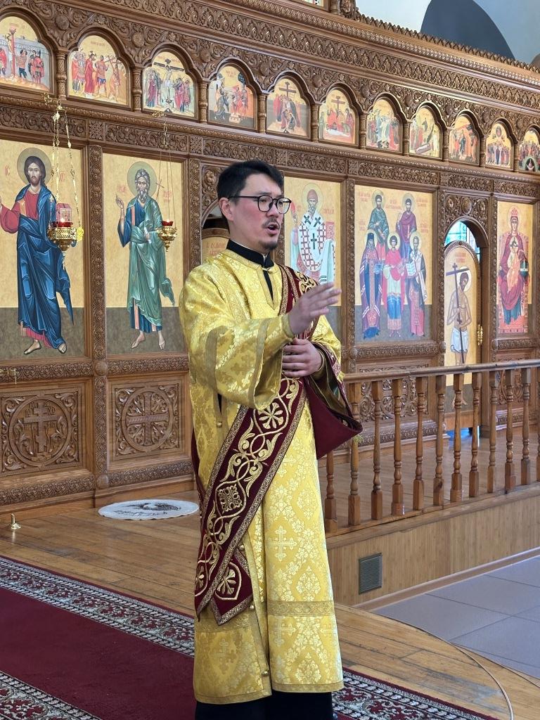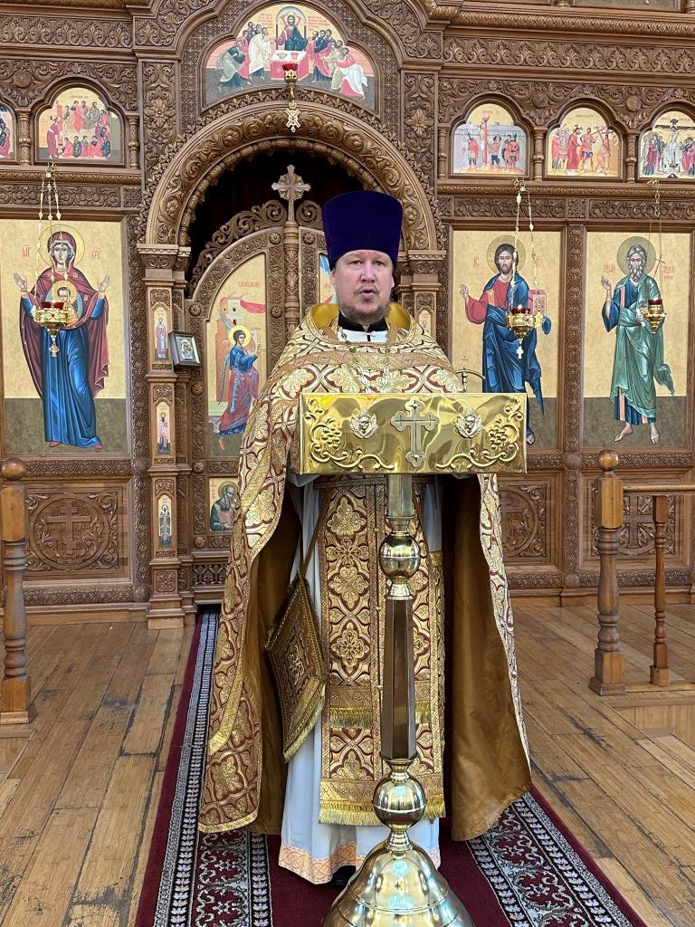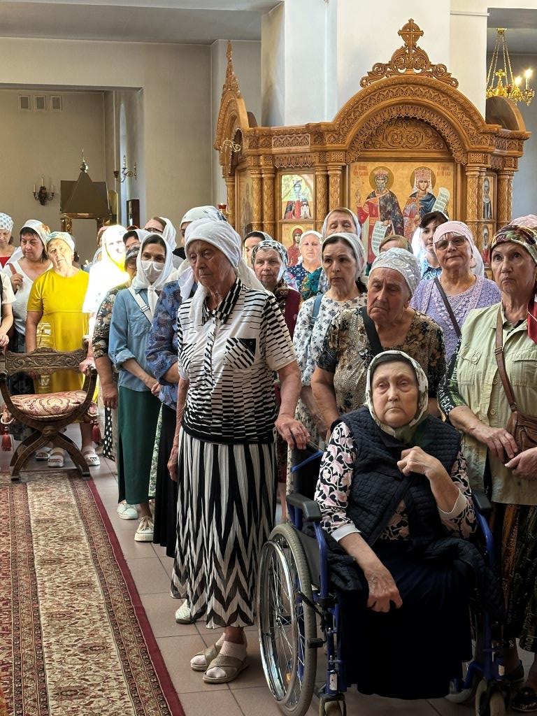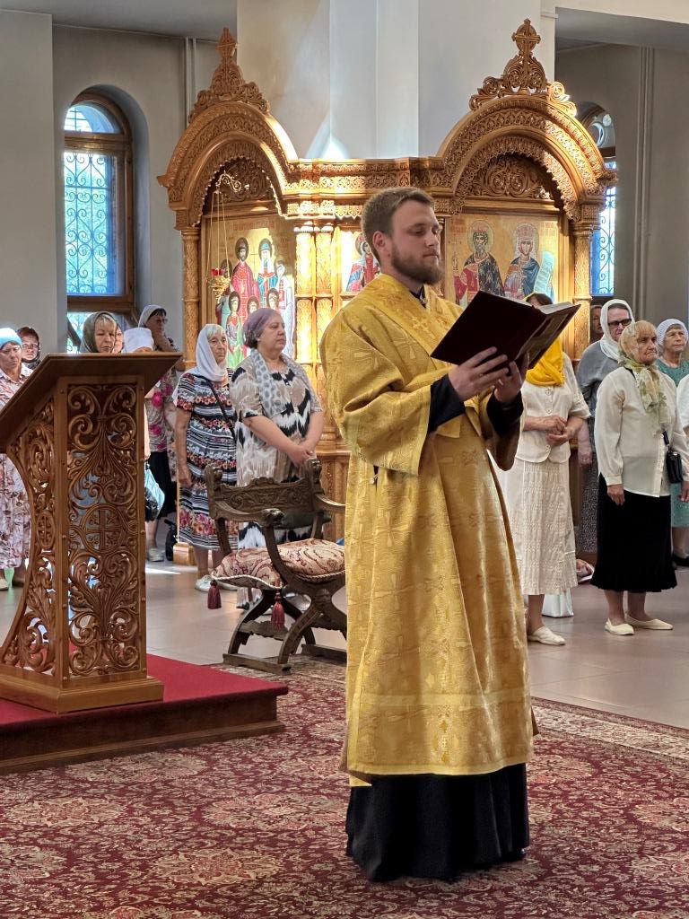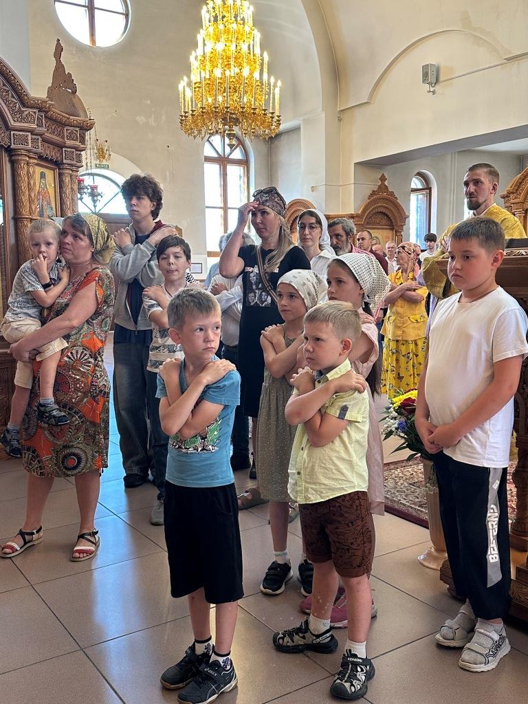 За воскресным богослужением молились насельники Свято-Троицкого мужского монастыря города Усть-Каменогорска, сотрудники епархиального управления, прихожане главного храма епархии, преподаватели и воспитанники приходской воскресной школы. Песнопения Божественной Литургии исполнял хор Андреевского кафедрального собора, регент Н. Романцова. Перед причастием мирян проповедовал священник Роман Подрезов.