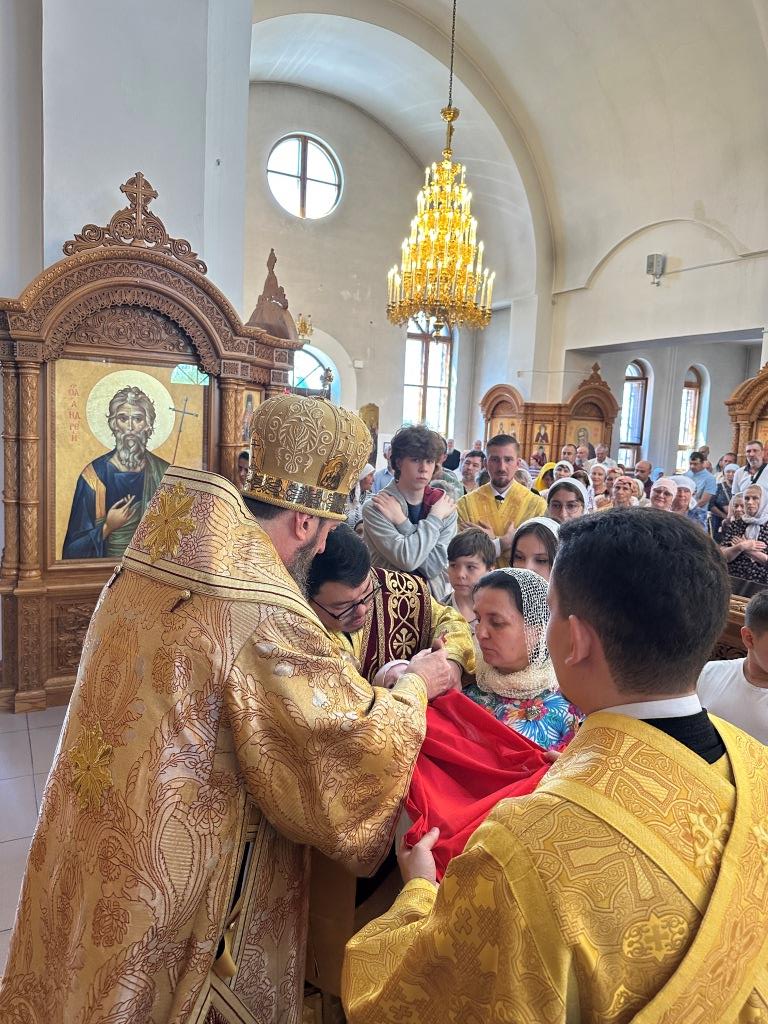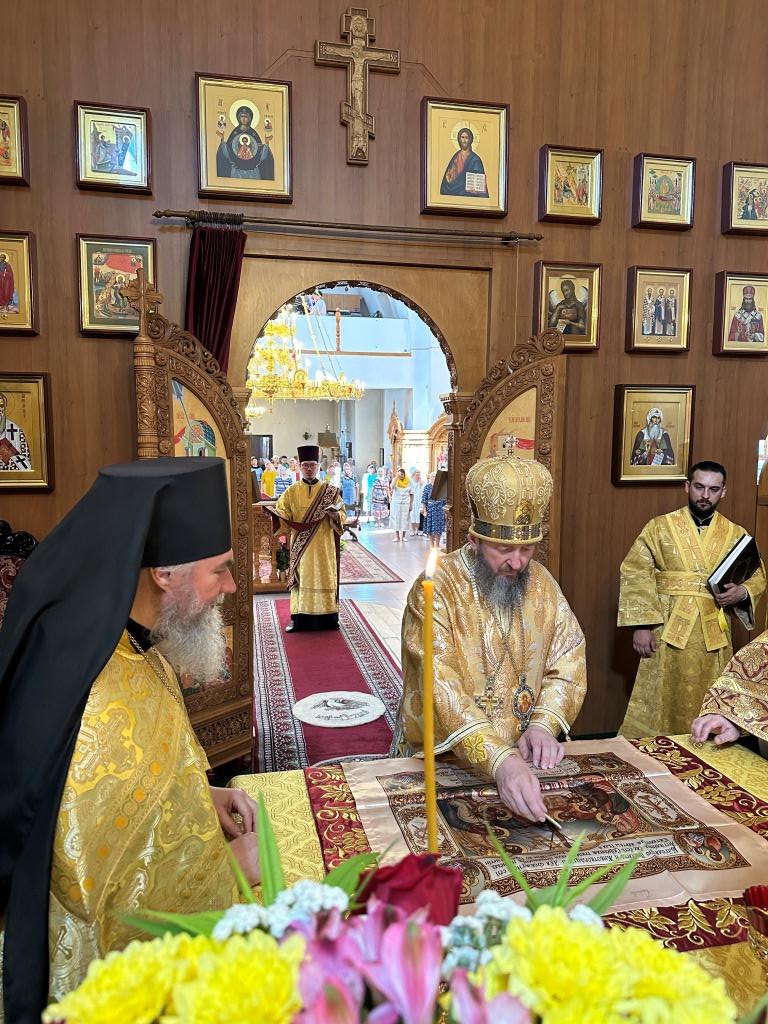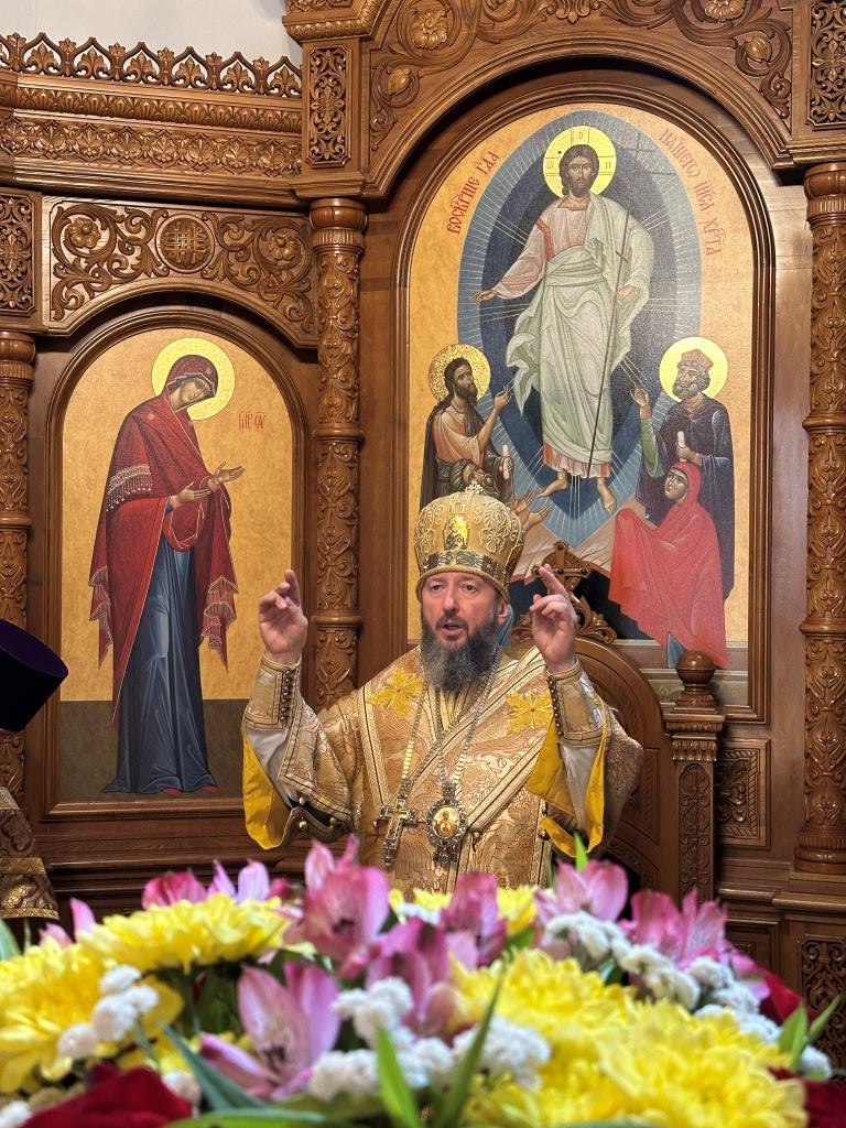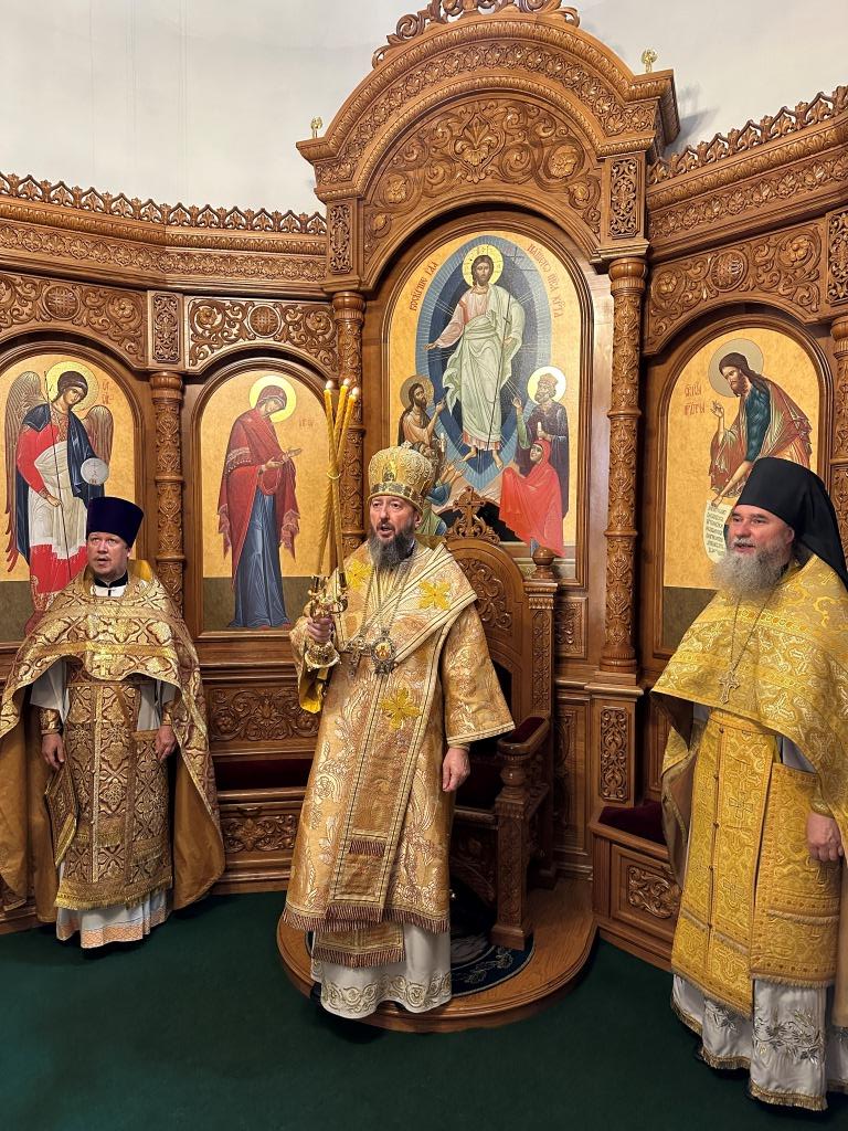 После окончания Божественной Литургии было совершено славление всем русским святым, после которого архиепископ Амфилохий обратился к прихожанам со словами наставления.