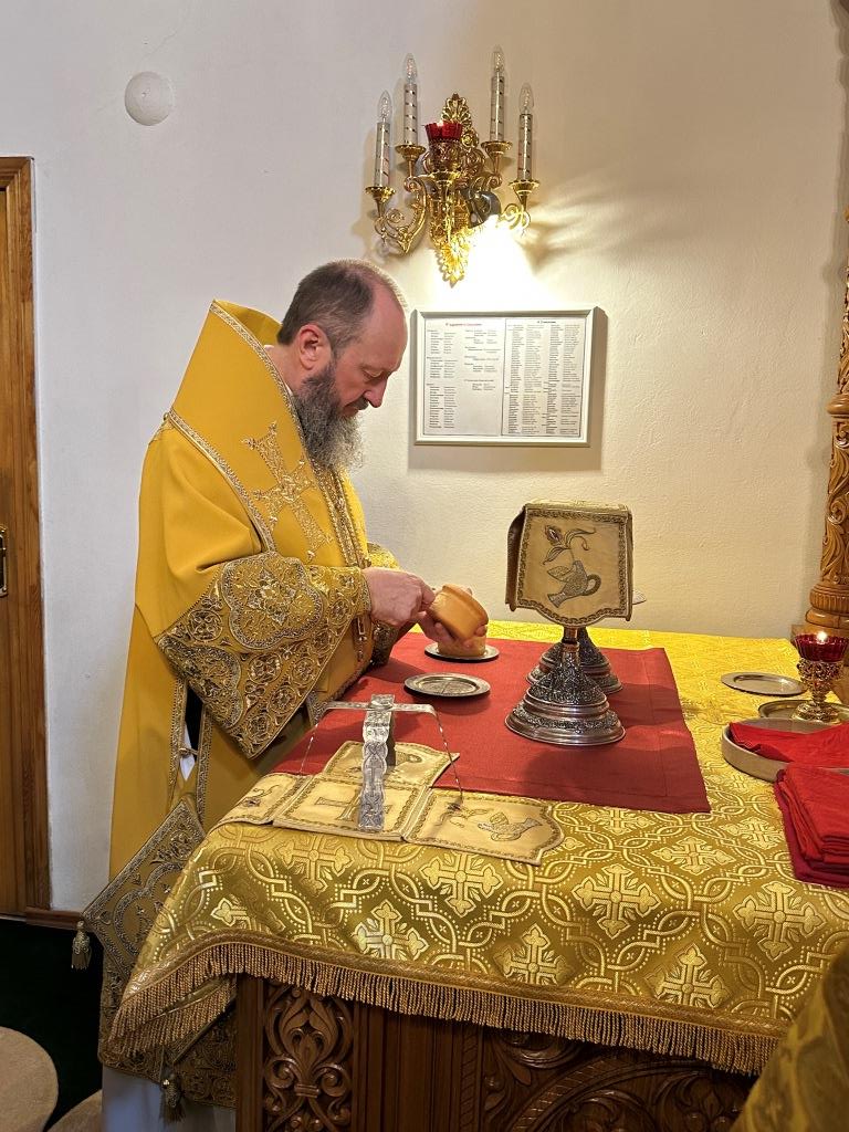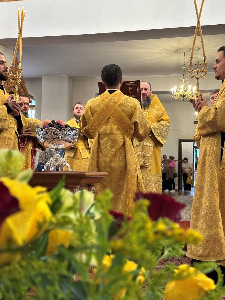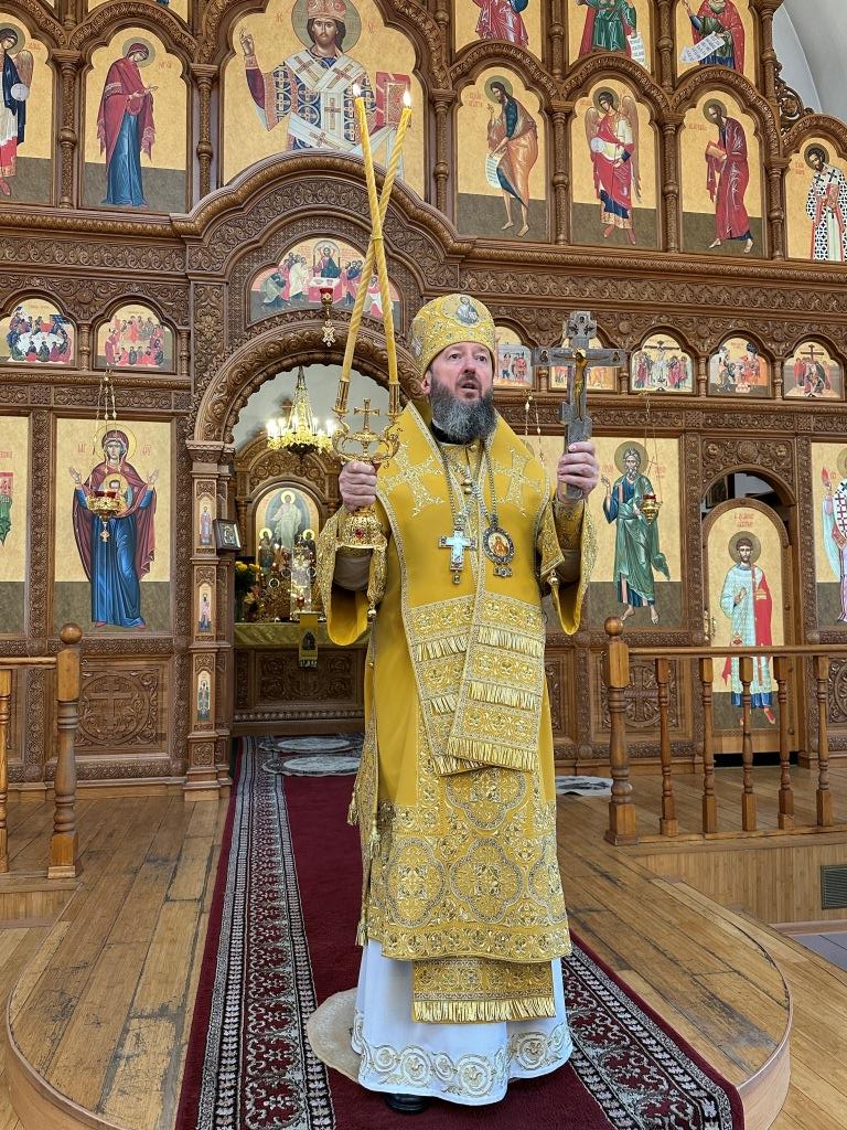 Затем Владыка архиепископ благословил паству и окропил молящихся святой водой.
