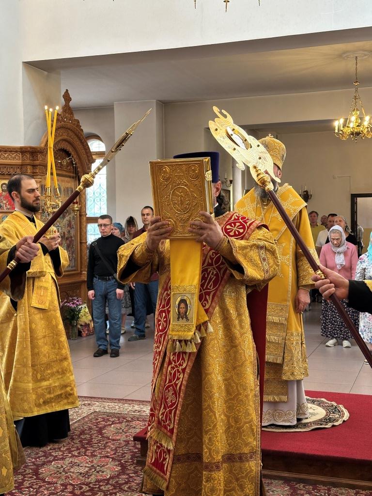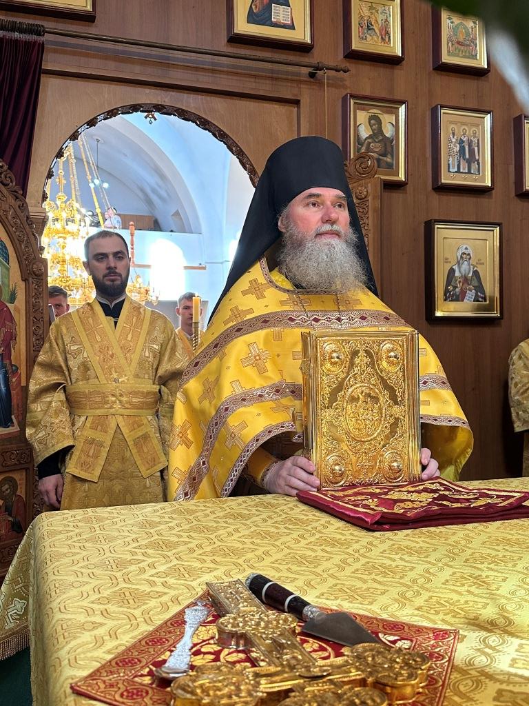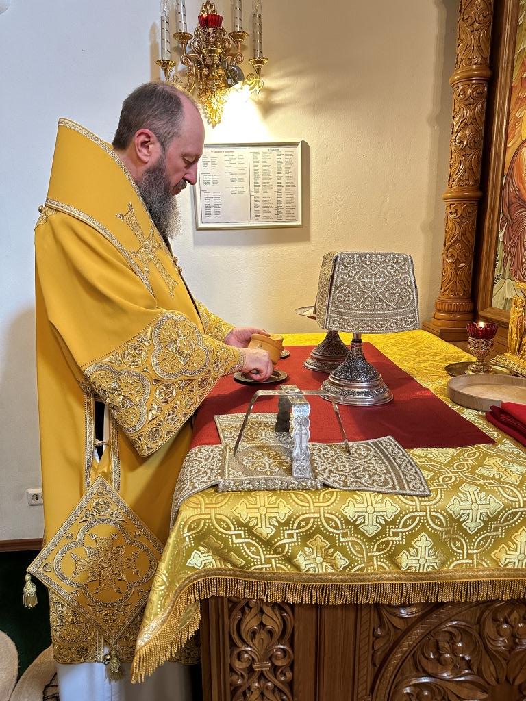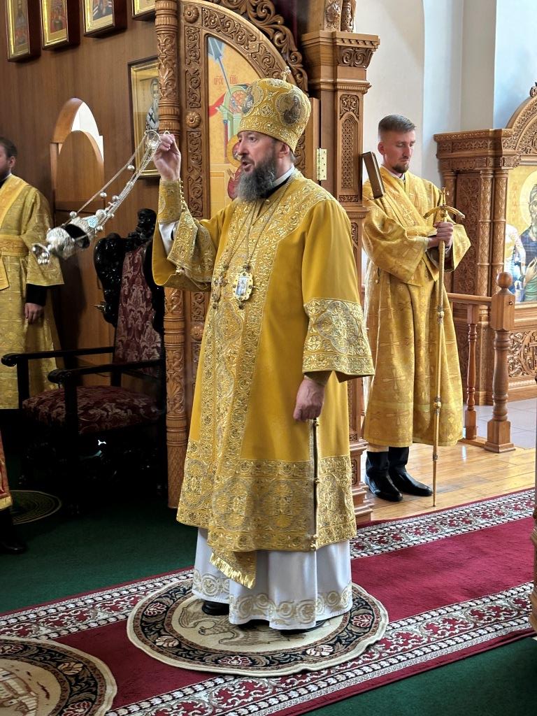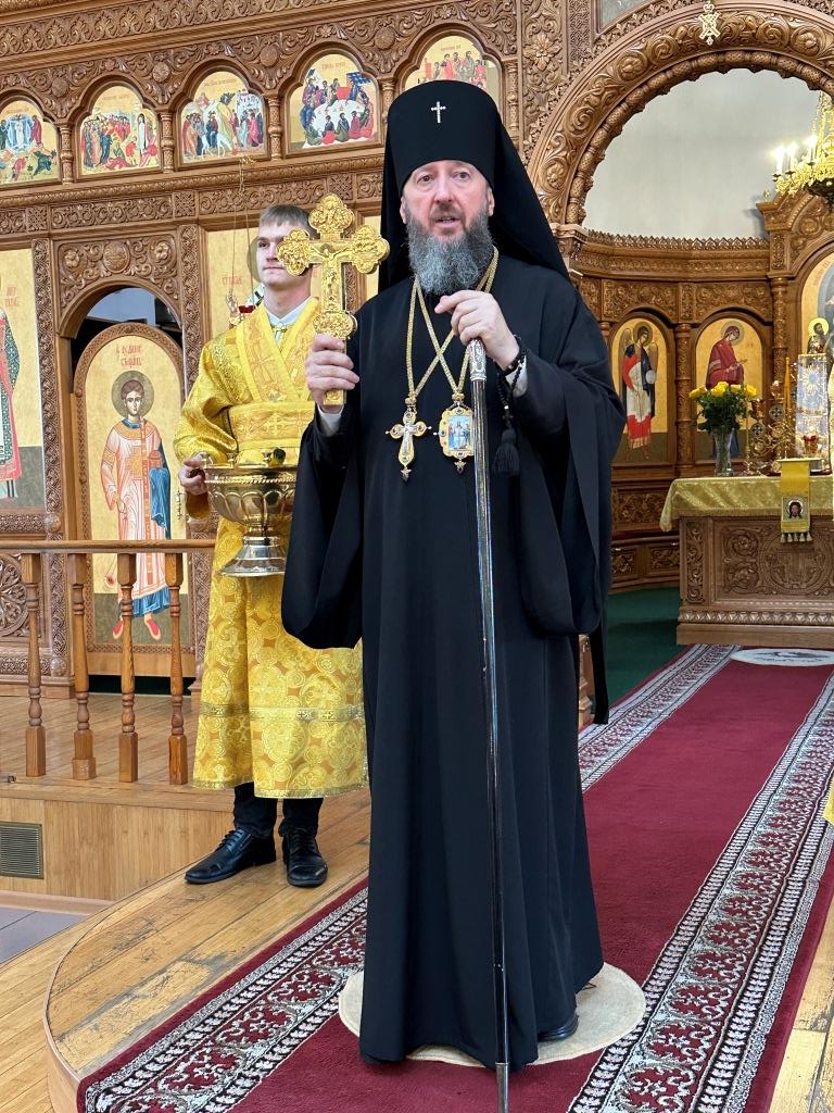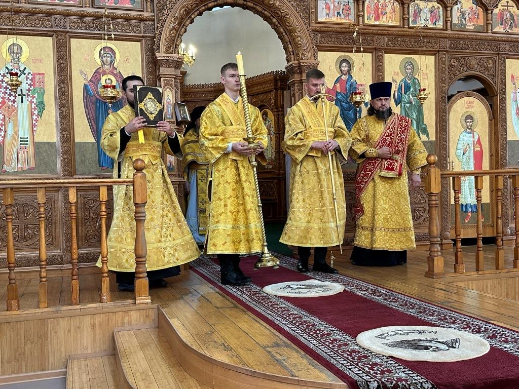 Владыке сослужили ключарь Андреевского собора иеромонах Никодим (Авдеев) и протодиакон Андрей Дудник.