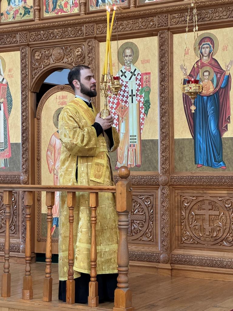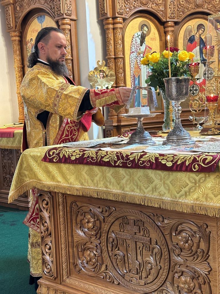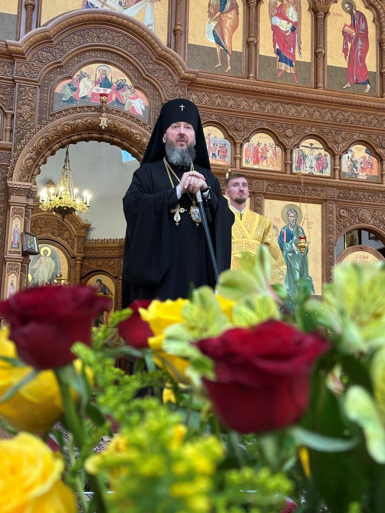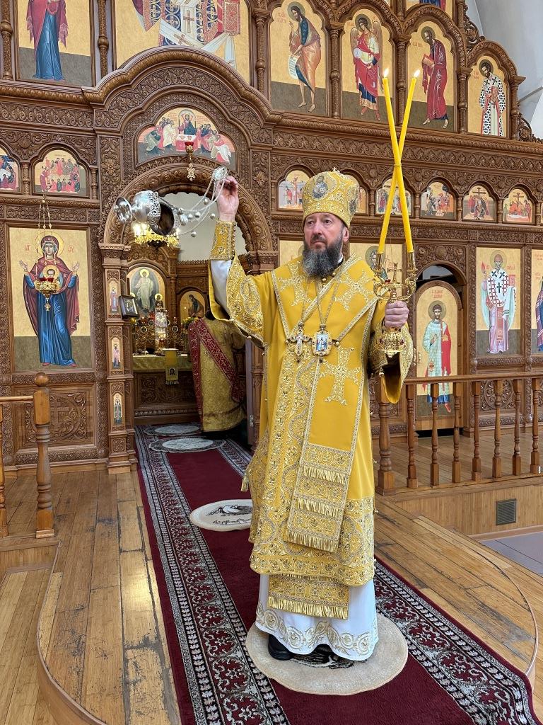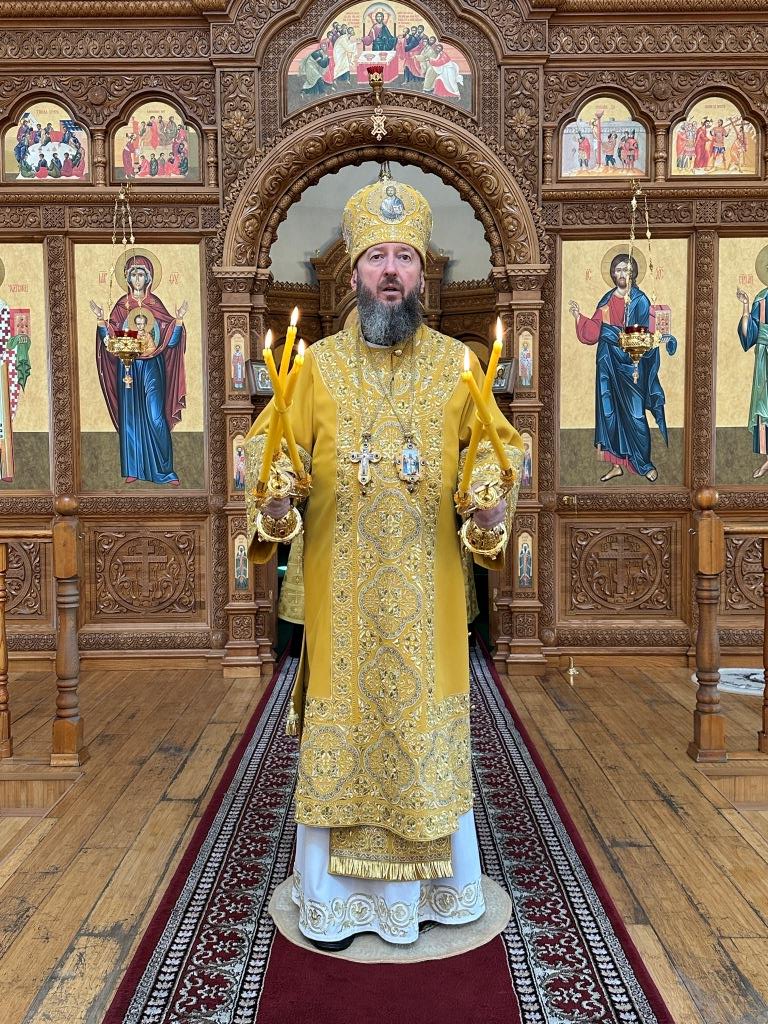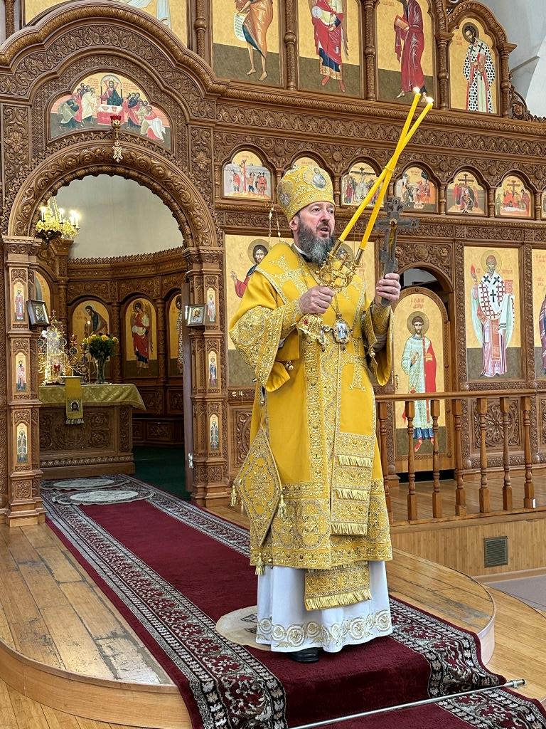 Владыке сослужили ключарь Андреевского собора иеромонах Никодим (Авдеев) и протодиакон Андрей Дудник.