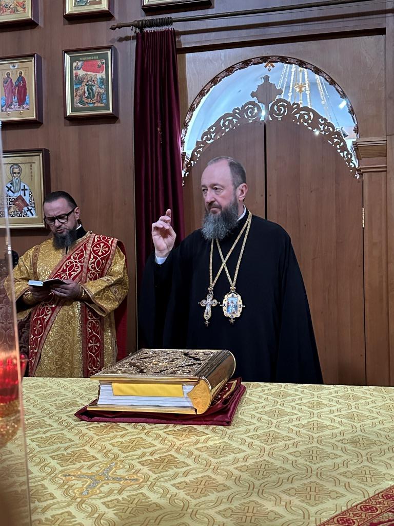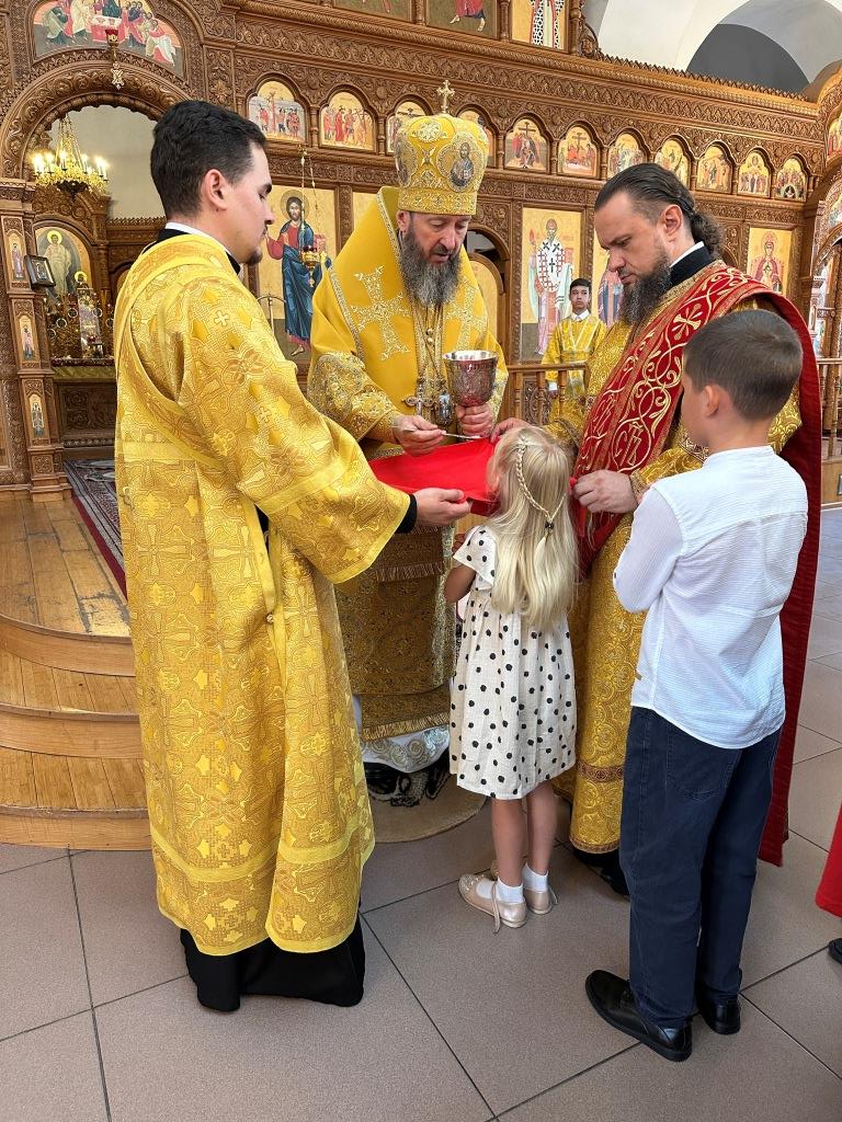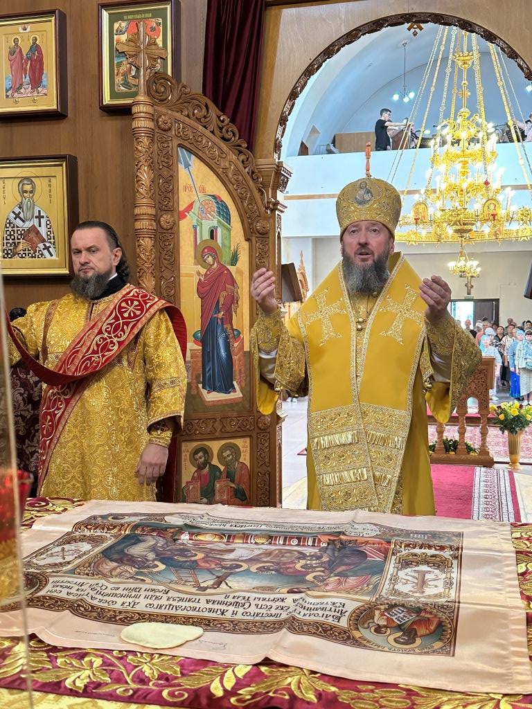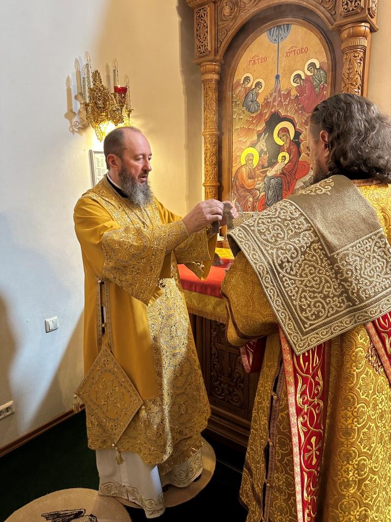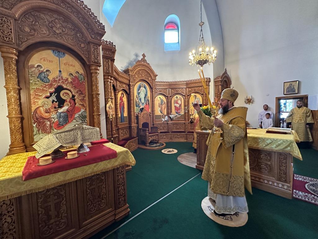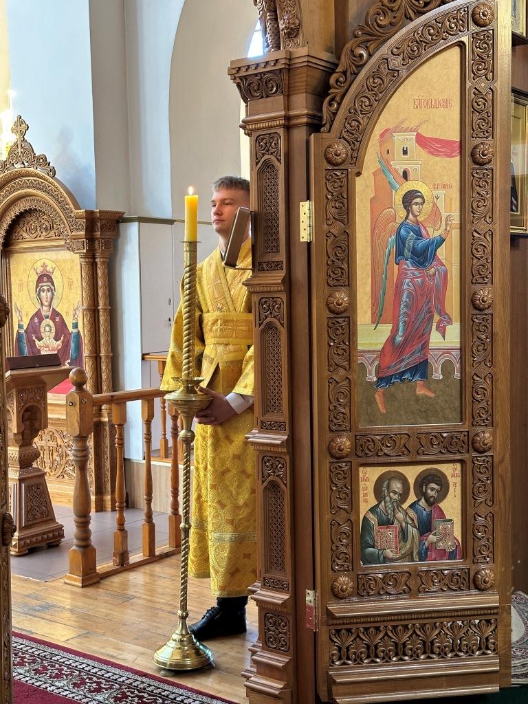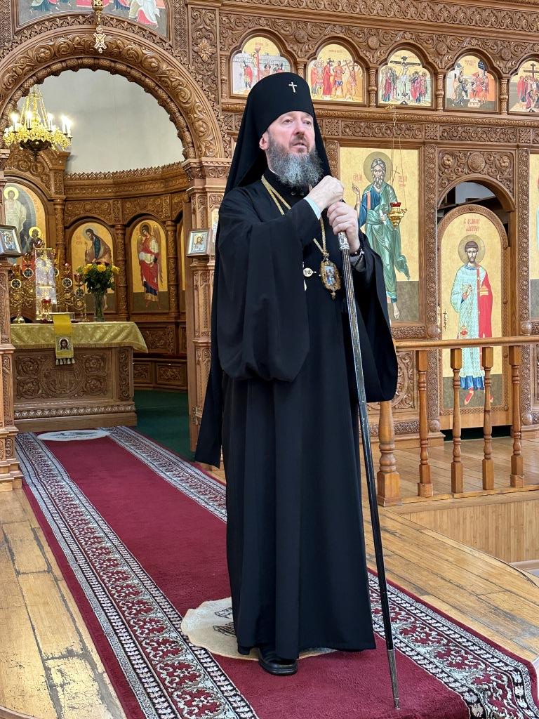 Владыке сослужили ключарь Андреевского собора иеромонах Никодим (Авдеев) и протодиакон Андрей Дудник.