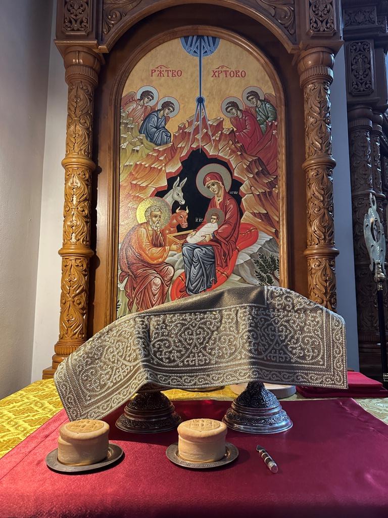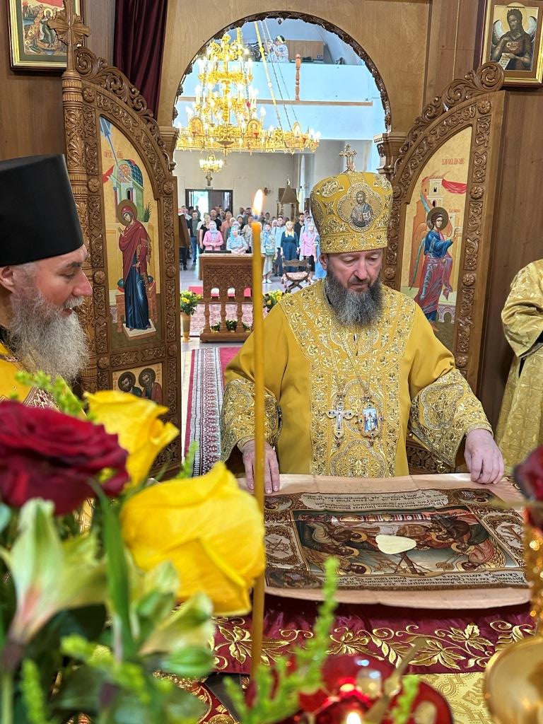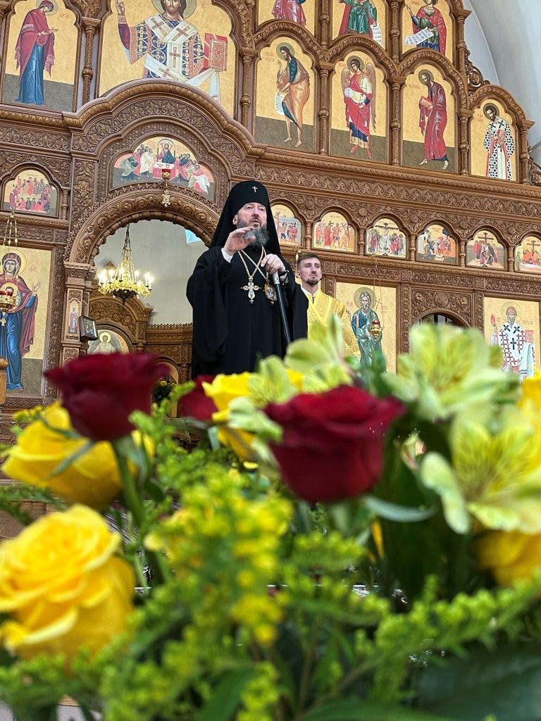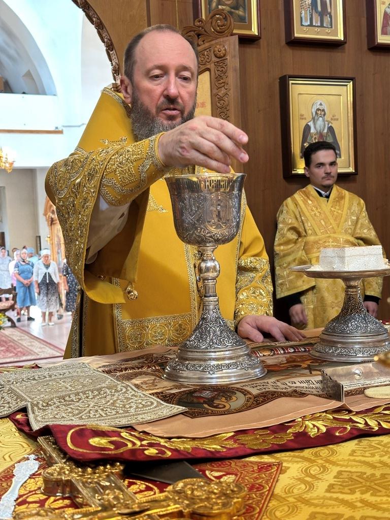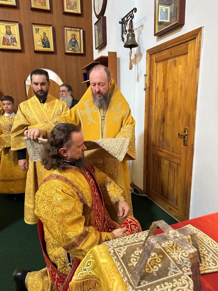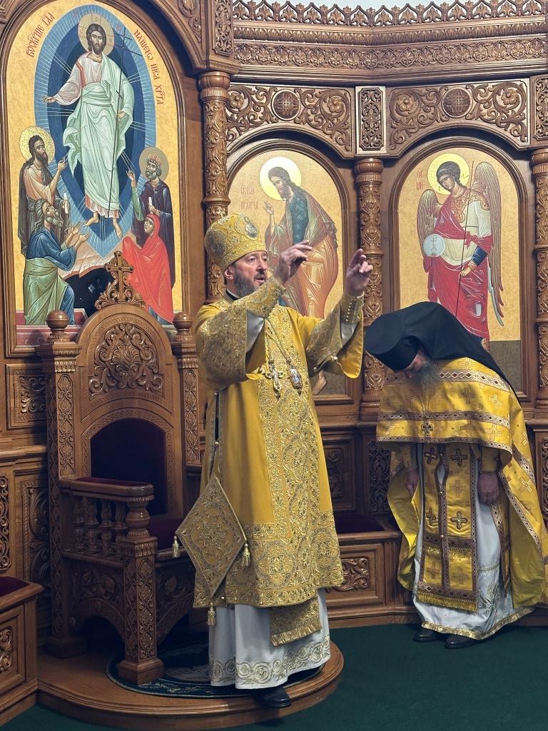 Владыке сослужили ключарь Андреевского собора иеромонах Никодим (Авдеев) и протодиакон Андрей Дудник.