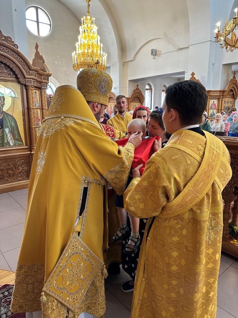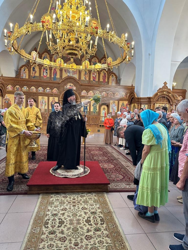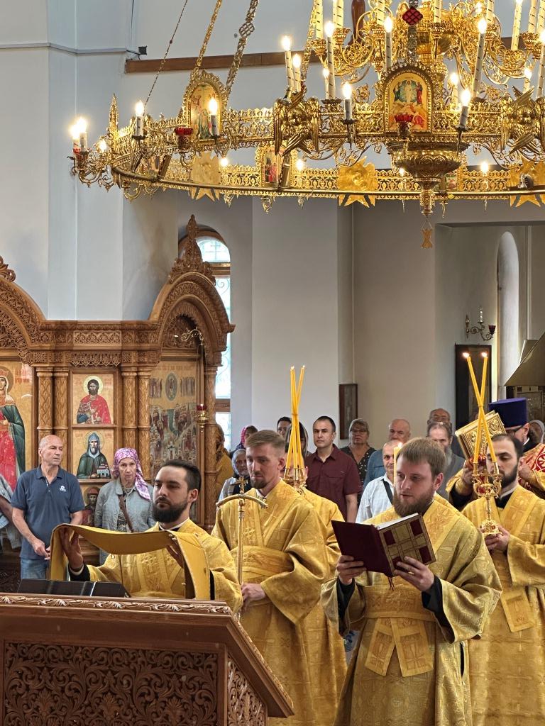За богослужением молились прихожане Андреевского собора, насельники Свято-Троицкого мужского монастыря города Усть-Каменогорска, сотрудники епархиального управления. Песнопения Божественной Литургии и праздника исполнял хор кафедрального собора под управлением регента Н. Романцовой.
