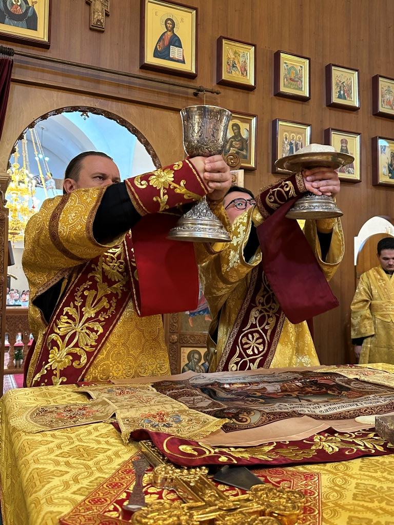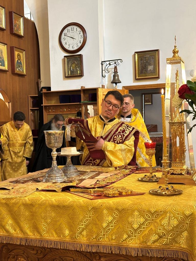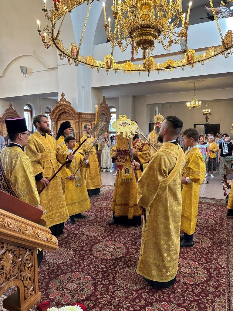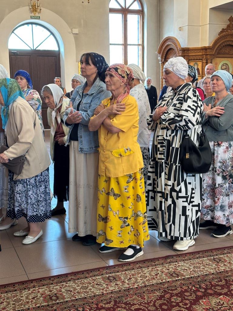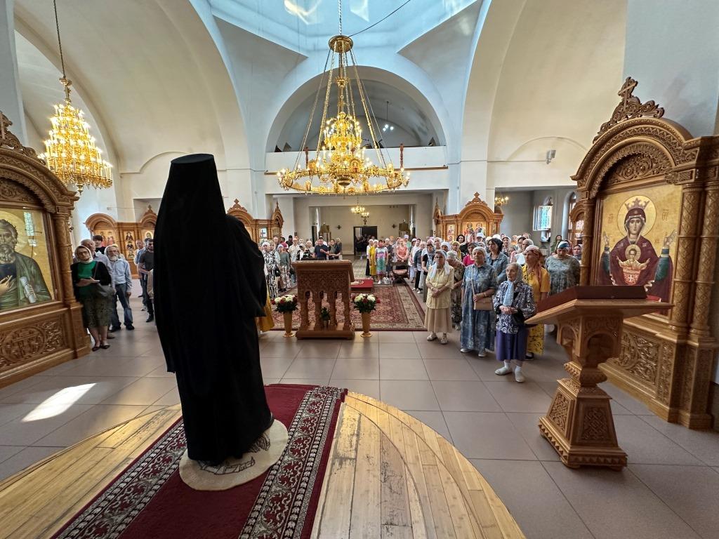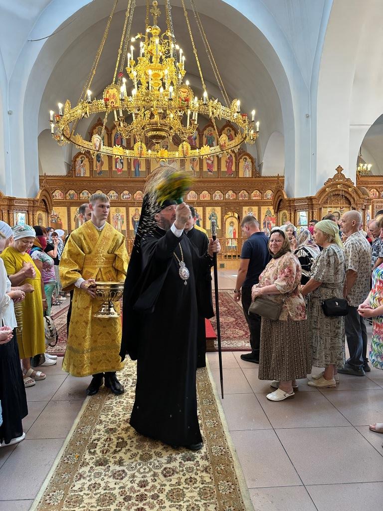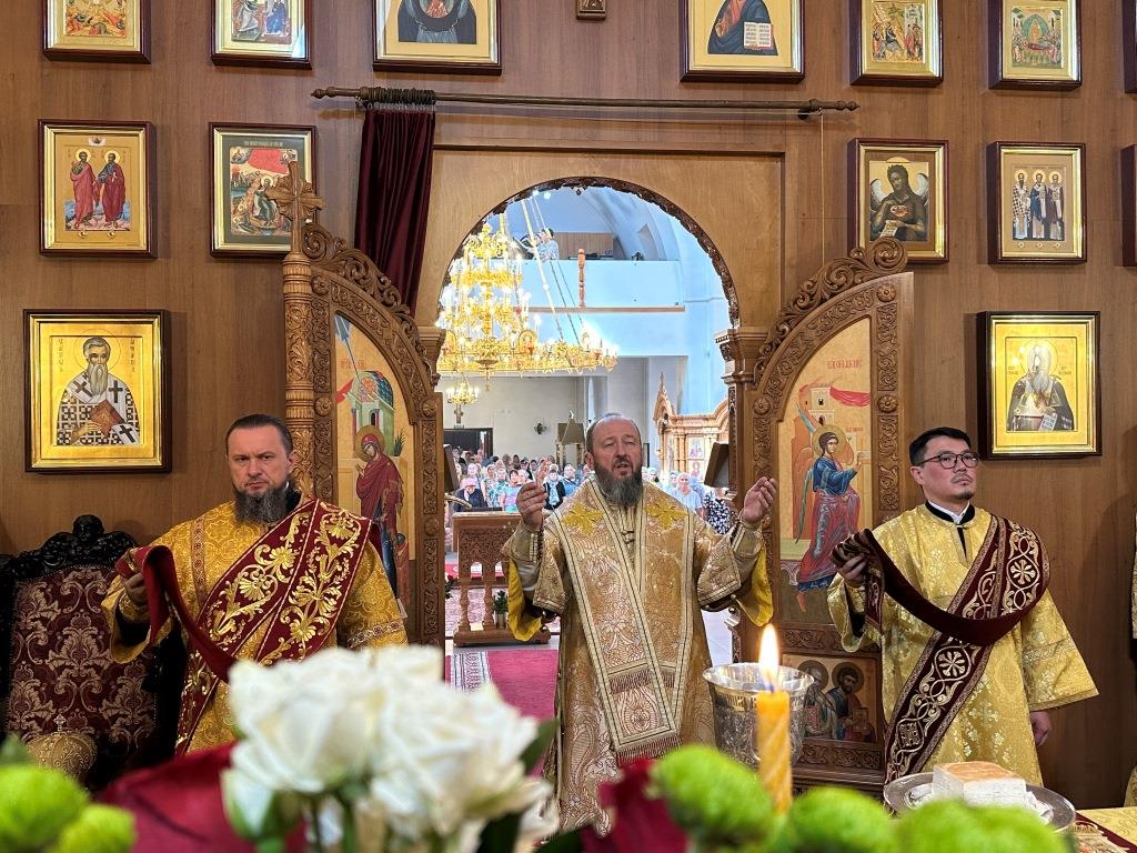 За богослужением молились прихожане главного храма Восточного Казахстана, насельники Свято-Троицкого мужского монастыря города Усть-Каменогорска и сотрудники епархиального управления. Песнопения Божественной Литургии исполнял хор Андреевского собора, регент Н.Романцова. Перед причастием мирян проповедовал священник Константин Дьяков.