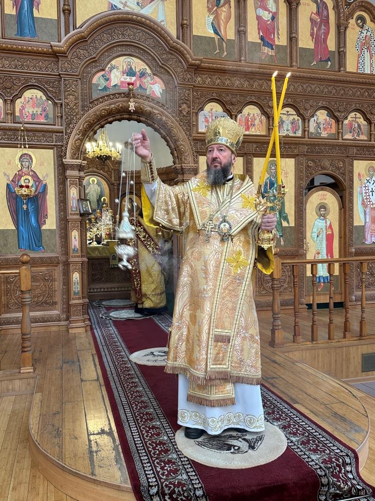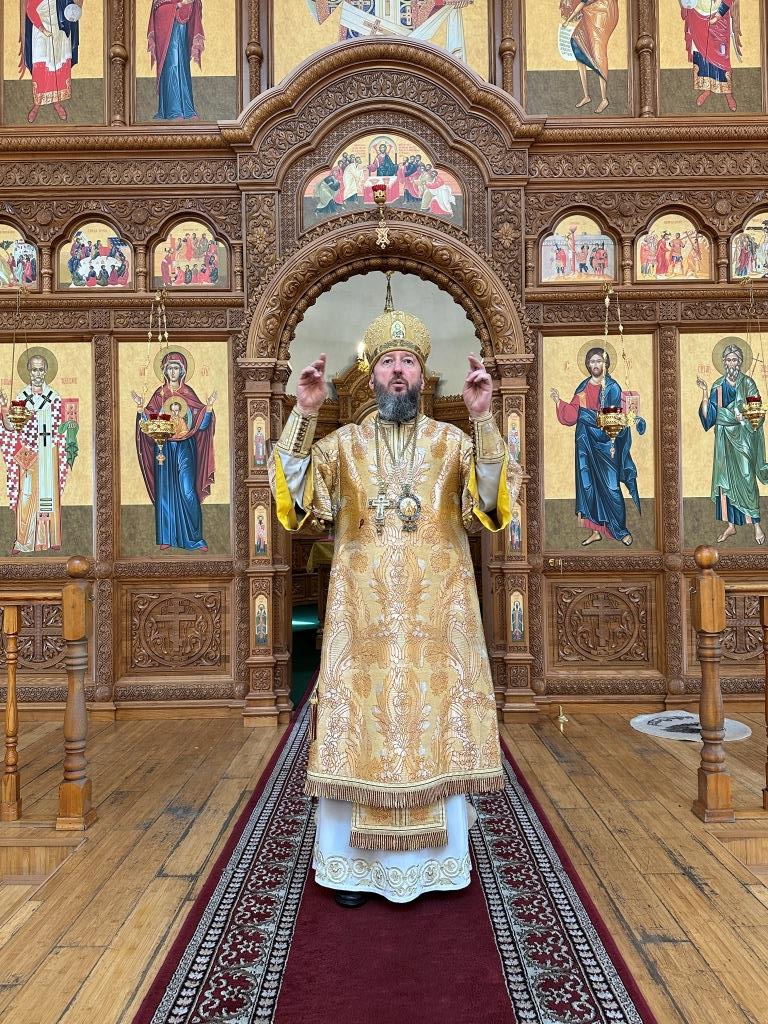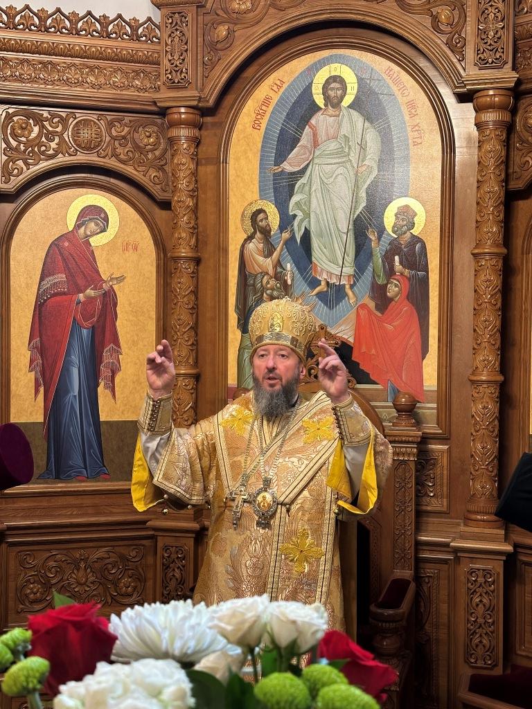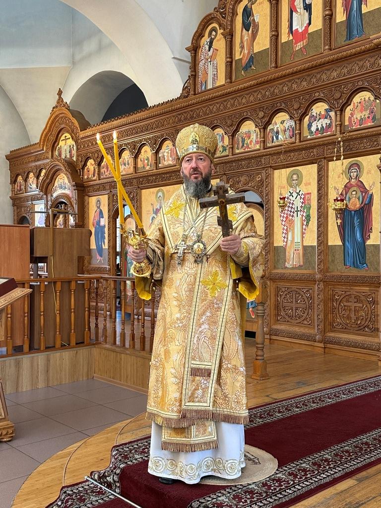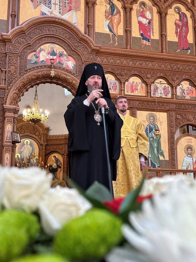 После окончания Божественной Литургии архиепископ Амфилохий обратился к собравшимся со словами проповеди: