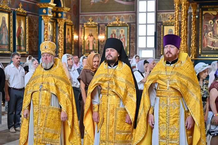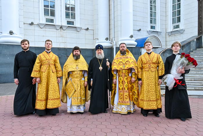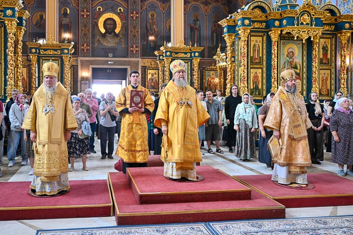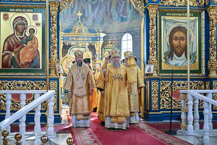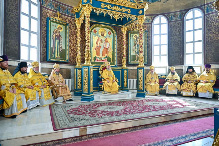Предстоятелю Православной Церкви Казахстана сослужили: архиепископ Карагандинский и Шахтинский Севастиан, архиепископ Усть-Каменогорский и Семипалатинский Амфилохий; благочинный Астанайского церковного округа архимандрит Сергий (Карамышев), настоятель храма в честь иконы Божией Матери «Всех скорбящих Радость» протоиерей Евгений Воробьев, ключарь Успенского кафедрального собора иеромонах Димитрий (Байдек), клирик храма преподобного Серафима Саровского города Астаны иеромонах Силуан (Синегубов), руководитель православного молодежного движения Астанайского благочиния иерей Григорий Куликов, иерей Сергий Дианов; руководитель службы протокола митрополита протодиакон Роман Головин, диакон Илия Давыдов, диакон Михаил Чумаков, диакон Александр Пивень, диакон Георгий Ткаченко, диакон Ярослав Вохменцев.