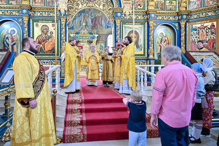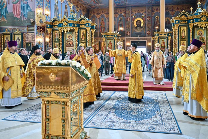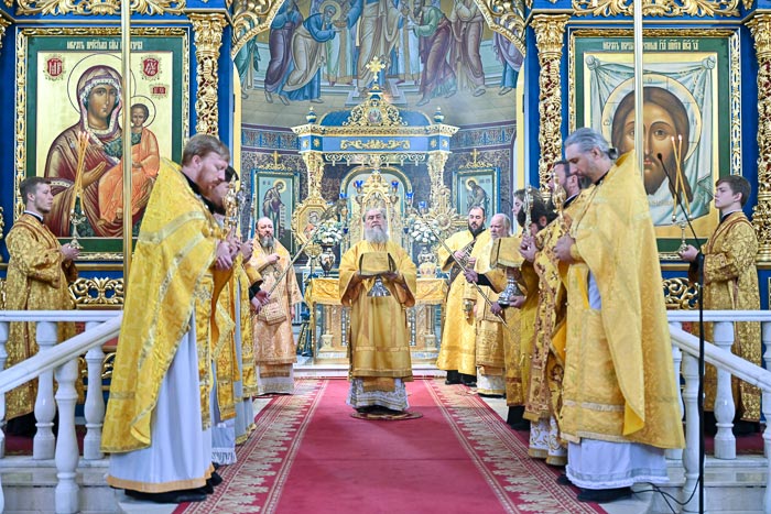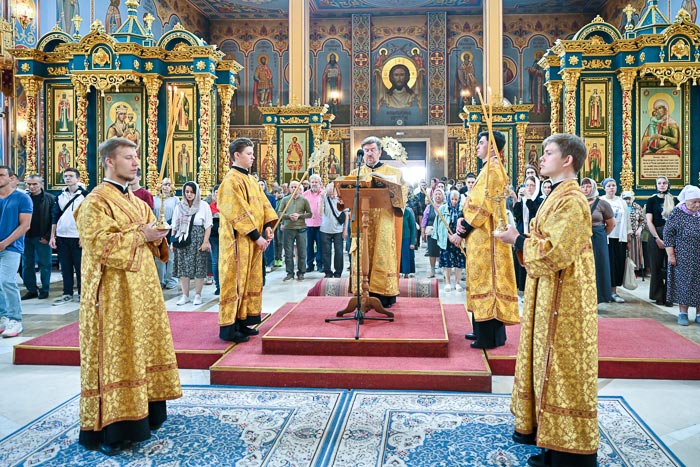 За Литургией молились: сотрудники Астанайского епархиального управления, активисты Астанайского православного молодежного движения, преподаватели и воспитанники центральной воскресной школы. Проповедь по запричастном стихе произнес иеромонах Димитрий (Байдек). В завершение богослужения Глава Митрополичьего округа обратился к собравшимся со словом поучения.