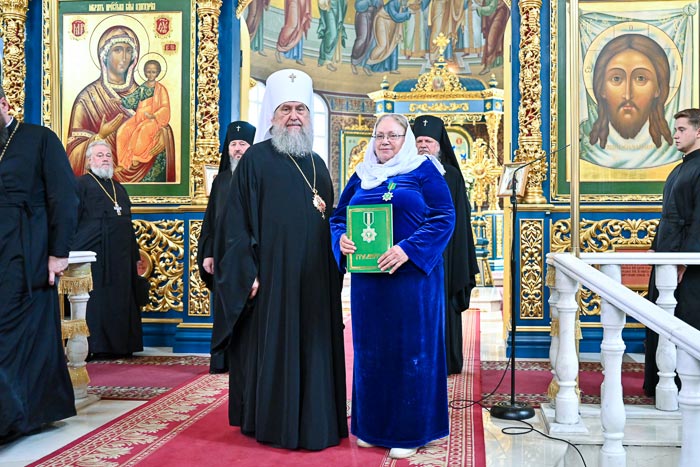 По окончании богослужения Глава Православной Церкви Казахстана вручил орден Митрополичьего округа «Ынталы Қызмет Үшiн» (За Усердное Служение) чтецу Успенского кафедрального собора О.А. Бирюлиной, пожелав ей крепости душевных и телесных сил и благодатной помощи от Господа в служении Святой Церкви.