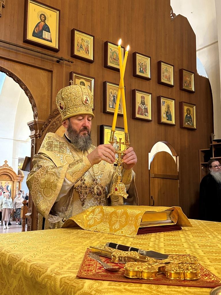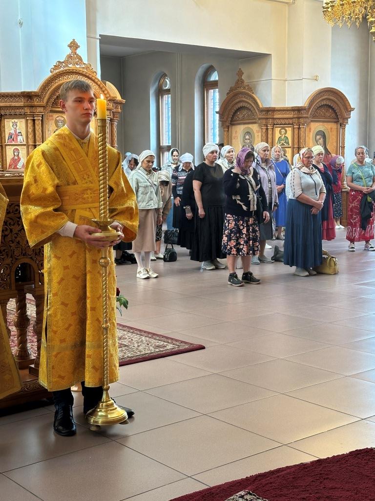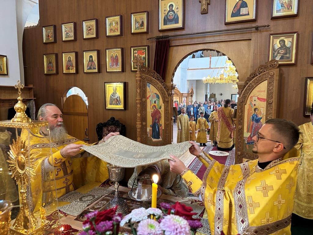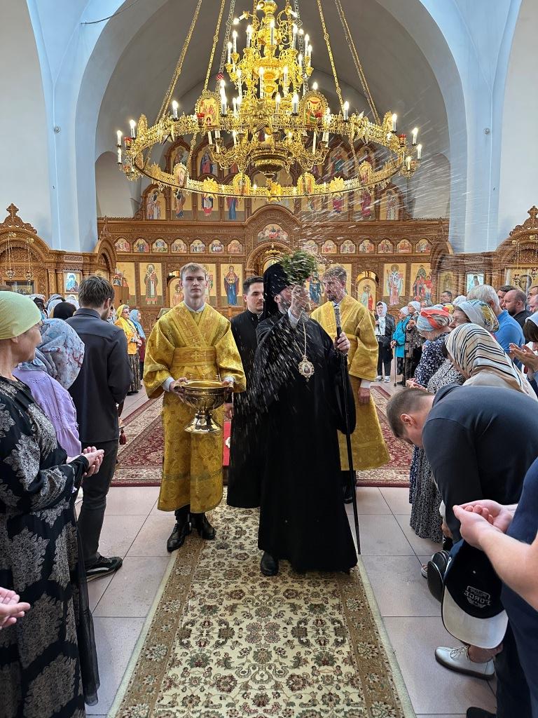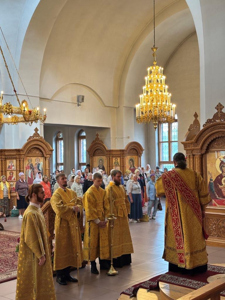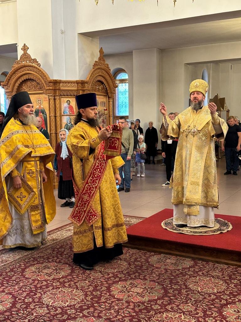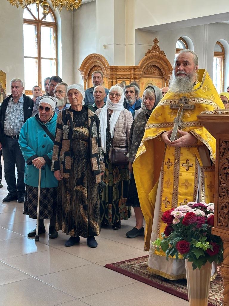 За воскресным богослужением молились насельники Свято-Троицкого мужского монастыря города Усть-Каменогорска, сотрудники епархиального управления и прихожане главного храма епархии. Литургические снопения исполнял хор кафедрального собора под управлением регента Н. Романцовой. Перед причастием мирян проповедовал священник Константин Дьяков.