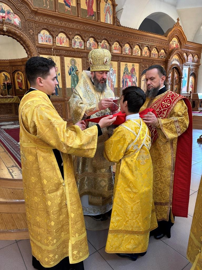 Архиепископ Усть-Каменогорский и Семипалатинский Амфилохий возглавил служение Божественной Литургии святителя Иоанна Златоуста в Андреевском кафедральном соборе города Усть-Каменогорска. Его Высокопреосвященству сослужили: ключарь кафедрального собора иеромонах Никодим (Авдеев), клирик собора иерей Константин Дьяков, протодиакон Андрей Дудник.