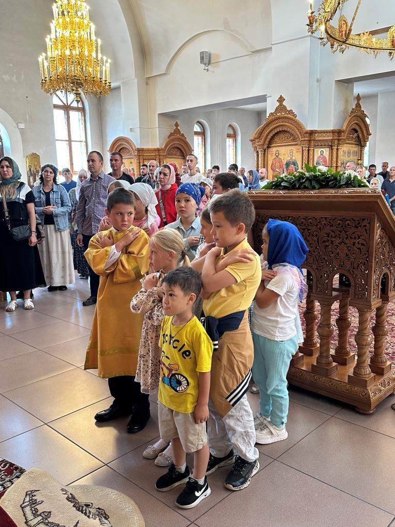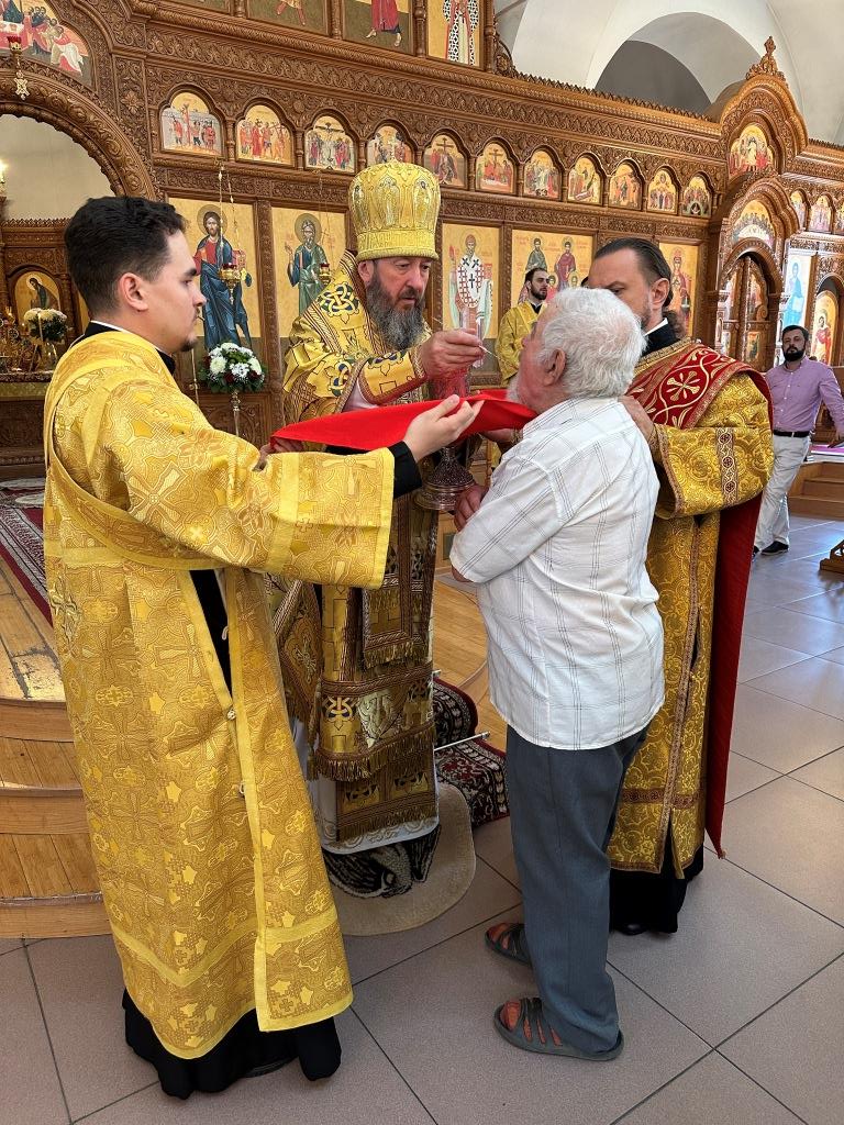 За литургией молились и причащались Святых Христовых Таин прихожане кафедрального собора, сотрудники епархиального управления и насельники Усть-Каменогорского Свято-Троицкого мужского монастыря. После заамвонной молитвы архиепископ Амфилохий обратился к прихожанам со словами проповеди.