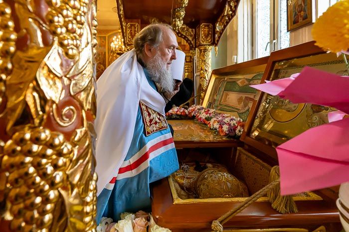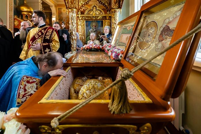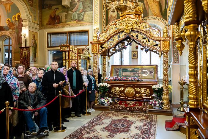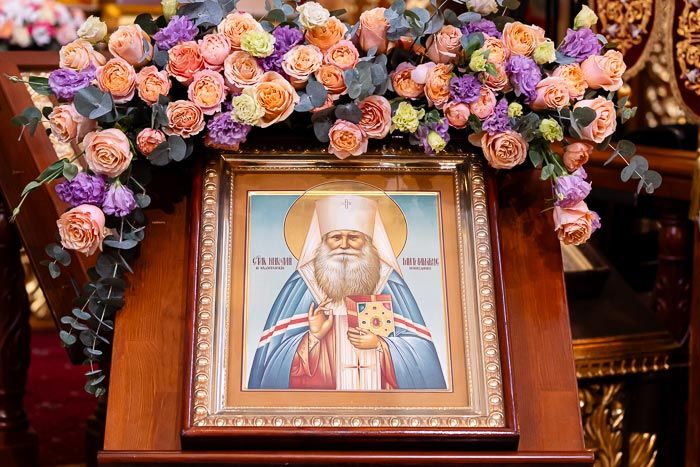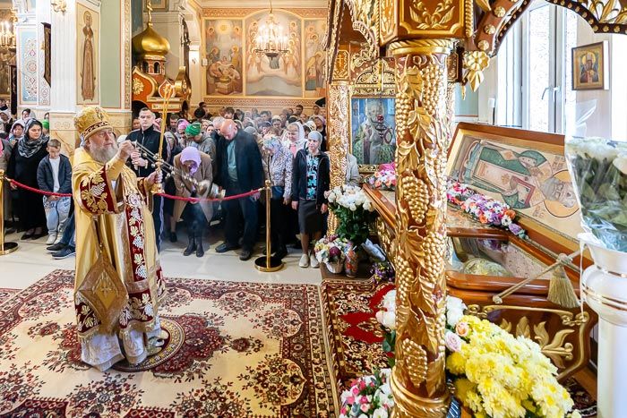 По отпусте Литургии состоялось славление священноисповеднику Николаю перед ракой с его честными мощами.