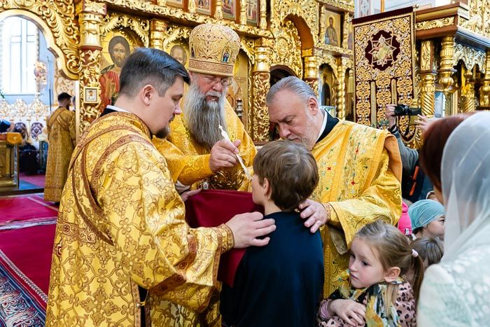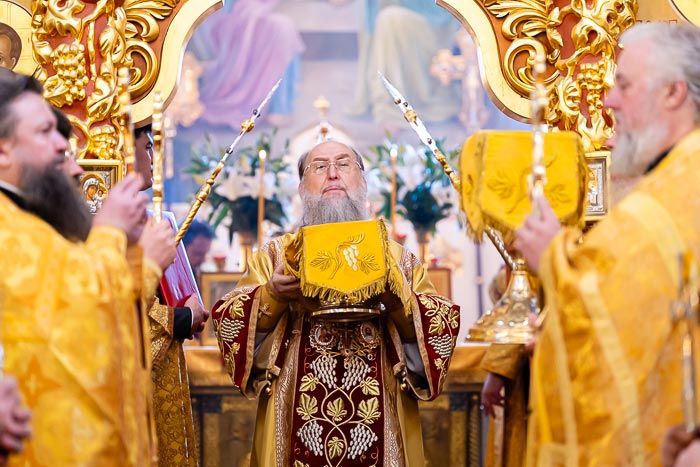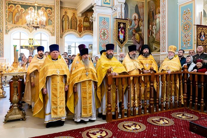 Богослужебные песнопения исполняли хор Никольского собора под управлением О. Берекешевой и обиходный хор под управлением О. Соломоновой.