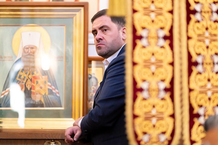 Никольский собор в 1946 году трудами митрополита Николая (Могилевского) был возвращен верующим и возрожден; здесь же, в южном приделе, почивают его святые мощи. Сегодняшняя Литургия совершалась на антиминсе, подписанном приснопамятным архипастырем в 1946 году, после возвращения Никольского храма верующим и его освящения.